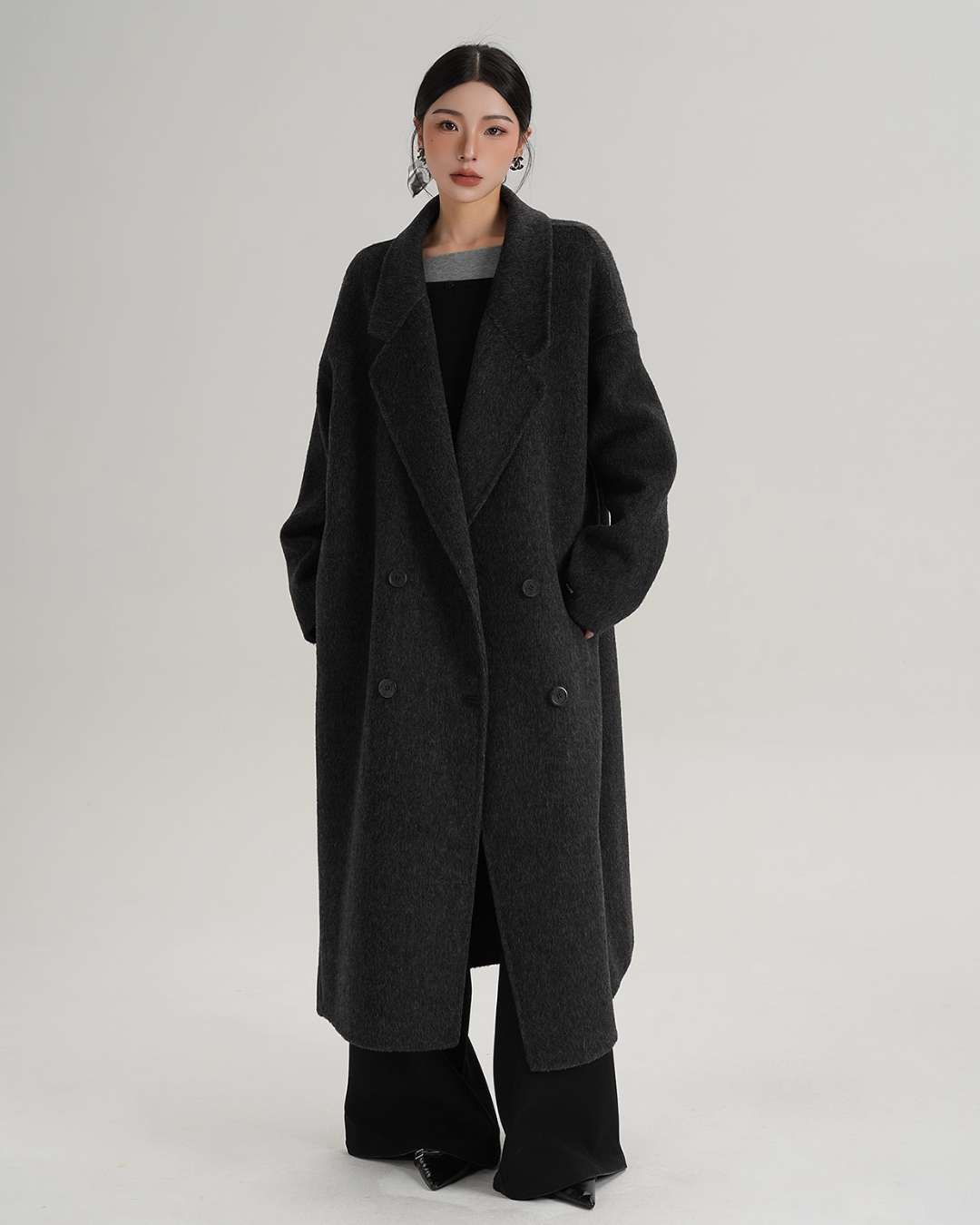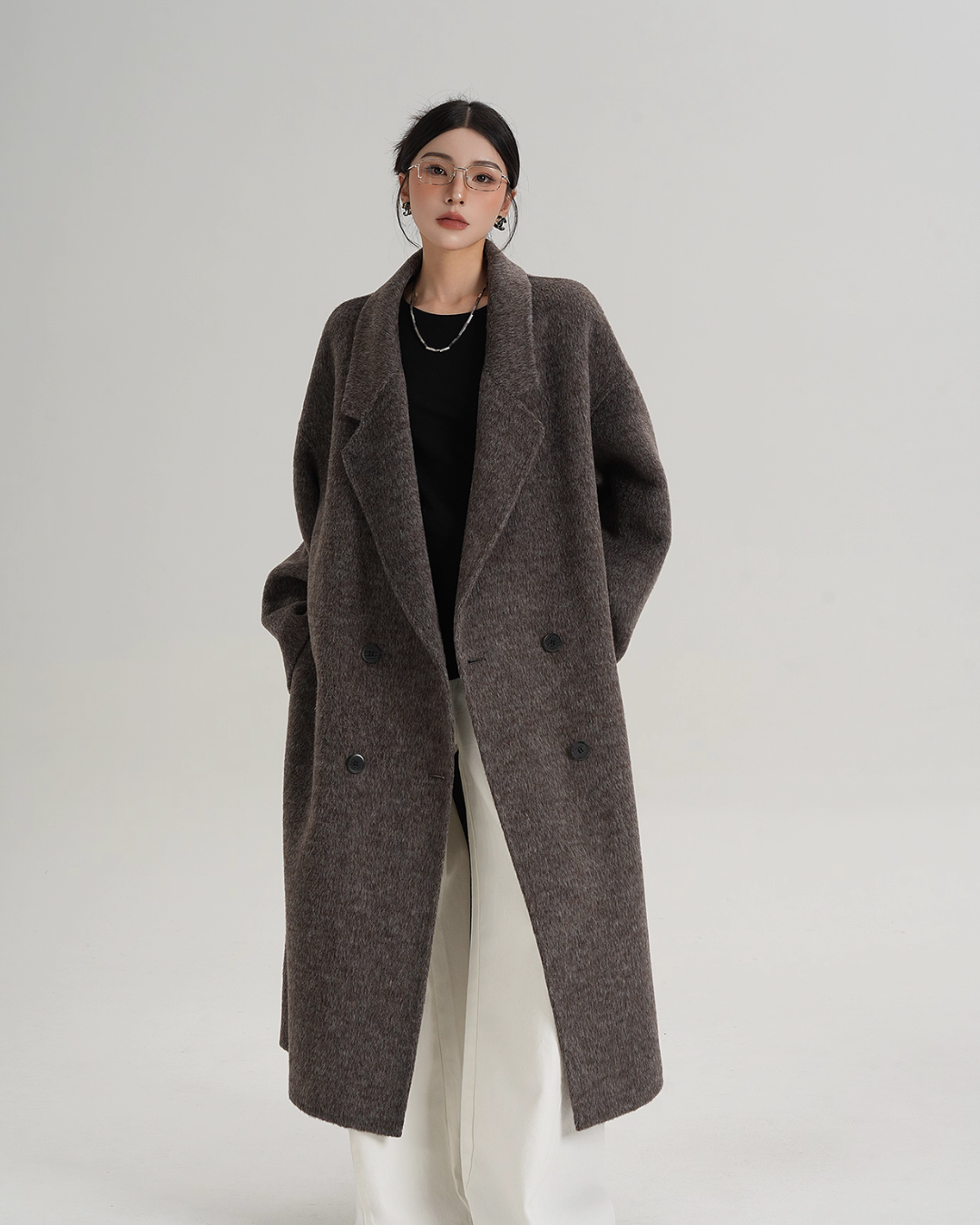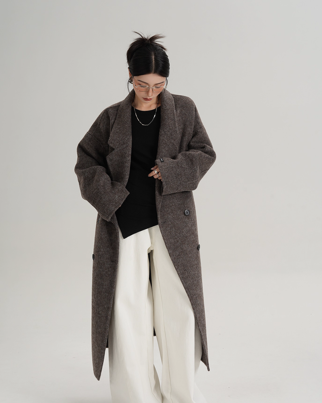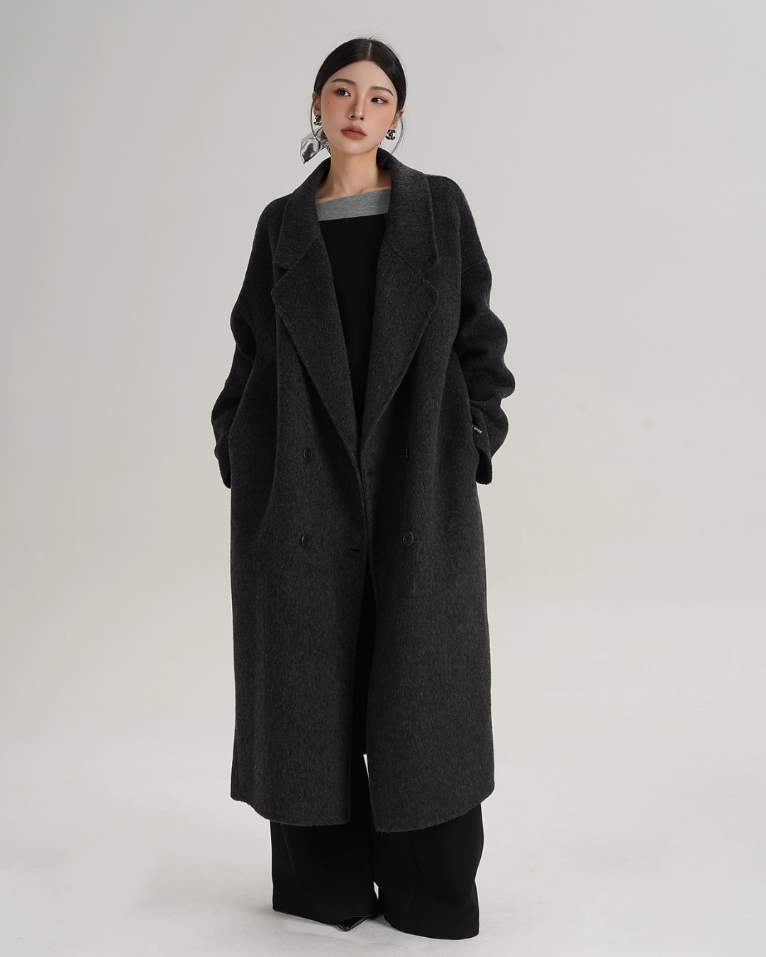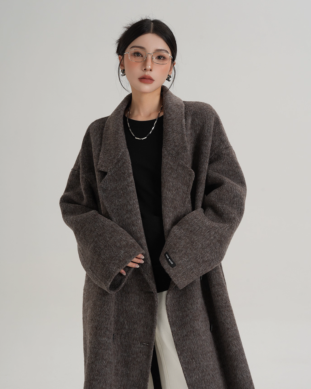 Long coat finished with a material that achieves a warm and comfortable fit.