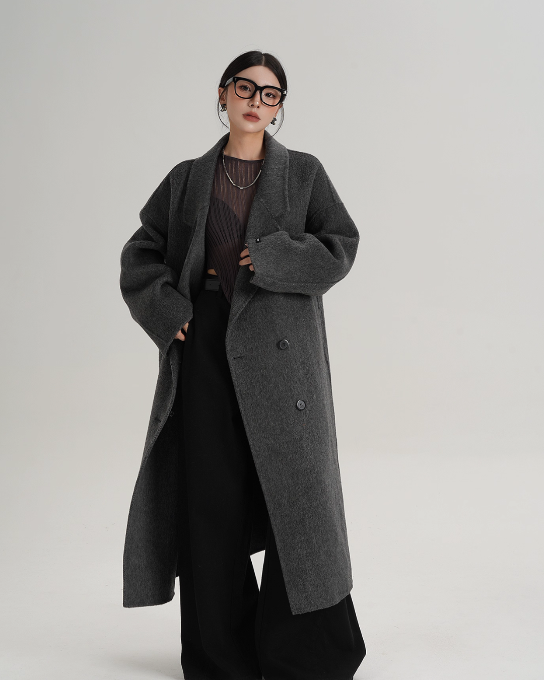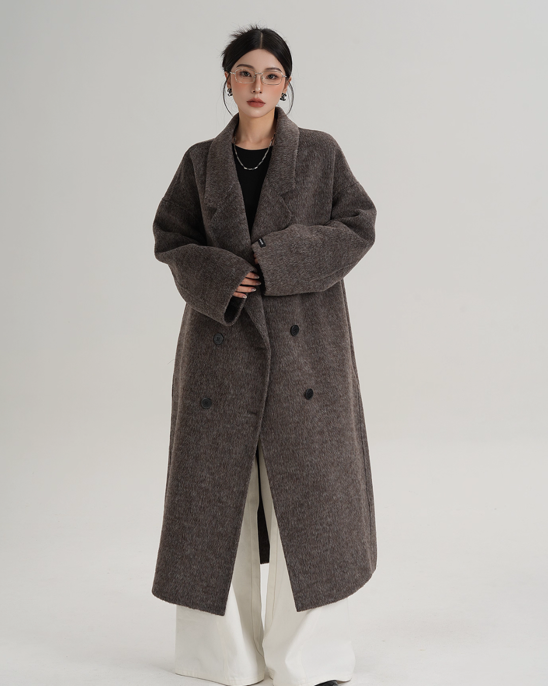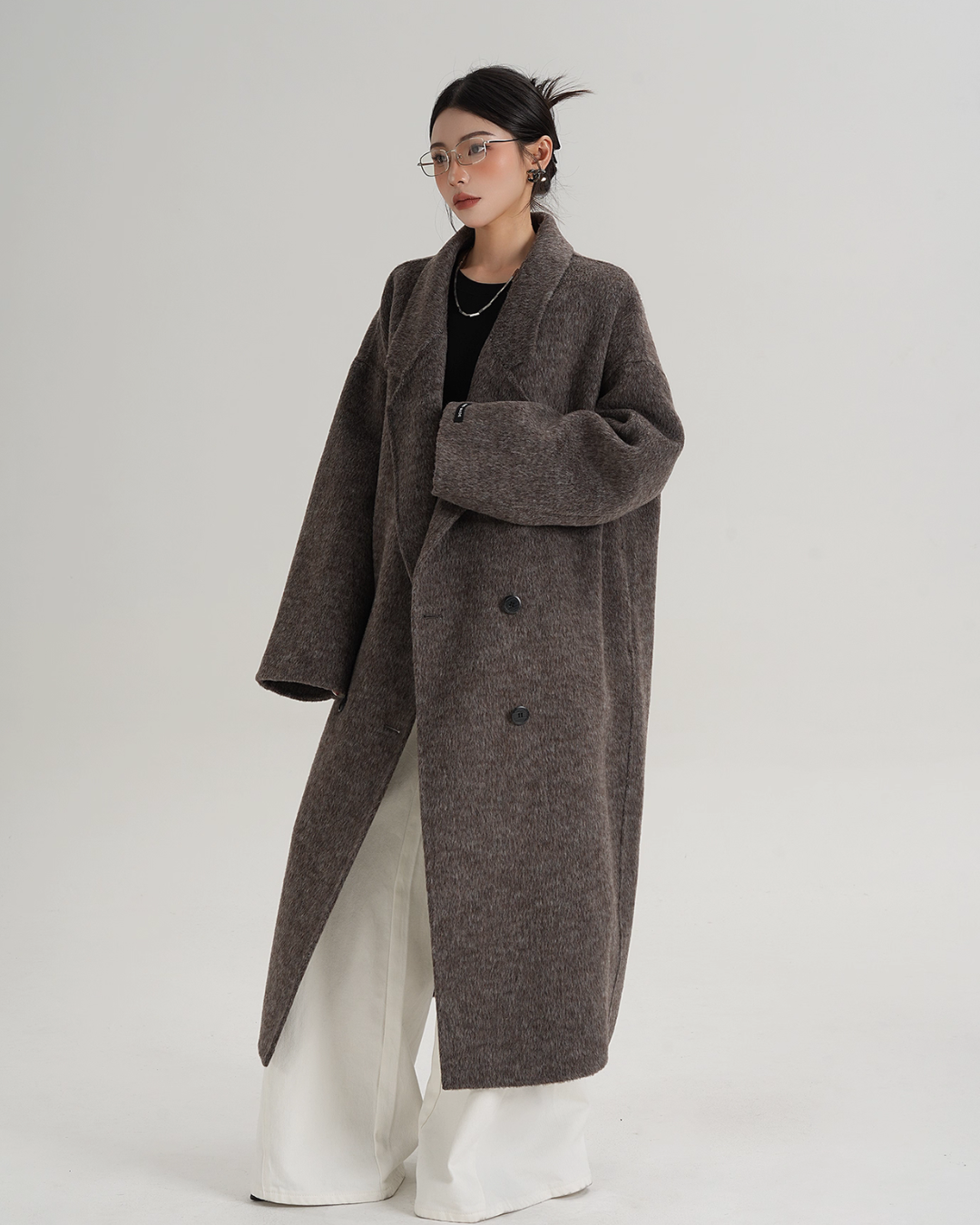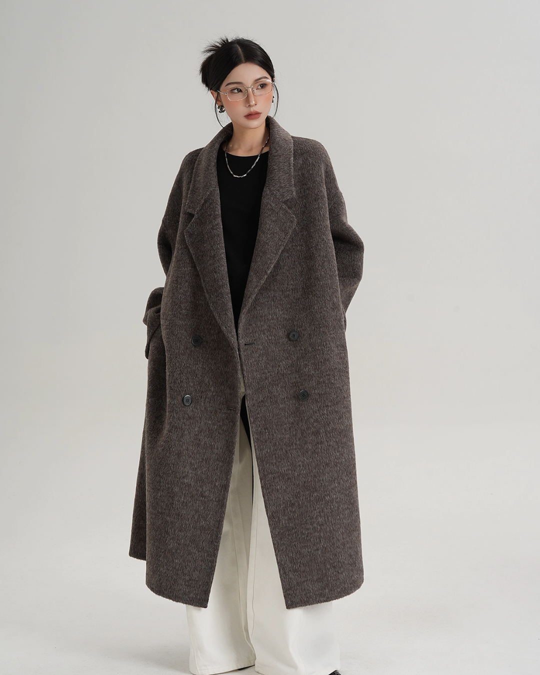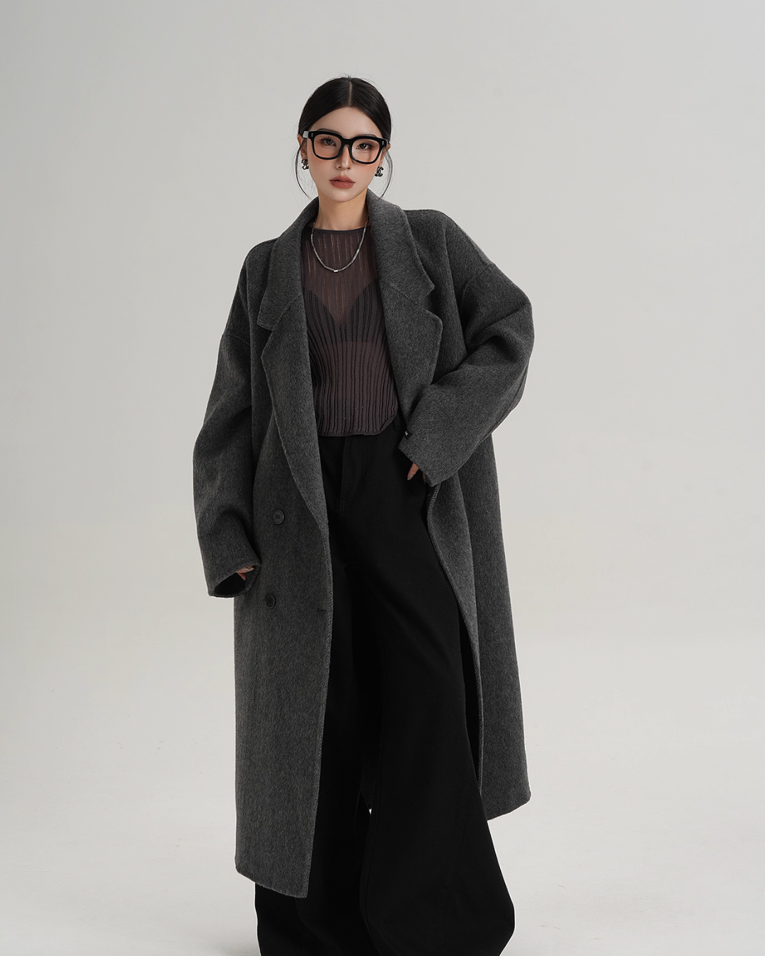 Long coat finished with a material that achieves a warm and comfortable fit.