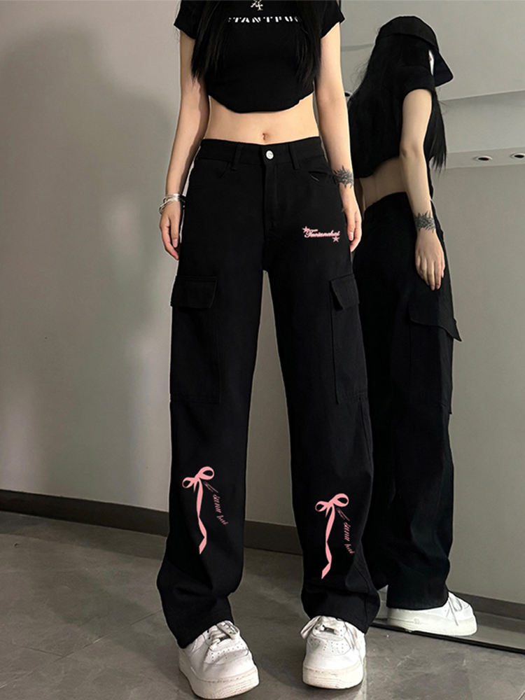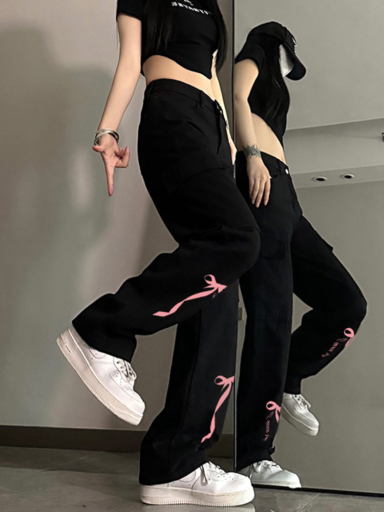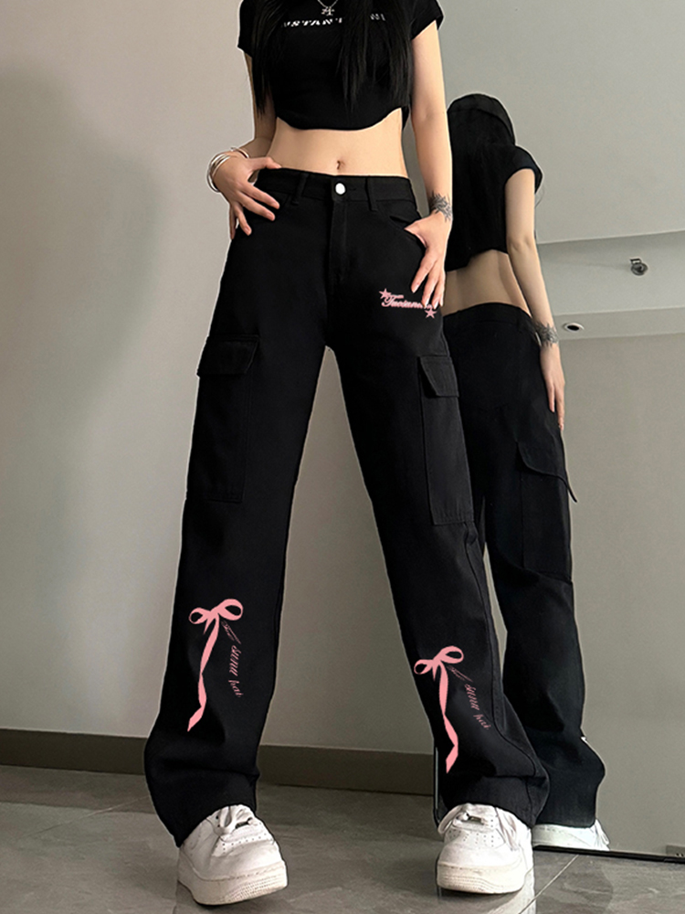 High Waisted Black Denim Pants Women Bow Print, Straight Leg Wide Leg, Workwear High-quality product featuring black jeans outfit fall, business casual outfits for women, skirt outfits and more. Modern design that fits the latest trends. Premium materials ensure durability and comfort. Order now for special offers! Product designed with attention to every detail. Suitable for all occasions and personal styles.