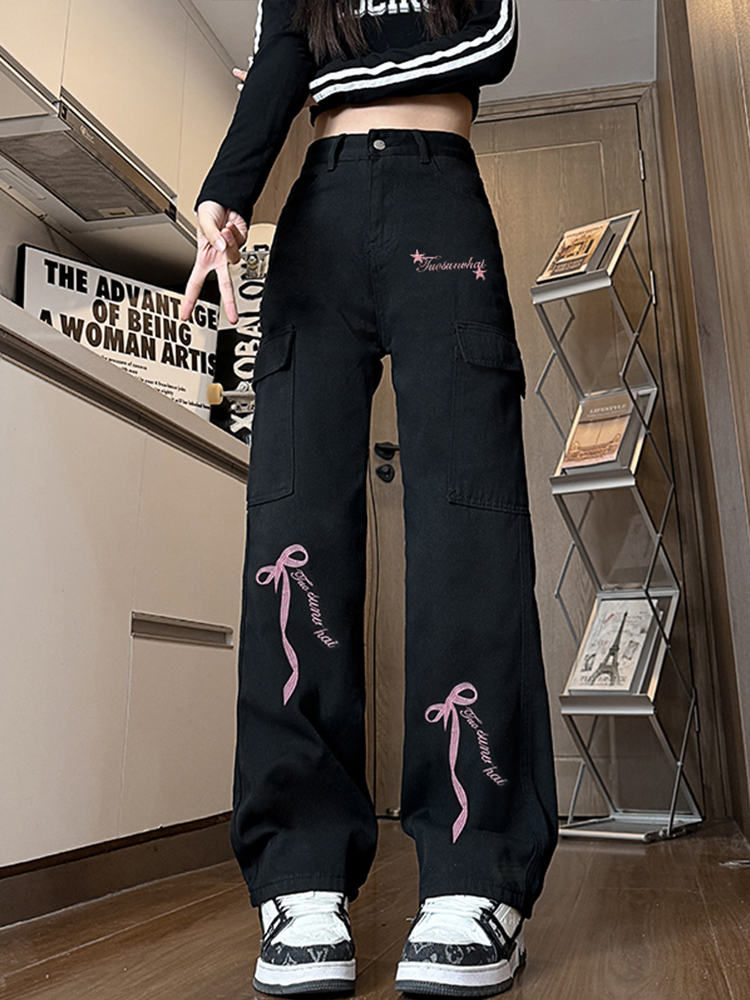 High Waisted Black Denim Pants Women Bow Print, Straight Leg Wide Leg, Workwear High-quality product featuring black jeans outfit fall, business casual outfits for women, skirt outfits and more. Modern design that fits the latest trends. Premium materials ensure durability and comfort. Order now for special offers! Product designed with attention to every detail. Suitable for all occasions and personal styles.