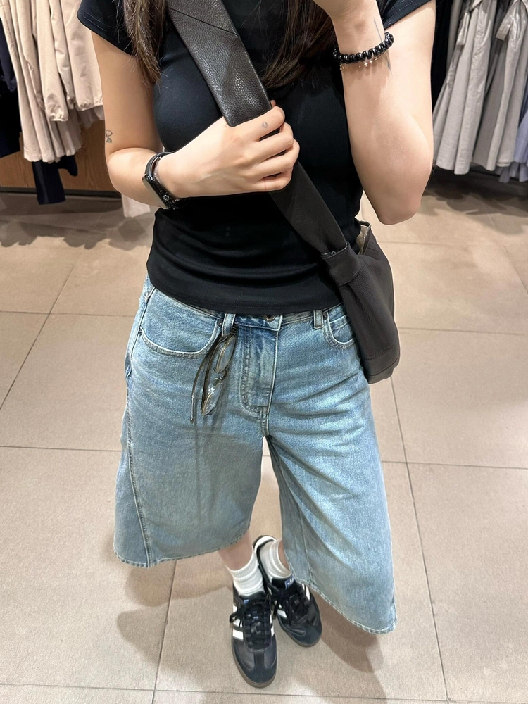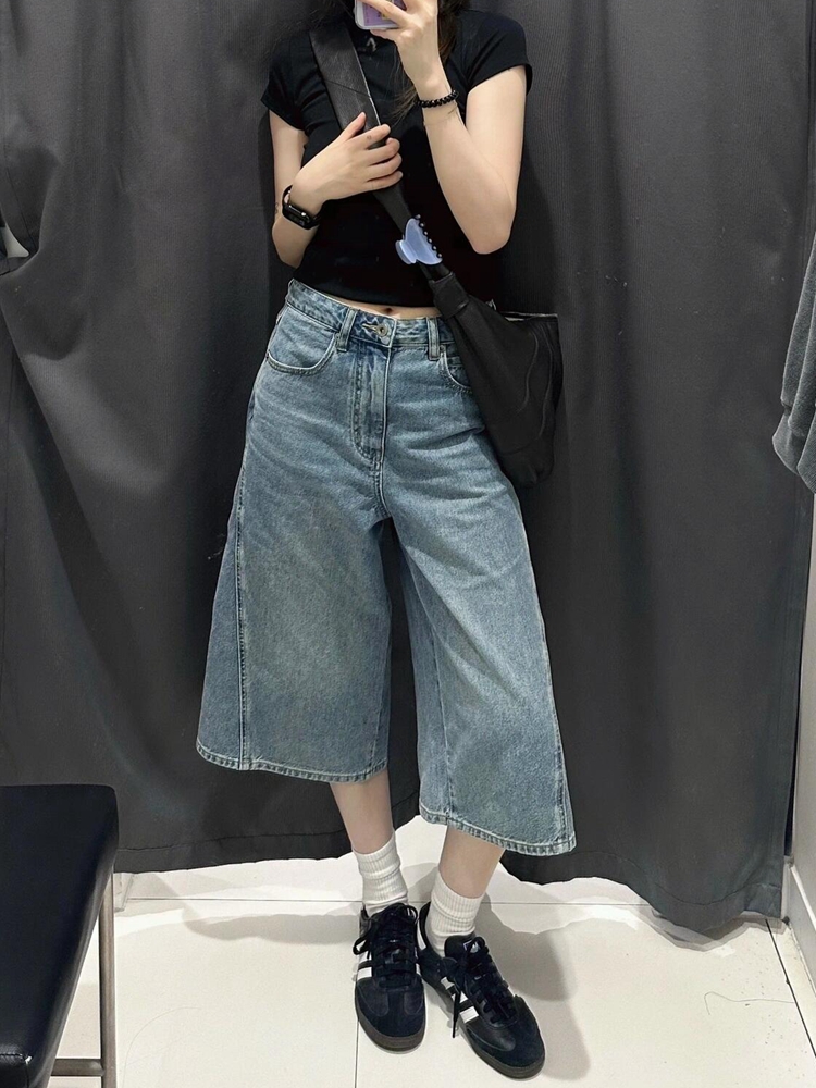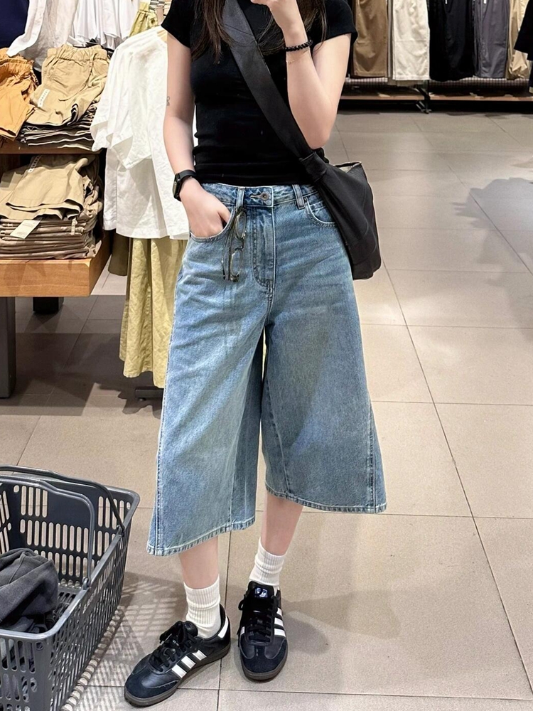 Be the first to review “High Waisted Blue Denim Capri Shorts Women, Retro Loose Fit Straight Wide Leg Summer Pants” Cancel reply