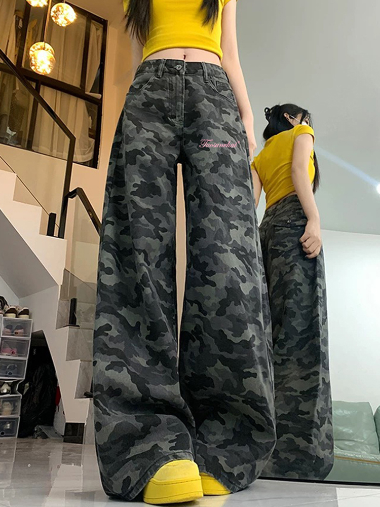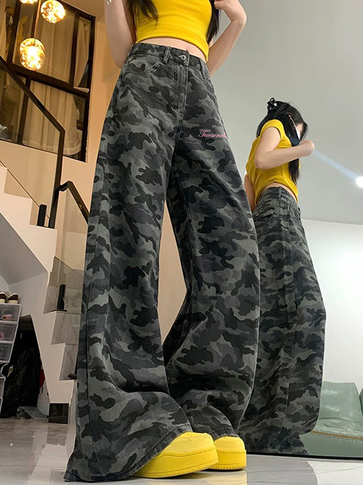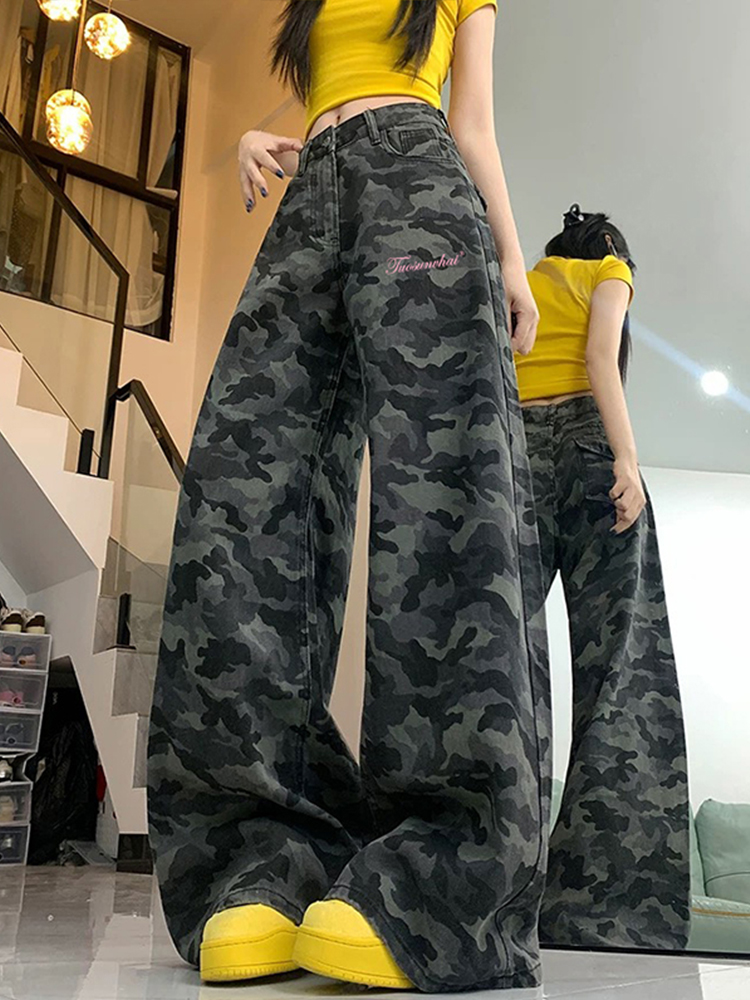 High Waisted Camouflage Wide Leg Jeans Women Vintage Workwear, Slim Fit Loose Straight Leg Floor Length Pants High-quality product featuring business casual outfits for women, easy costumes women, western outfits women and more. Modern design that fits the latest trends. Premium materials ensure durability and comfort. Order now for special offers! Product designed with attention to every detail. Suitable for all occasions and personal styles.