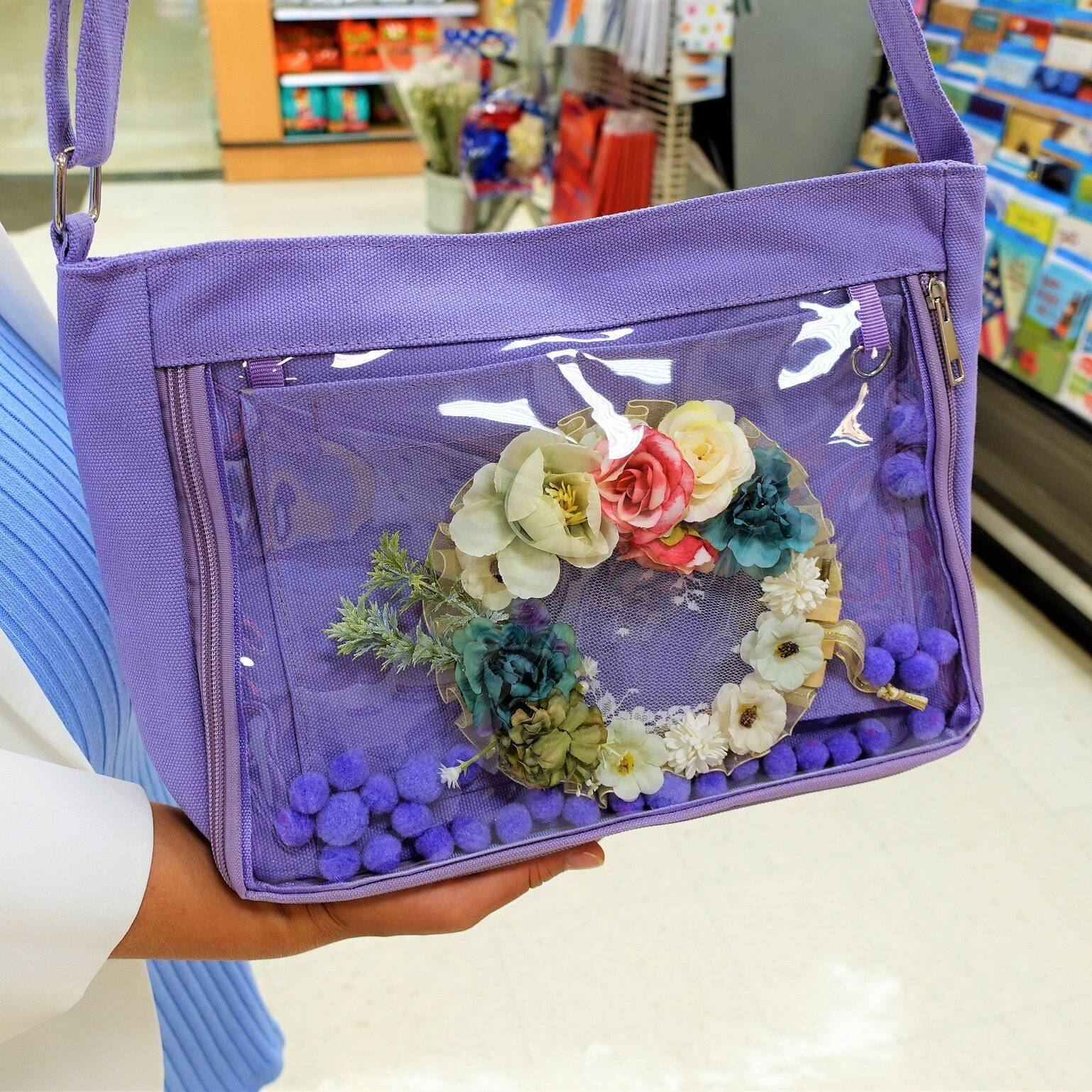 Ita Crossbody Bag with Clear Window for Pin Display combines everyday carry with a clear display area for pins, badges, charms, or character merch.