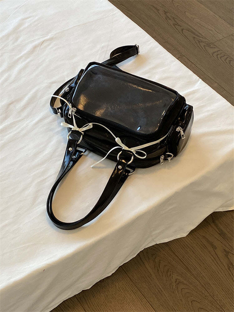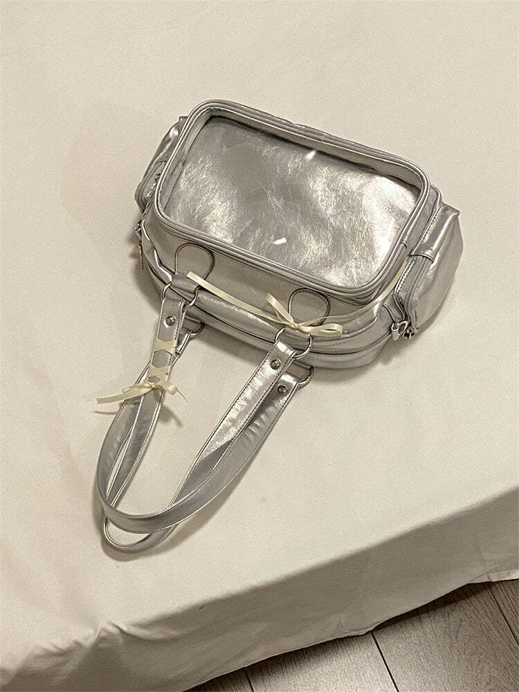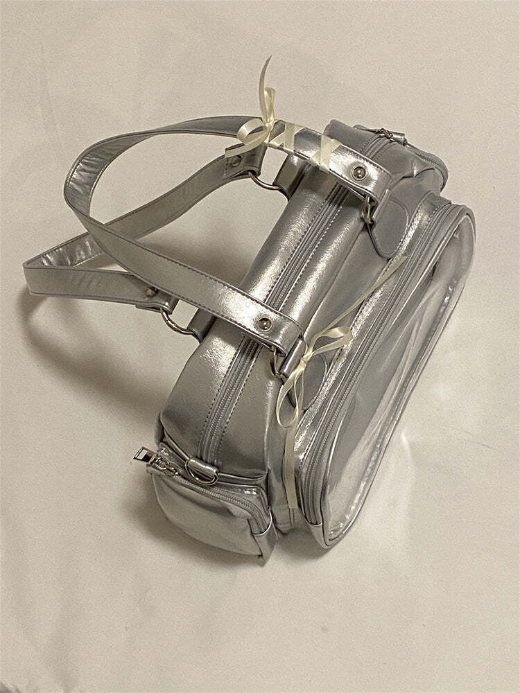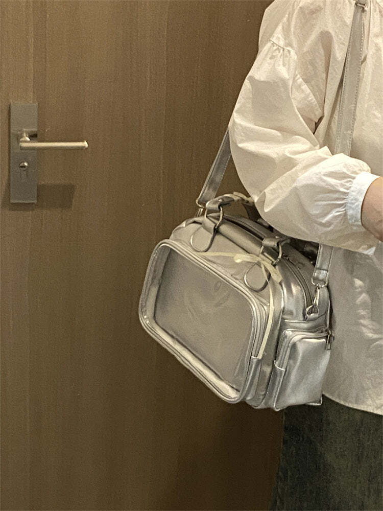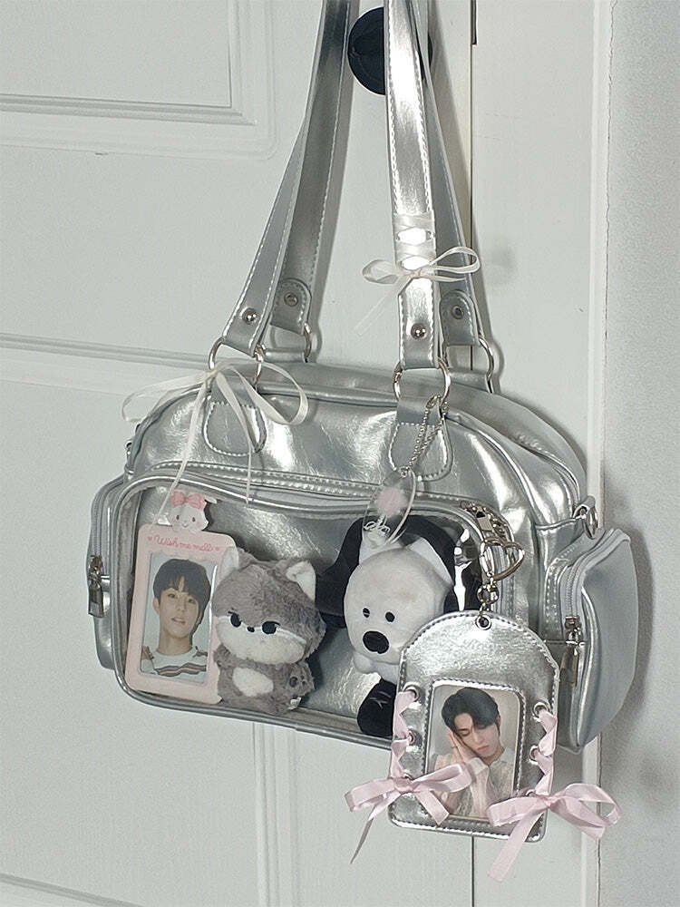 Ita Bag with Clear Window for Plushies and Pins is designed to display plushies, dolls, pins, and badges while keeping everyday essentials organized.