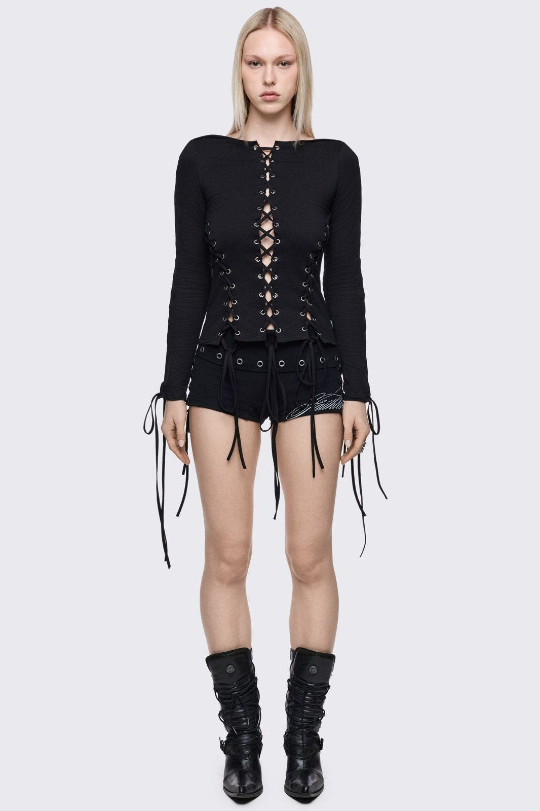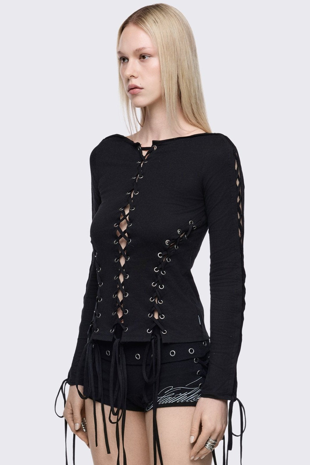 - Tenebris Lace-Up Top Original price was: $95.20.$66.64Current price is: $66.64.