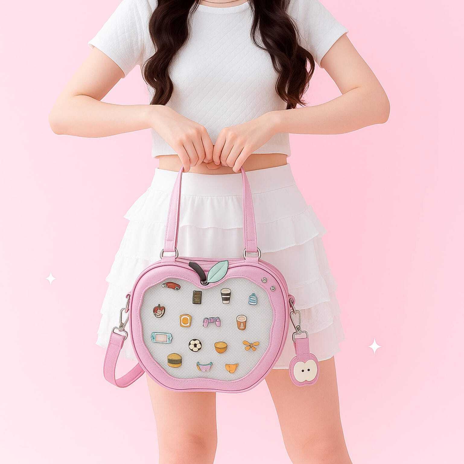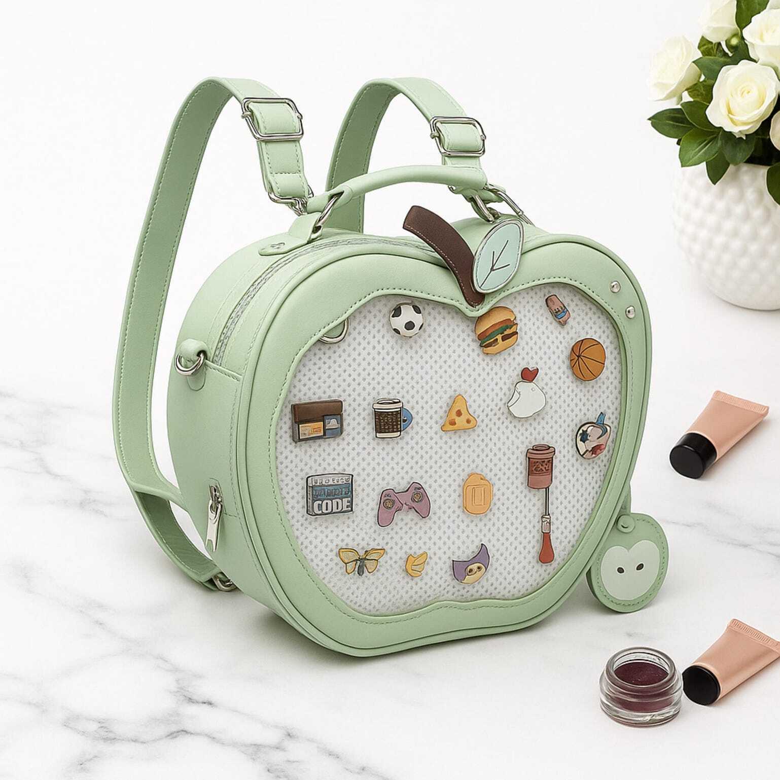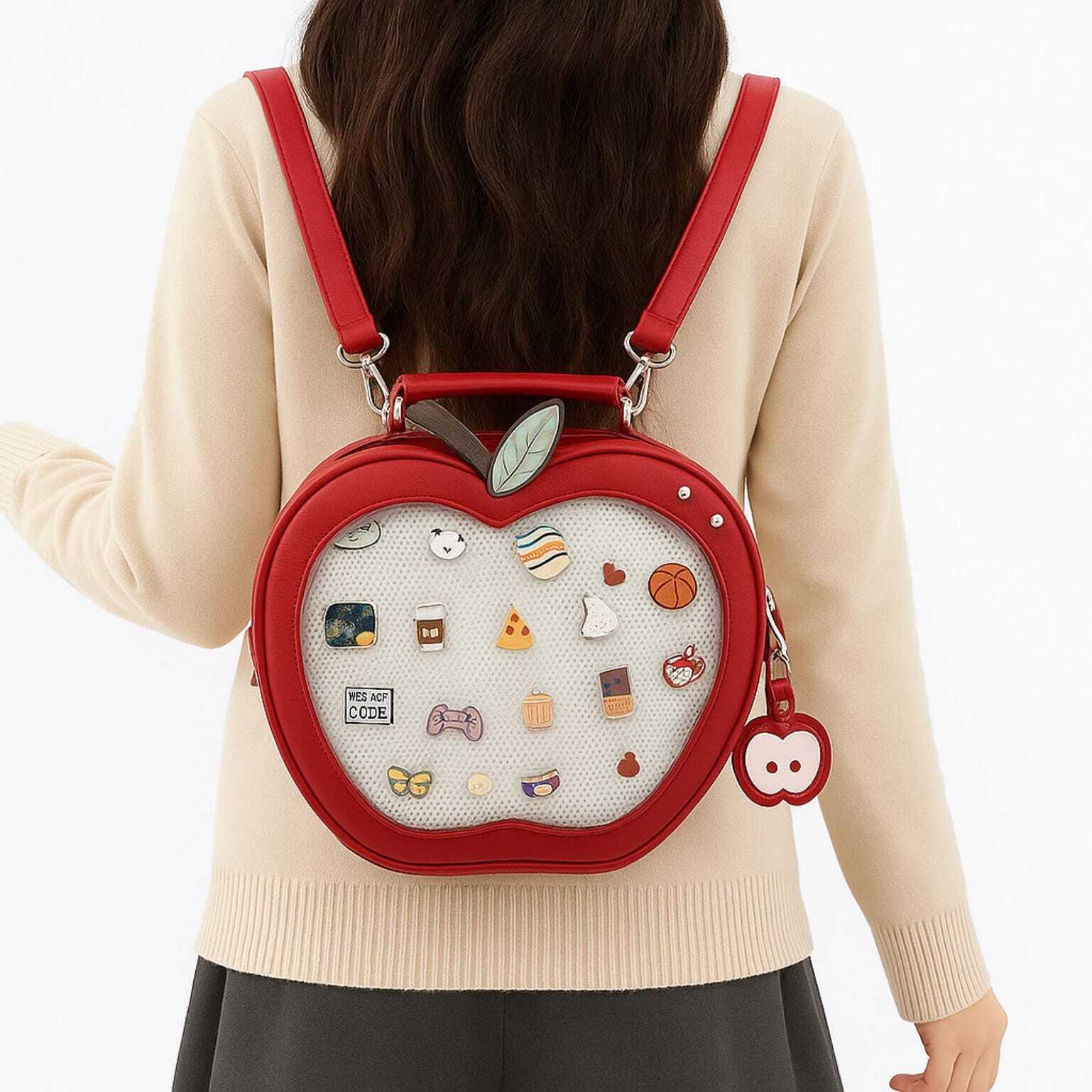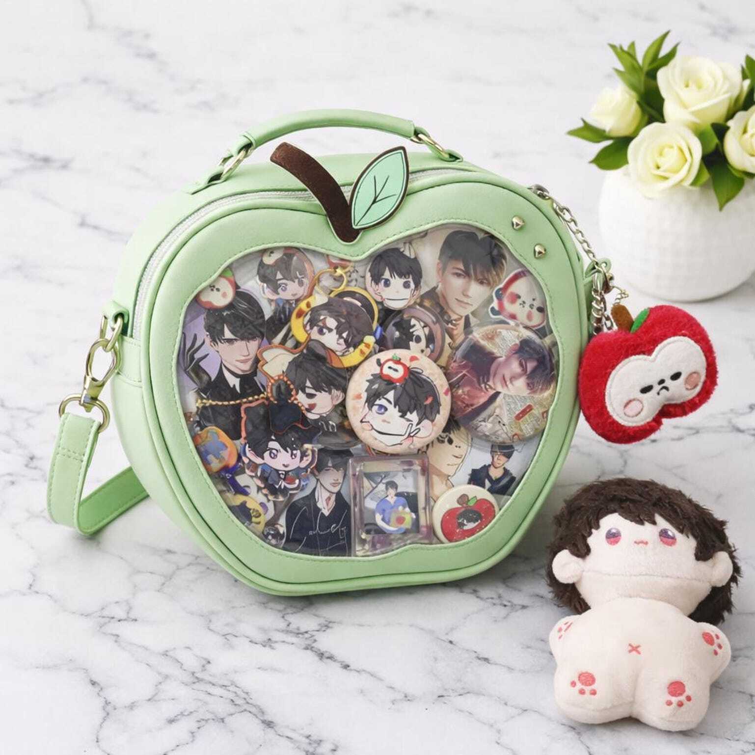 Kawaii Apple Ita Backpack with Clear Window for Plushies and Pins