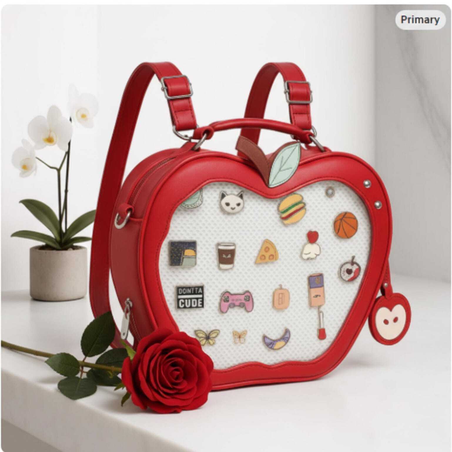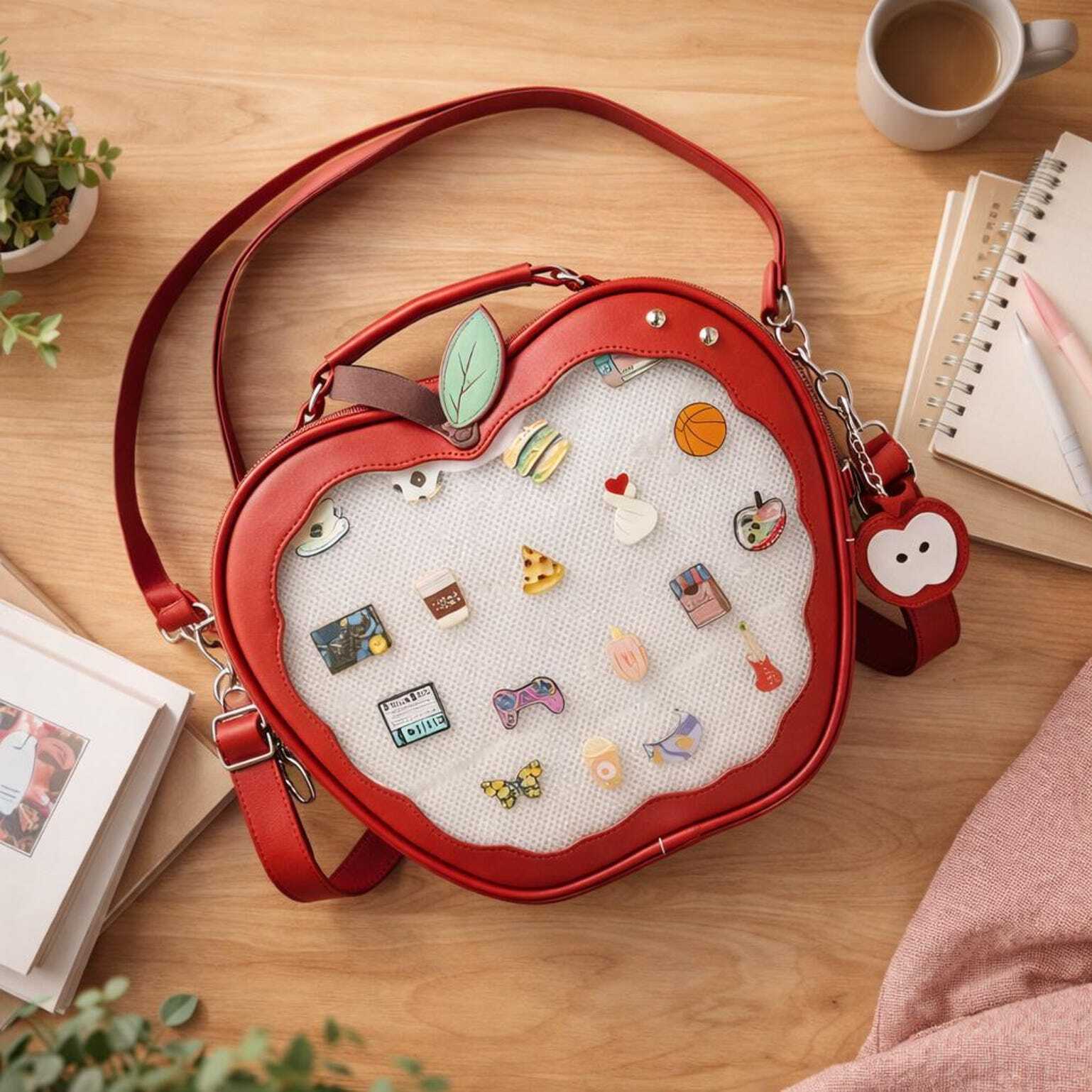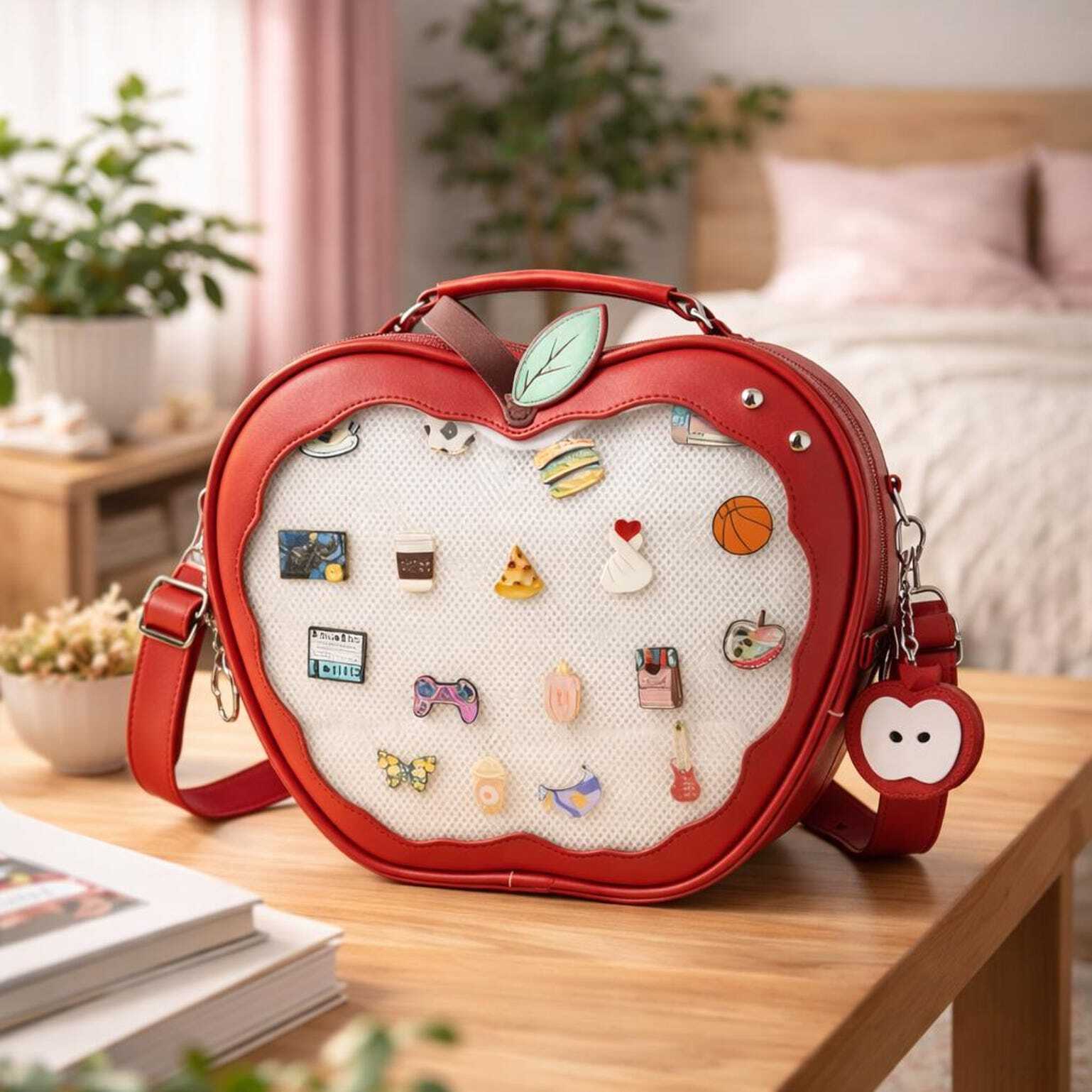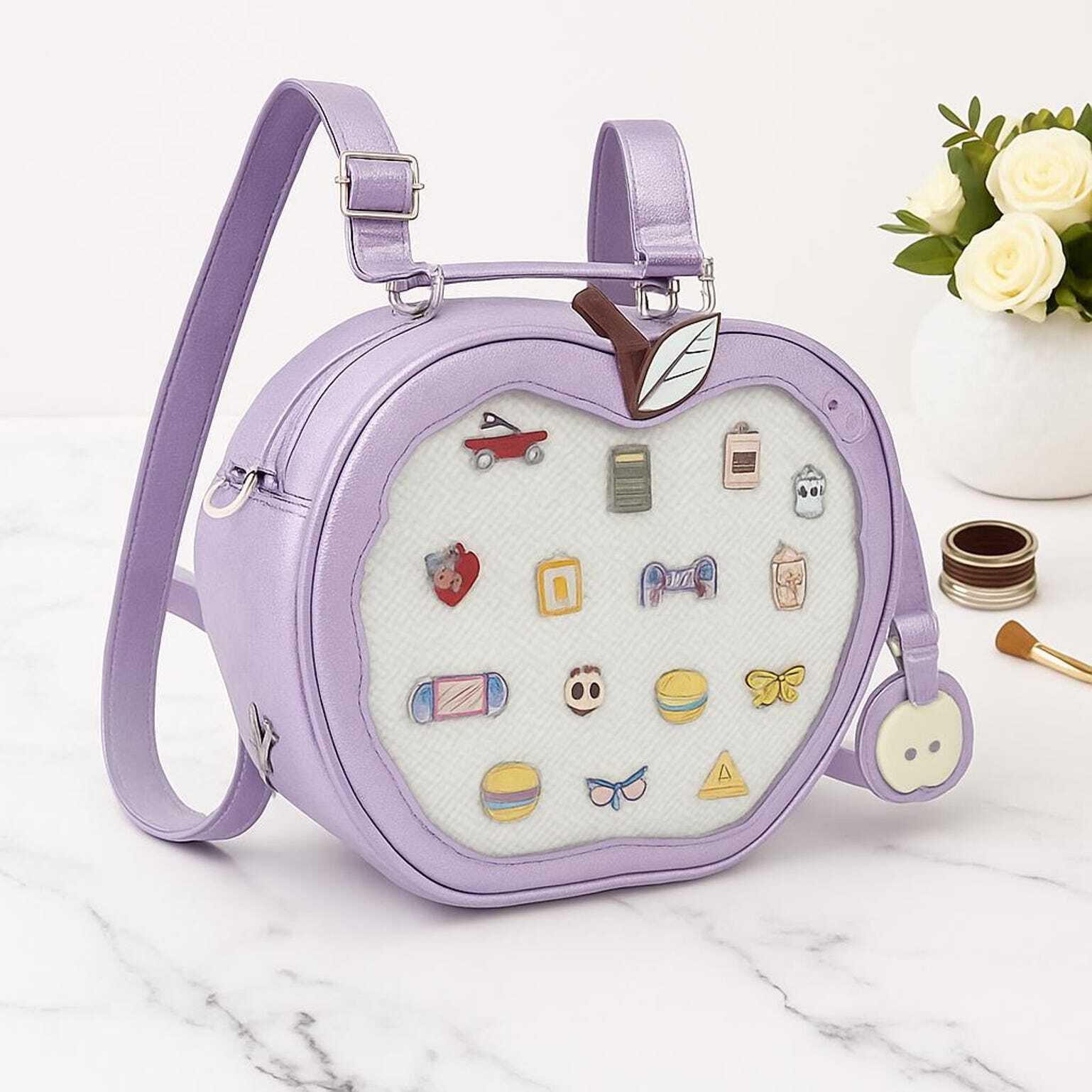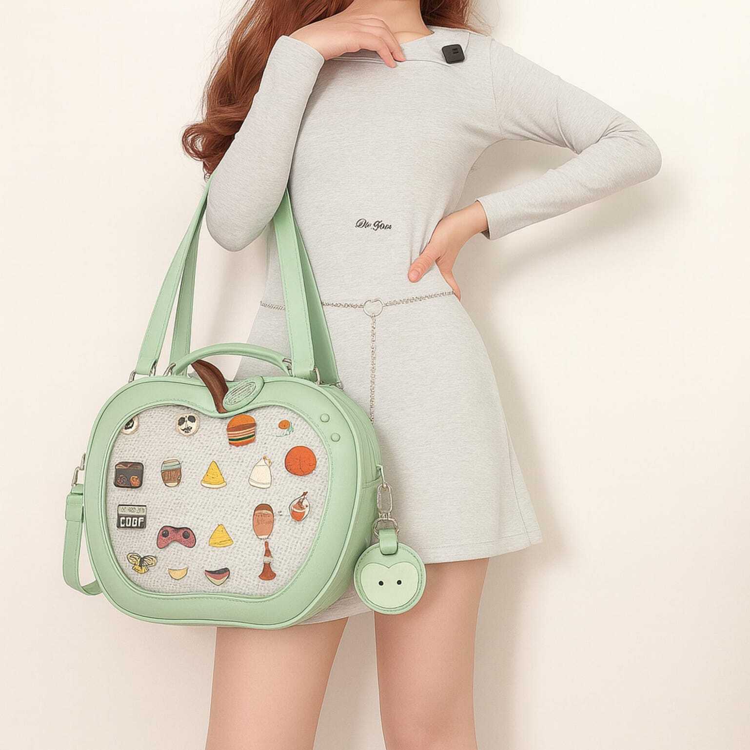 Kawaii Apple Ita Backpack with Clear Window for Plushies and Pins