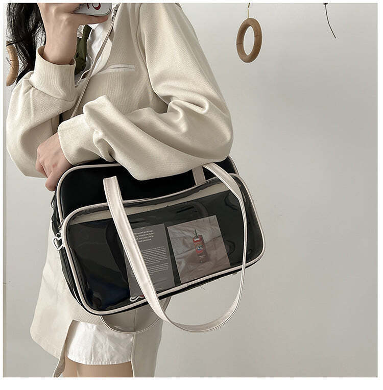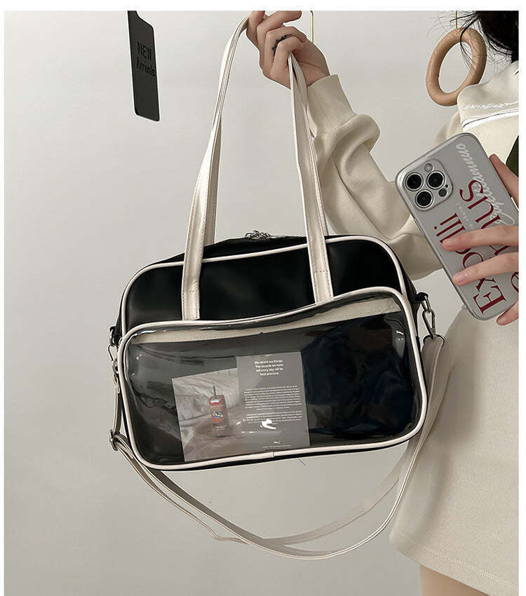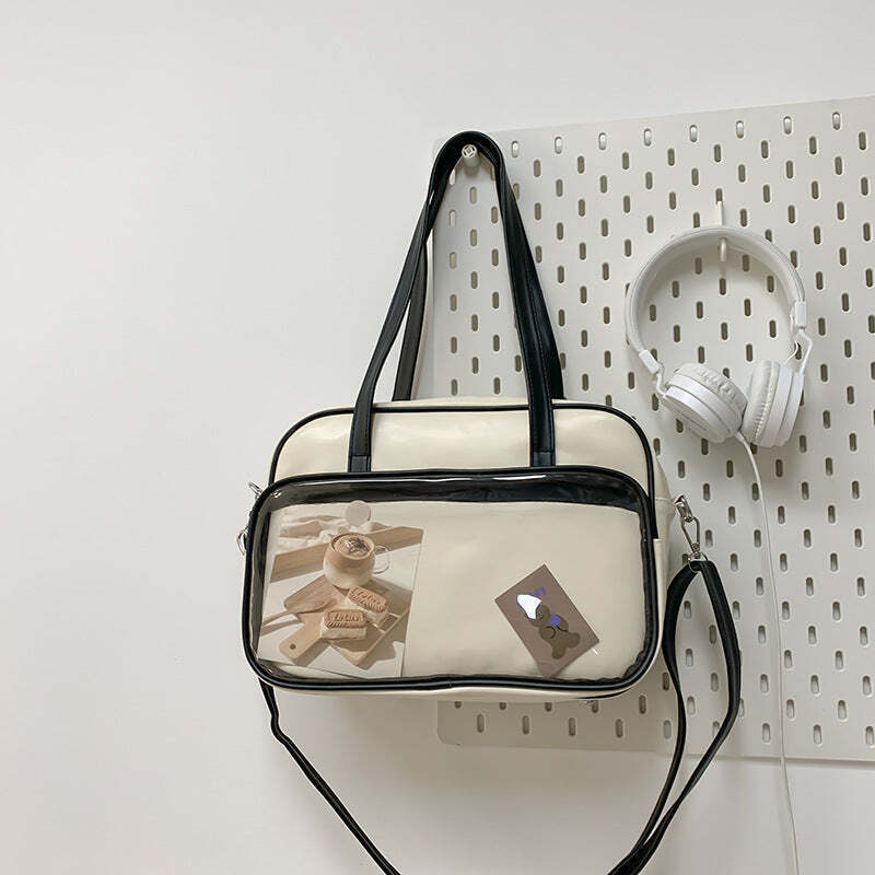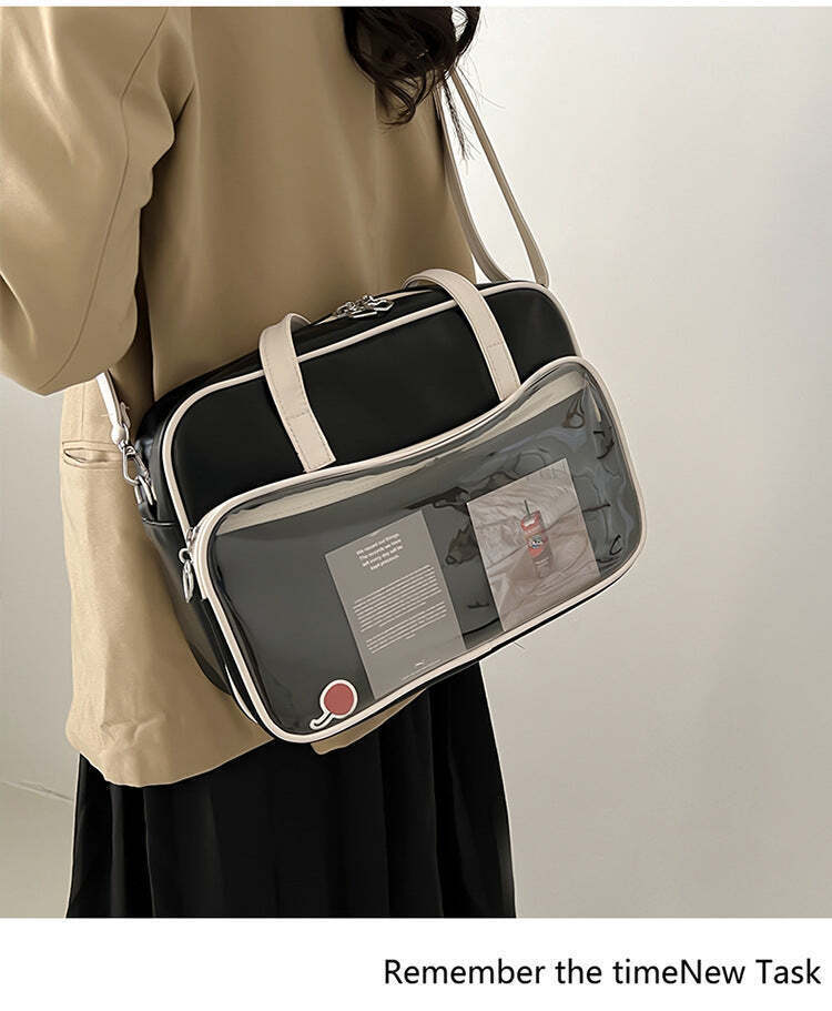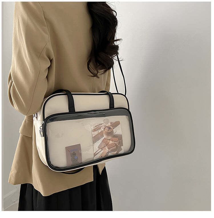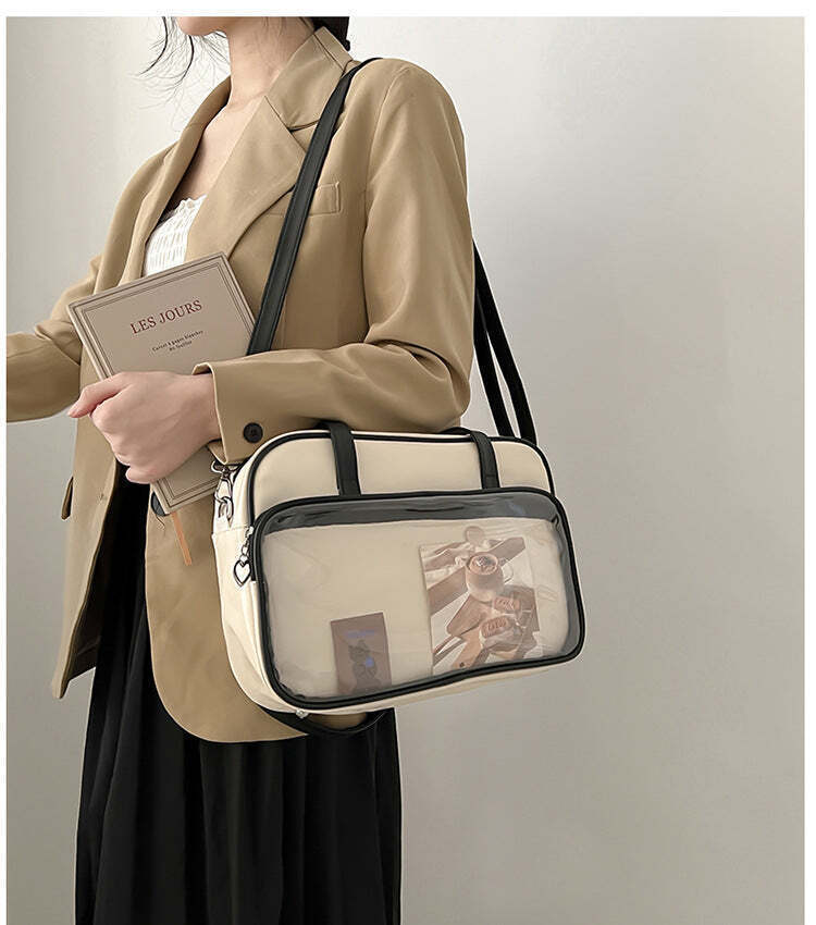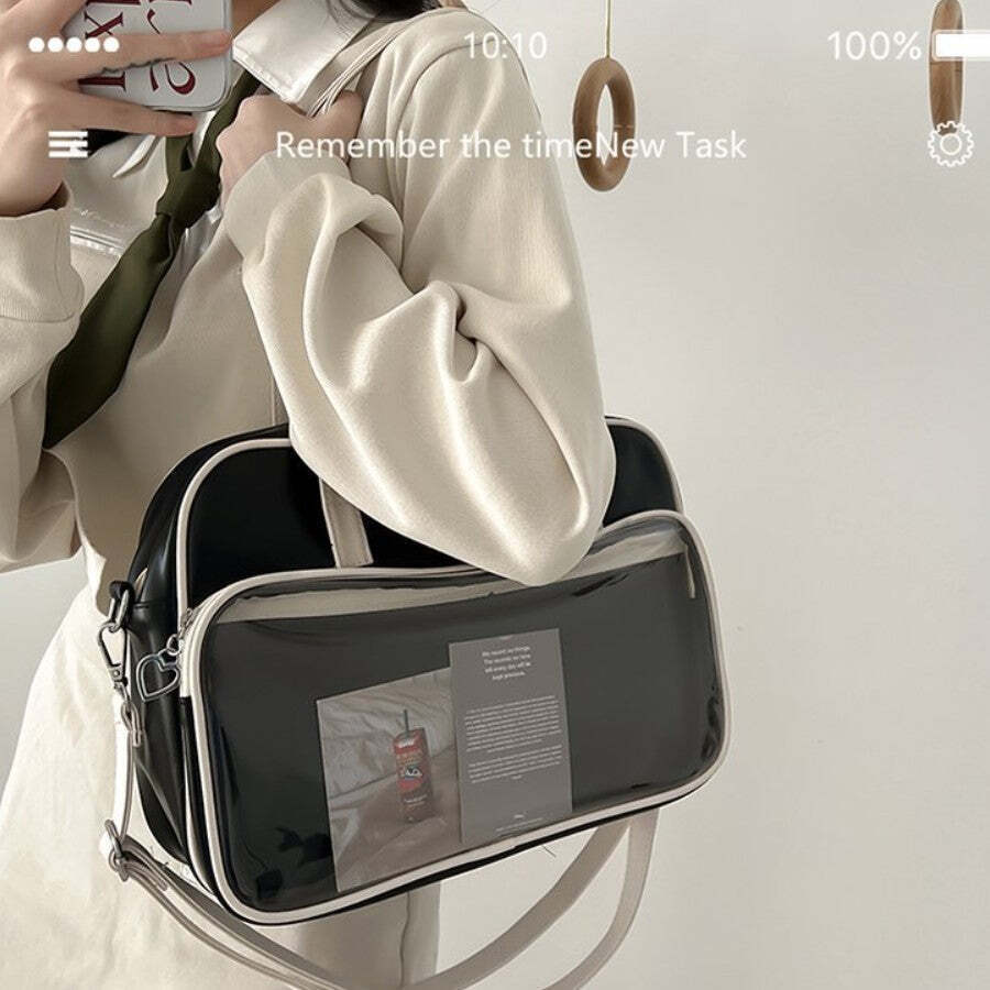Kawaii Convertible Ita Bag with Clear Window combines everyday carry with a clear display area for pins, badges, charms, or character merch.