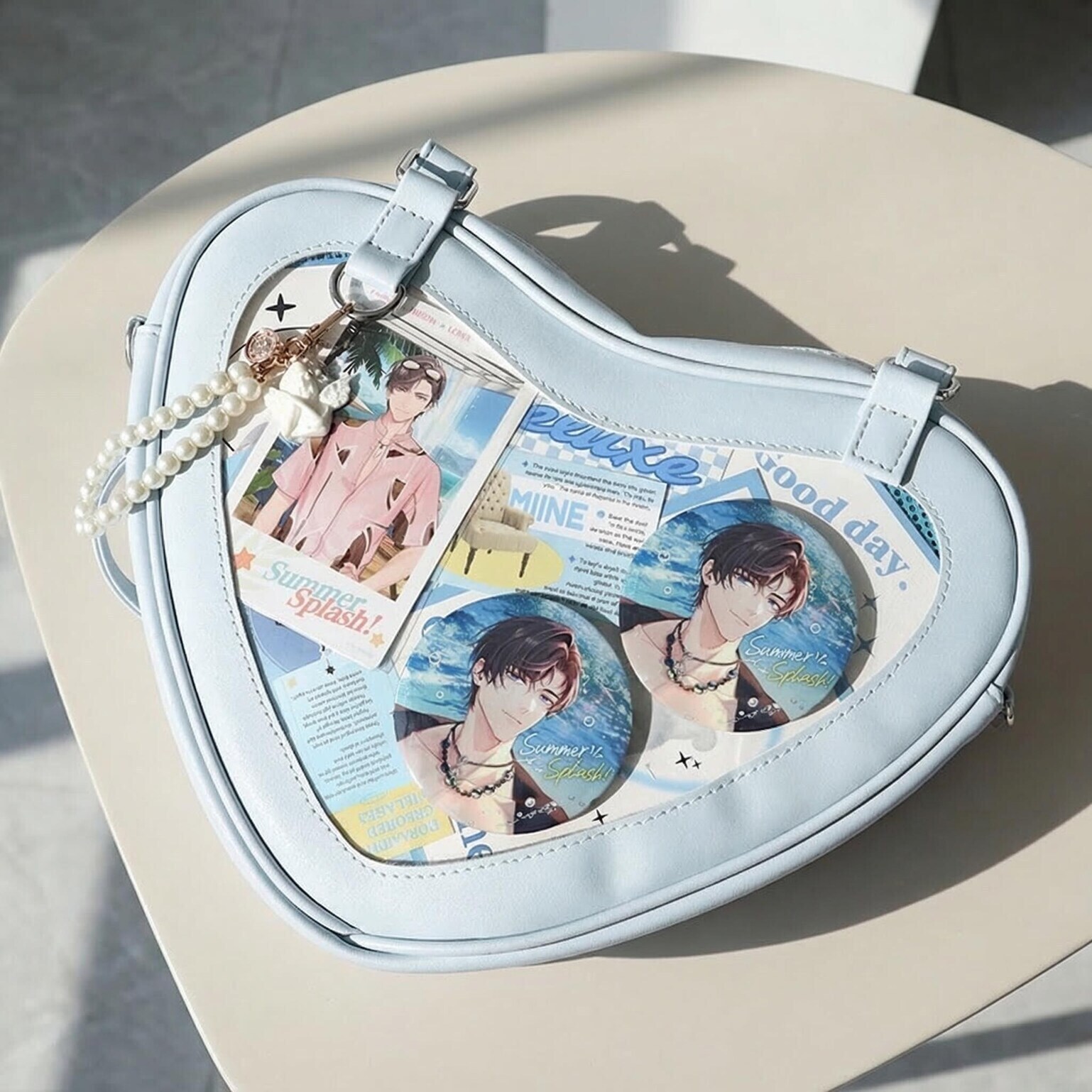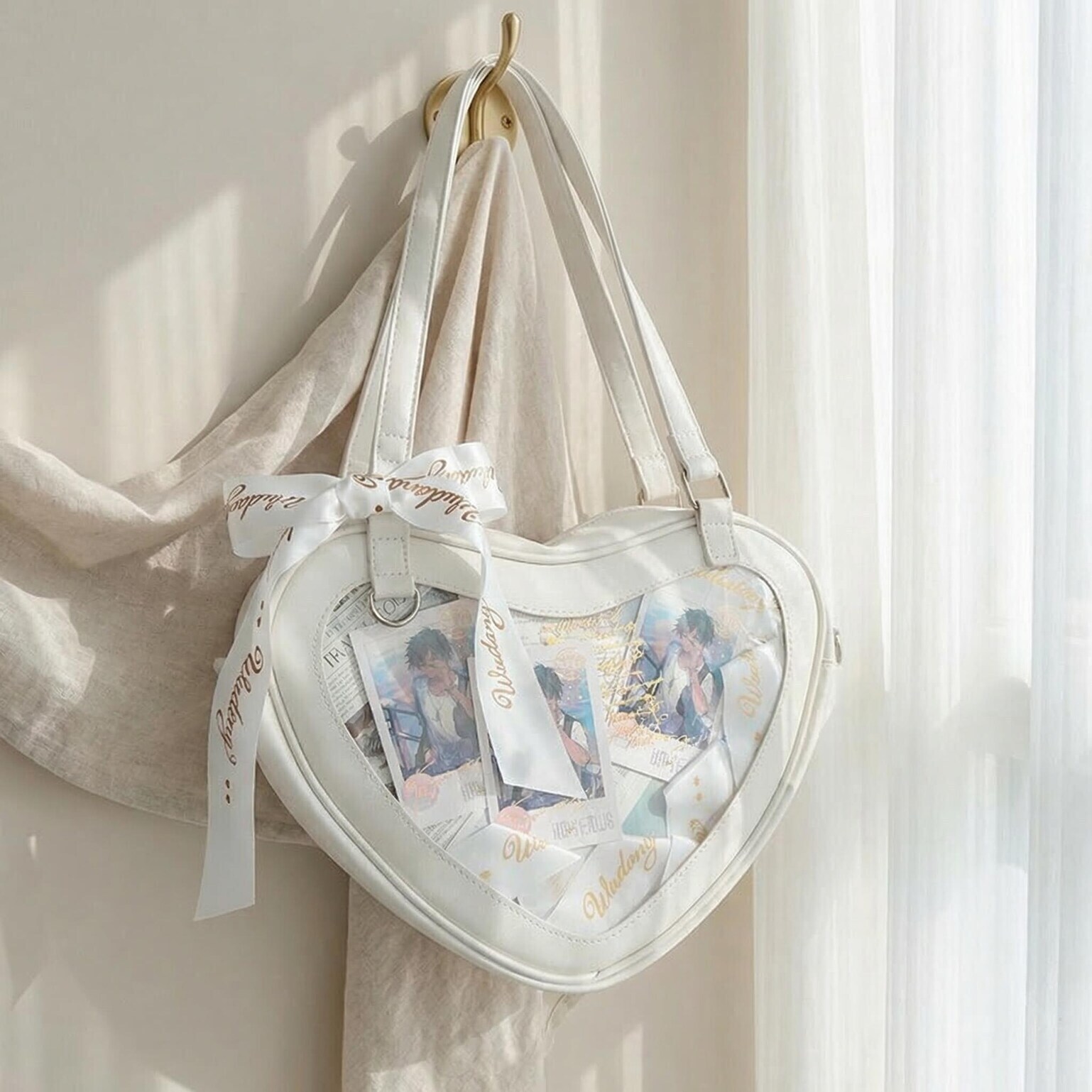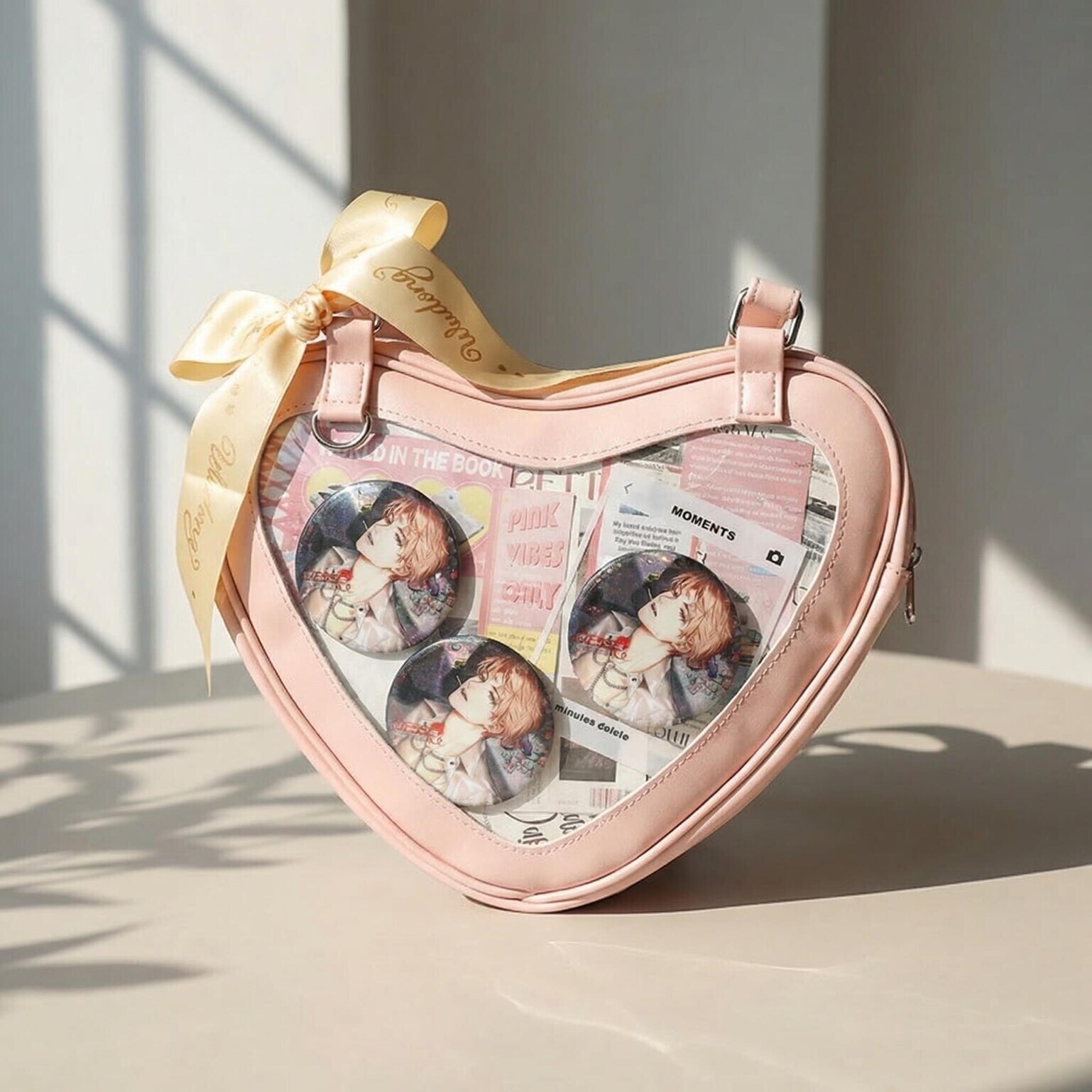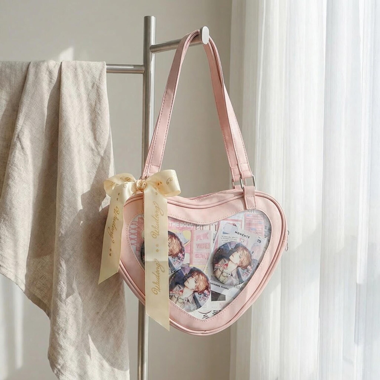 Kawaii Heart Ita Shoulder Bag with Clear Window for Photocards and Pins