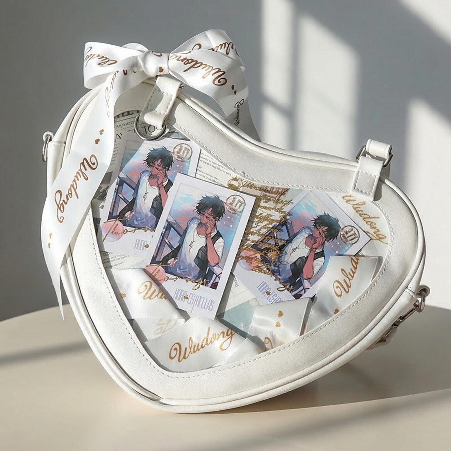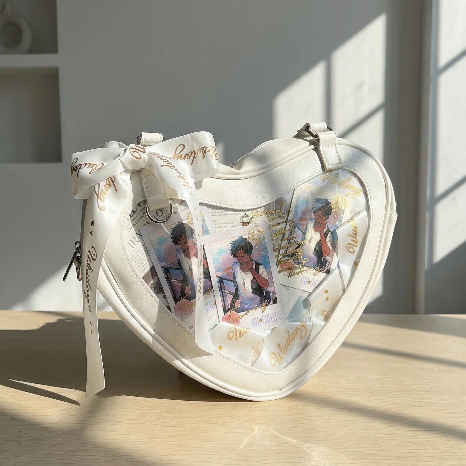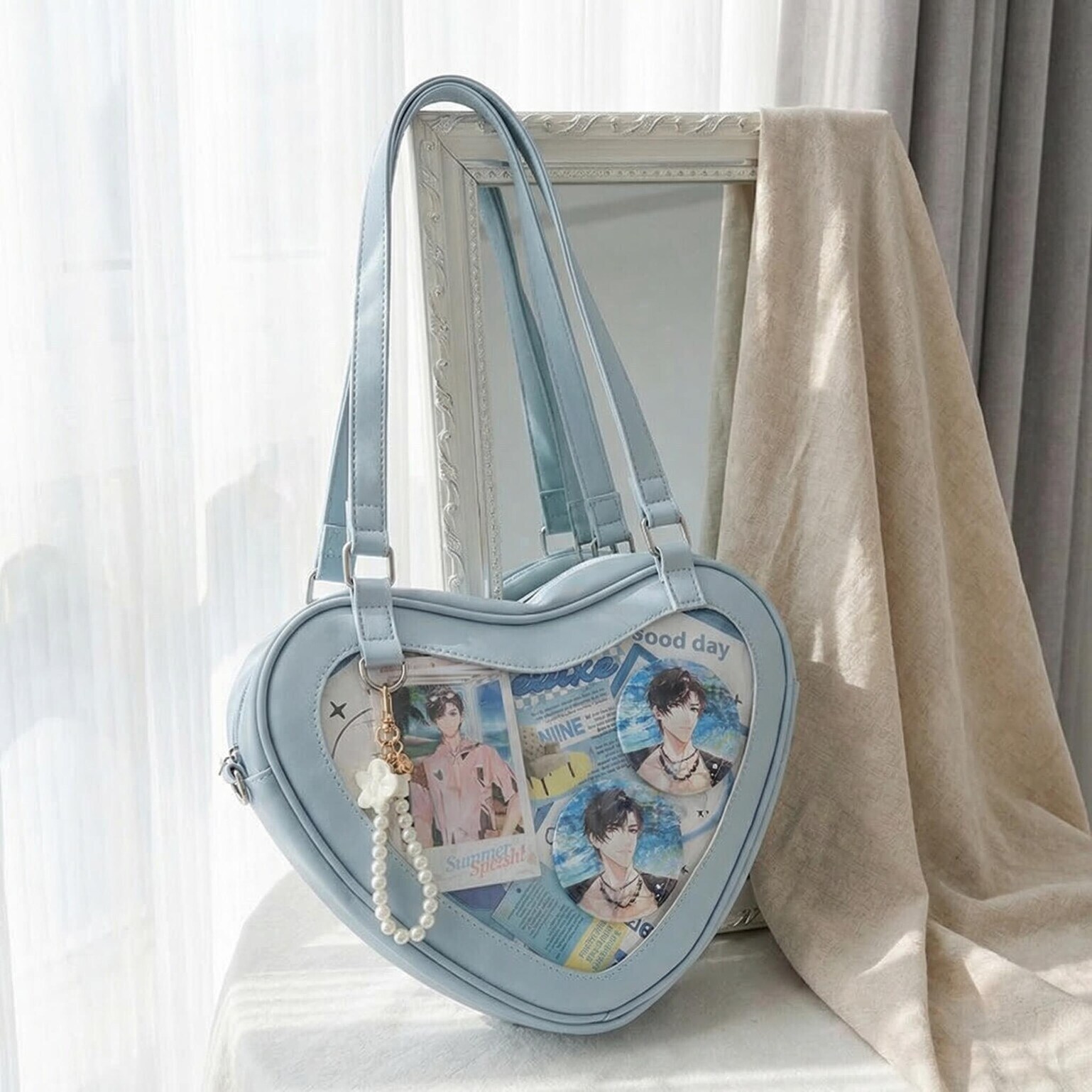 Kawaii Heart Ita Shoulder Bag with Clear Window for Photocards and Pins