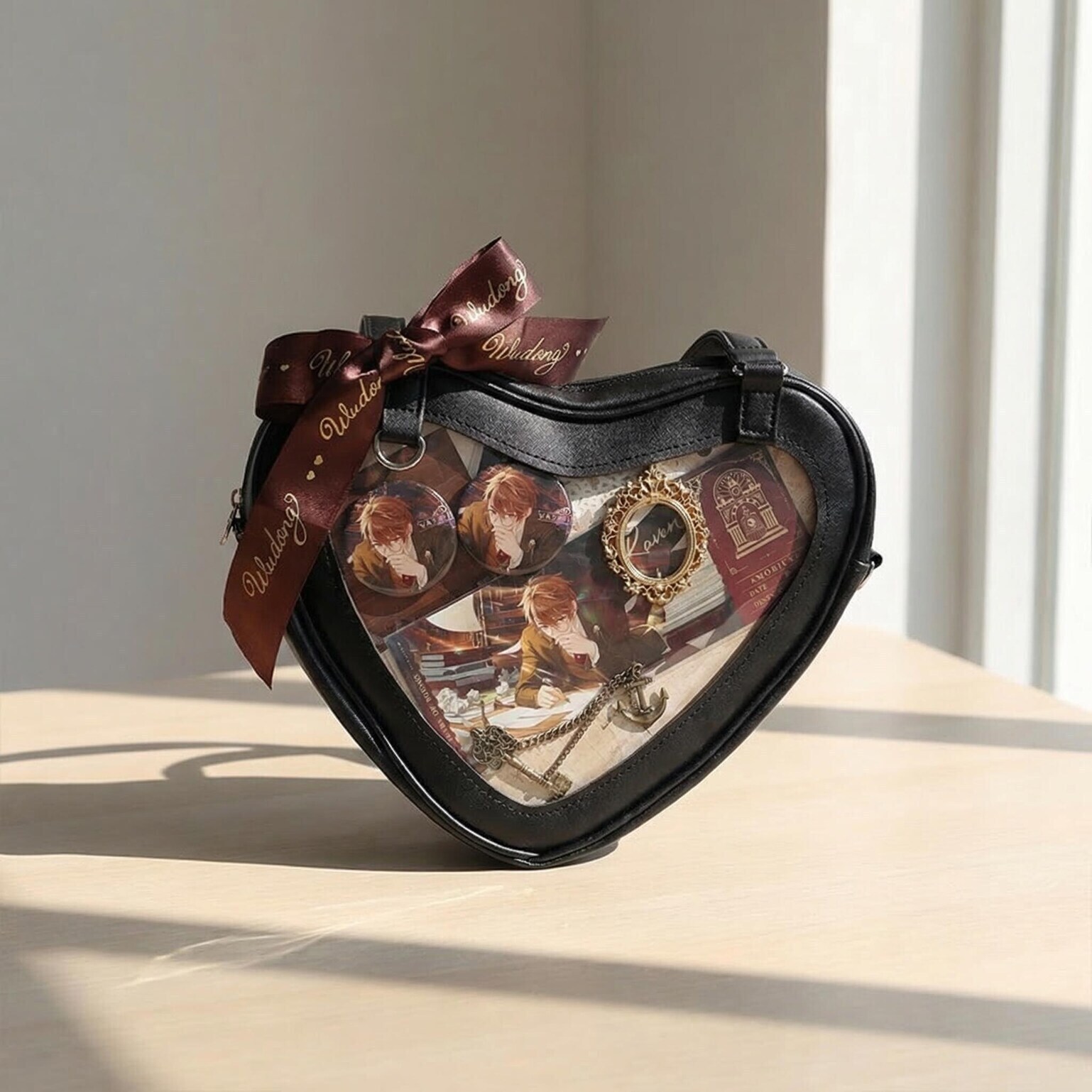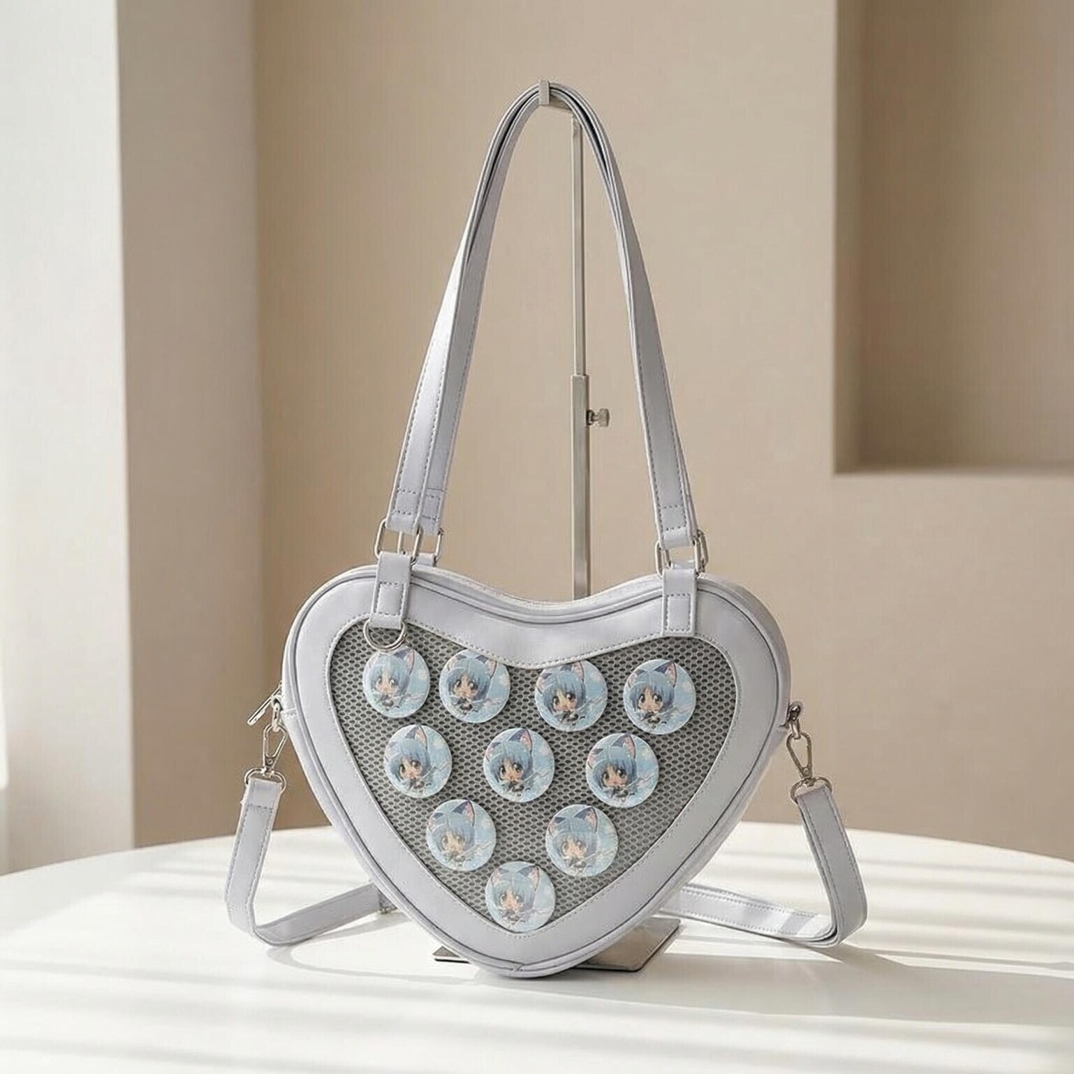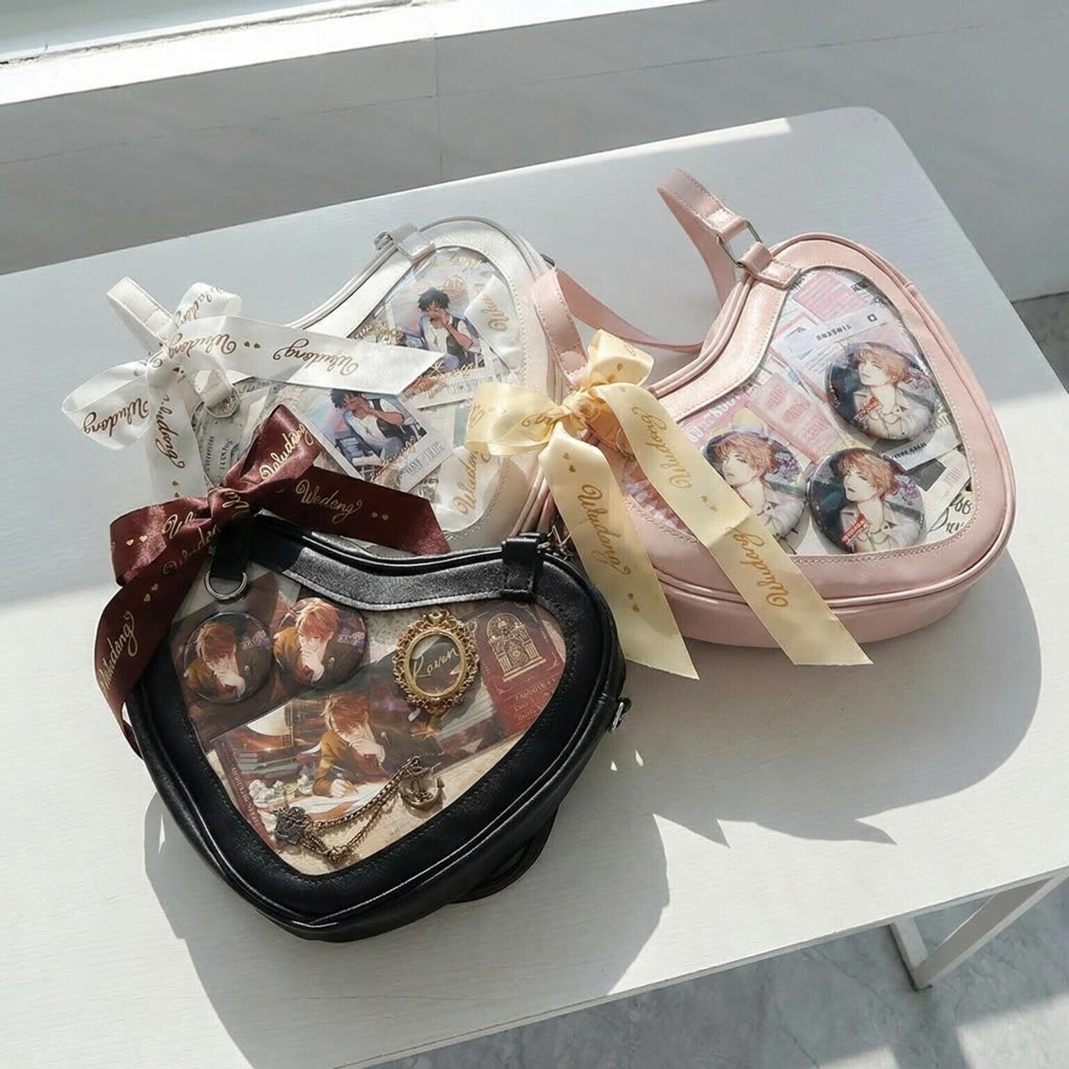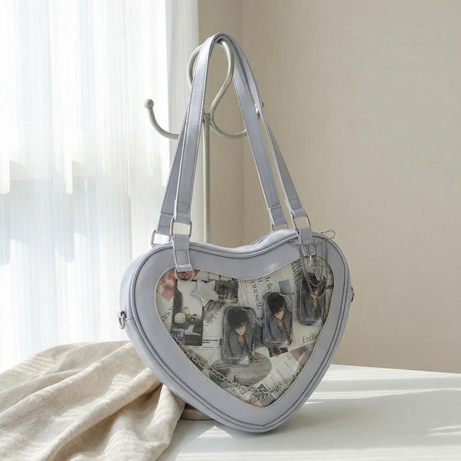 Kawaii Heart Ita Shoulder Bag with Clear Window for Photocards and Pins