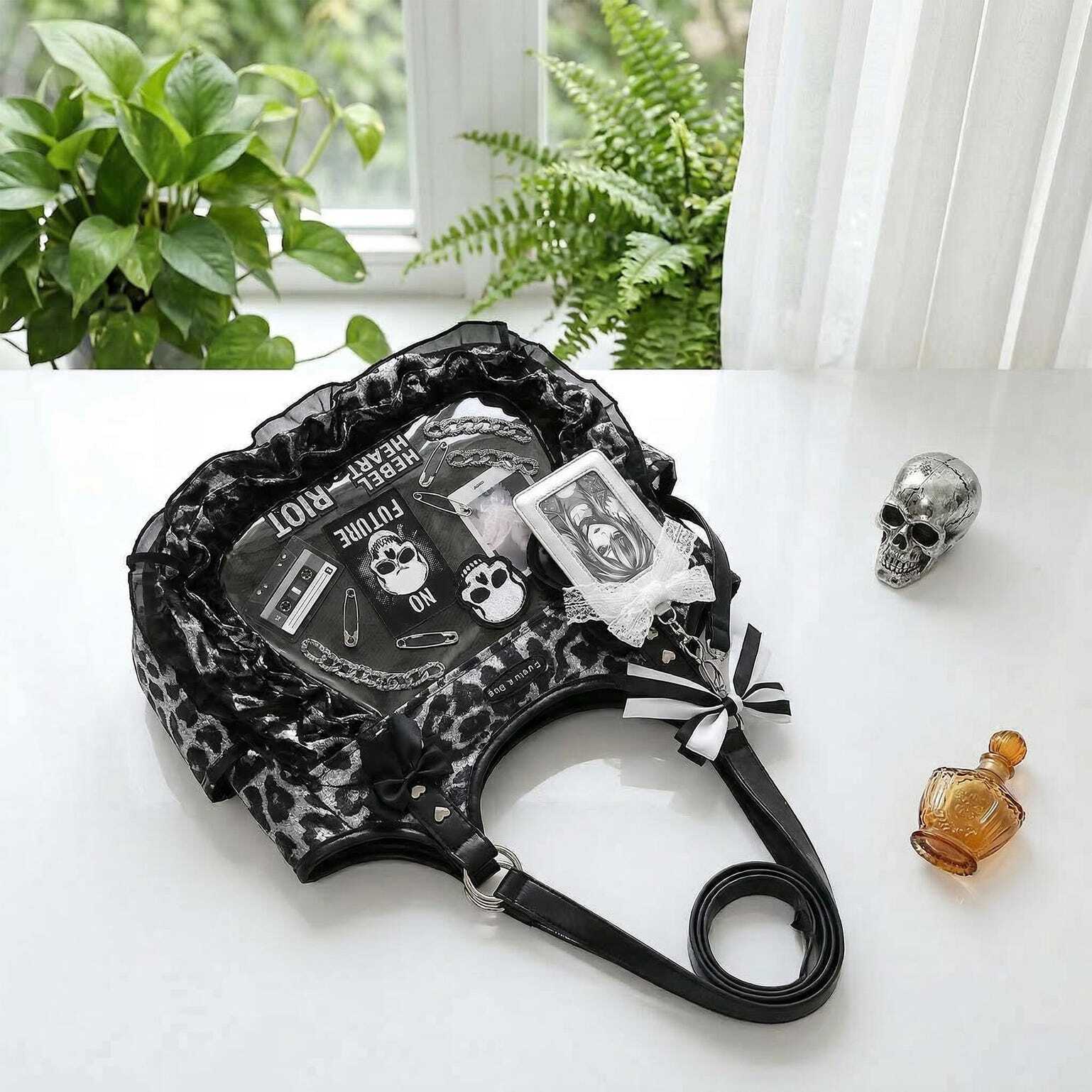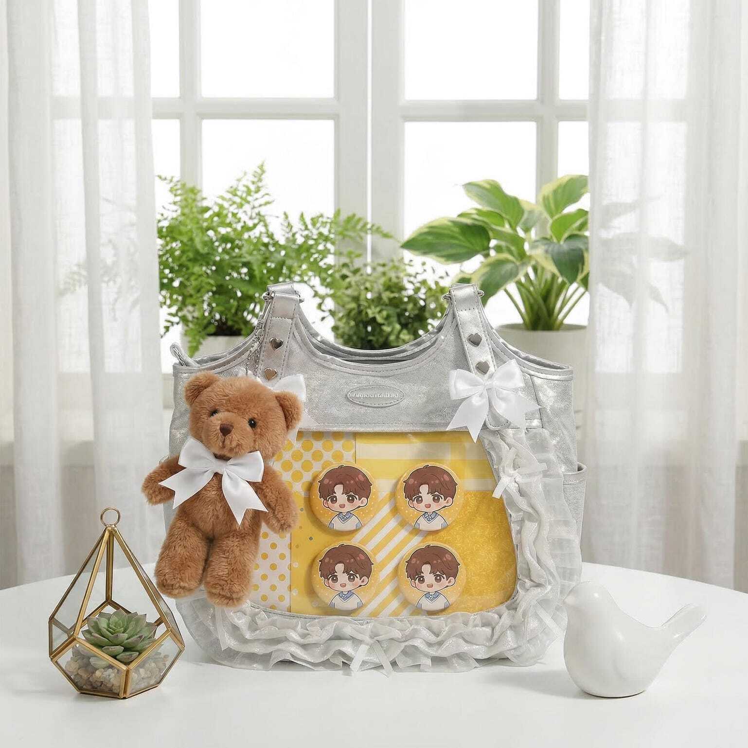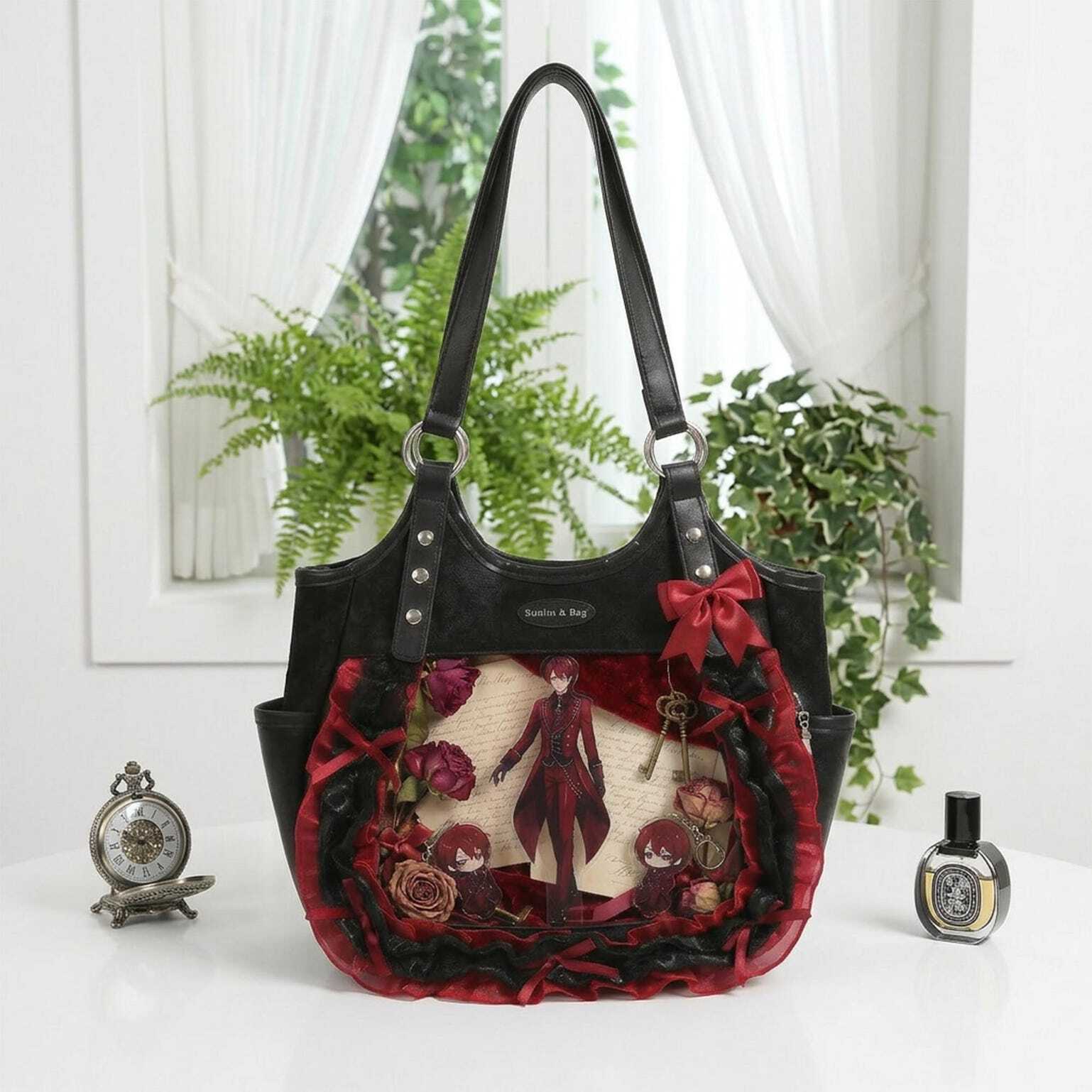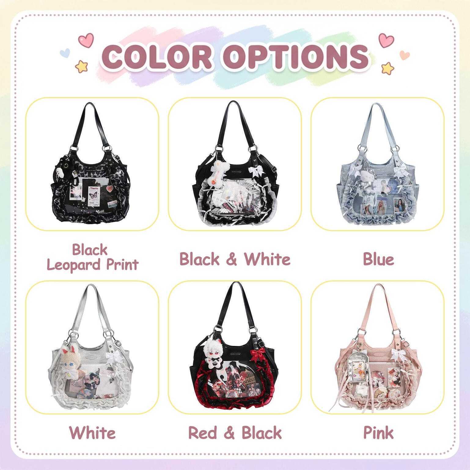 Kawaii Heart Ita Shoulder Bag with Clear Window for Pin Display combines everyday carry with a clear display area for pins, badges, charms, or character merch.