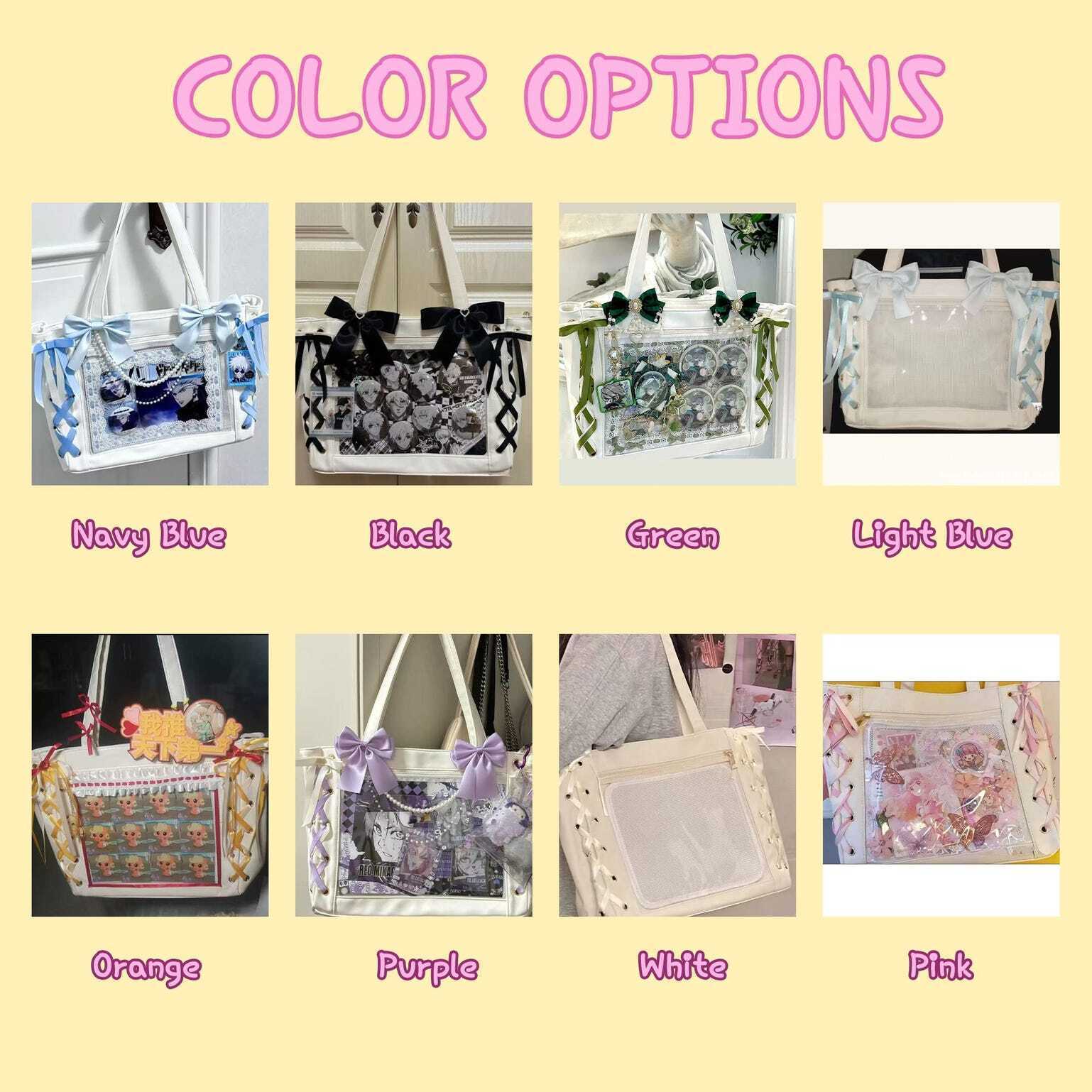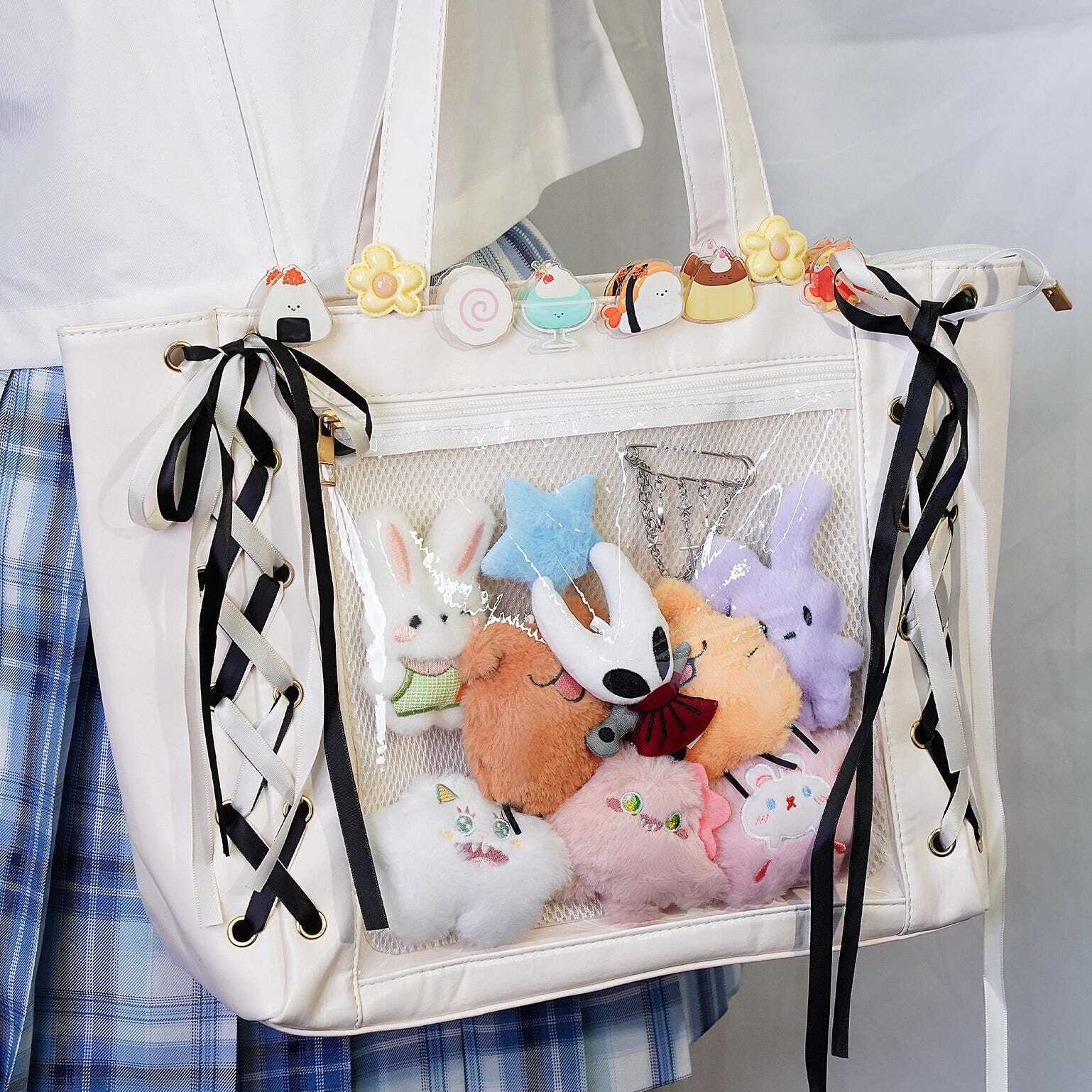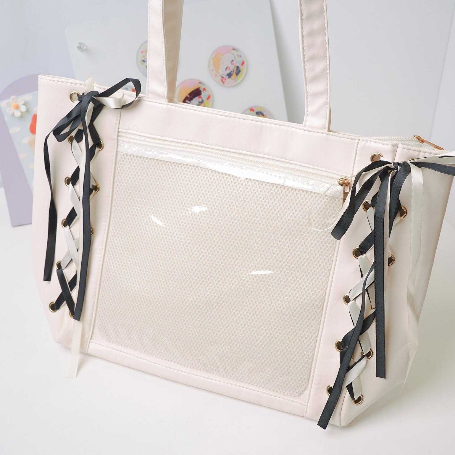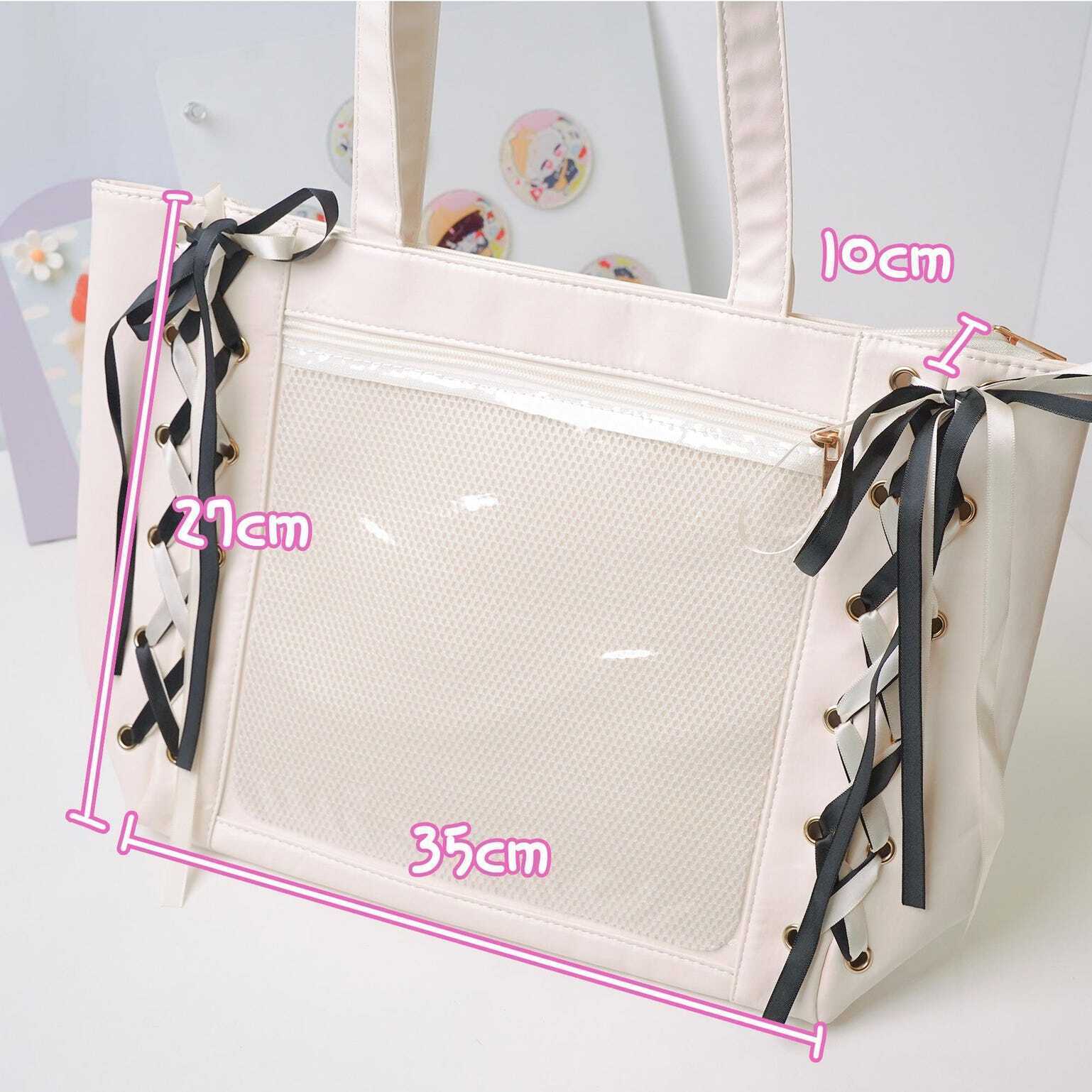 Kawaii Ribbon Ita Shoulder Bag with Clear Window for Pin Display