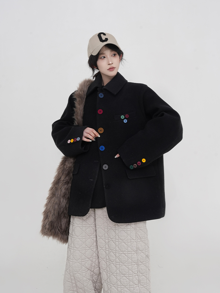 Be the first to review “Black Polo Collar Thick Woolen Coat Women, Padded Short Warm Top, Autumn Winter” Cancel reply