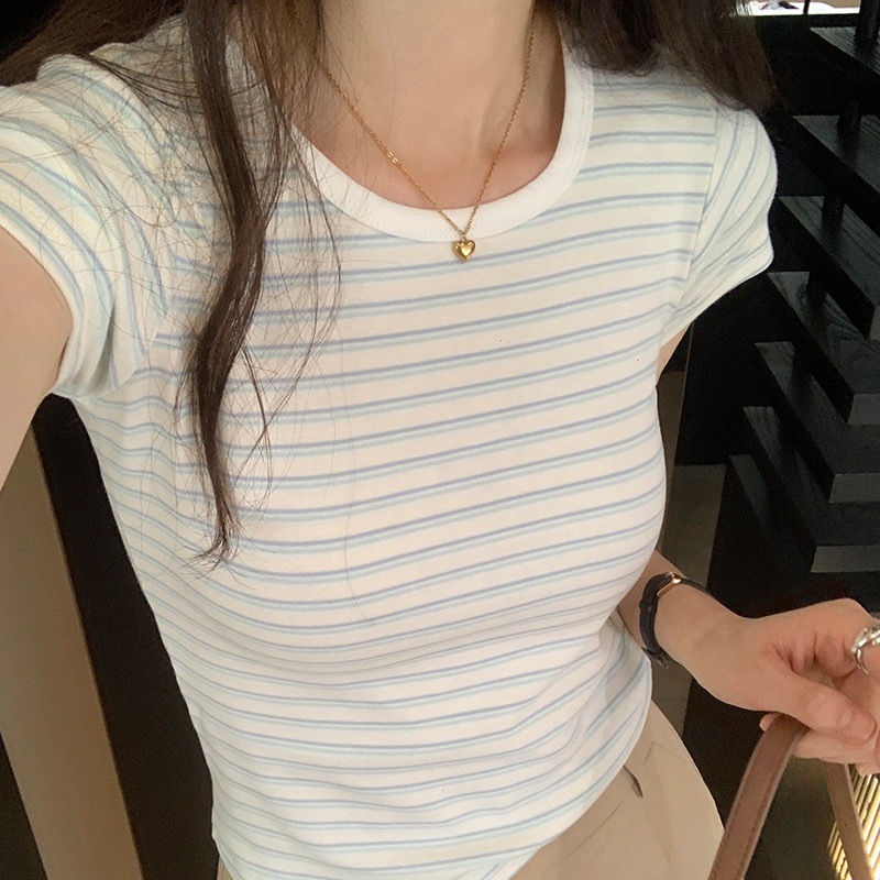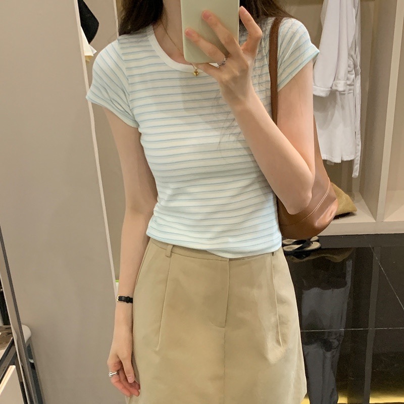 Elevate your summer wardrobe with our Korean Style Summer Short Sleeve Stripe T-Shirt for Women. Featuring a trendy round neck and a flattering fit, this versatile top embodies the college-chic aesthetic while offering age-reducing appeal. The classic stripe design ensures you stand out effortlessly, making it perfect for casual outings or laid-back days at home. Don’t miss out on this essential addition to your fashion collection add it to your cart today!