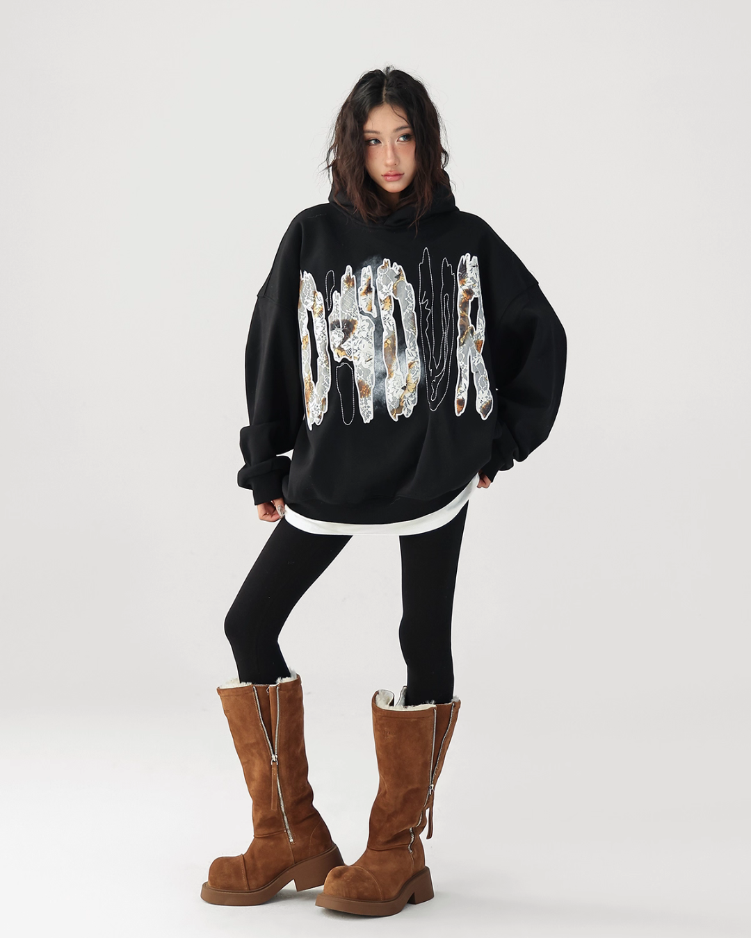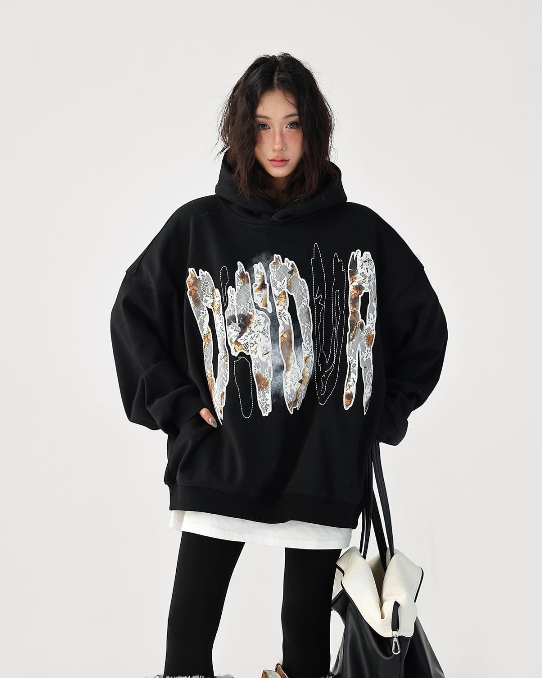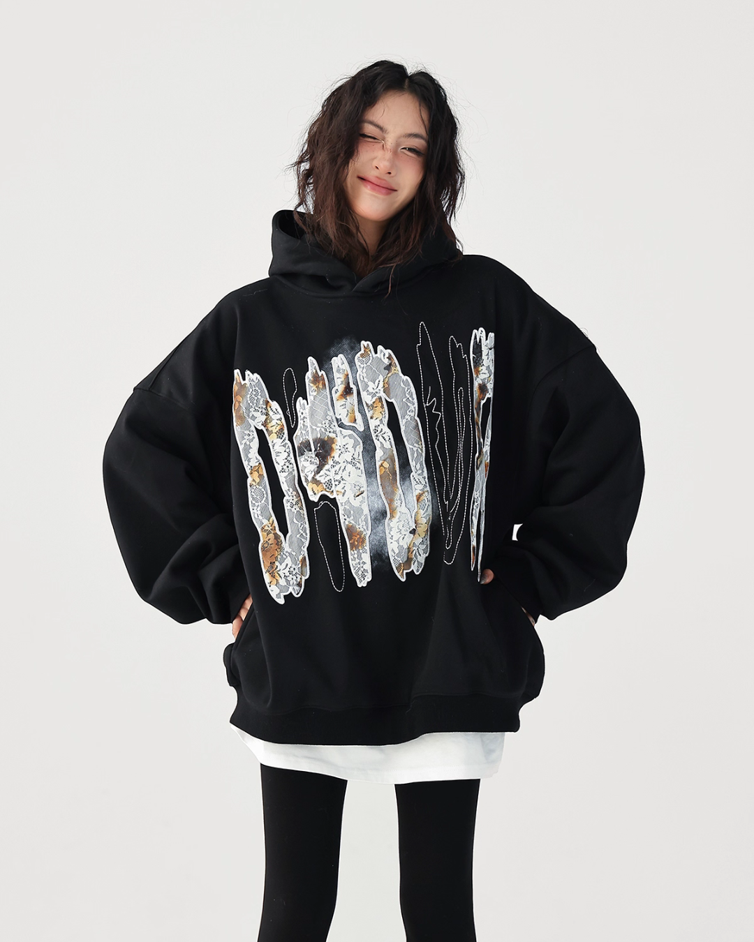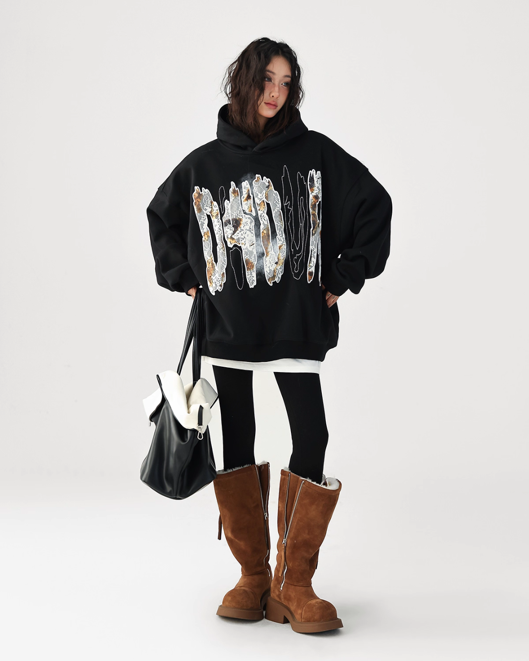 While creating a relaxed feel with an oversized fit, it subtly covers the body shape.