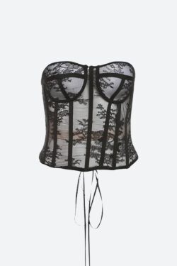 Delicate but daring. This sheer lace corset top blends elegance with edge, hugging your curves with structured boning and soft floral lace. Style it solo or layer under a blazer for that Office Siren fantasy.