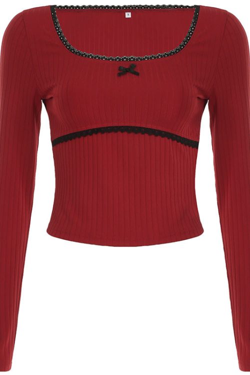 - This item: Lace Trim Round Neck Bow Coquette Long Sleeve Tee Original price was: $32.20.$22.54Current price is: $22.54.