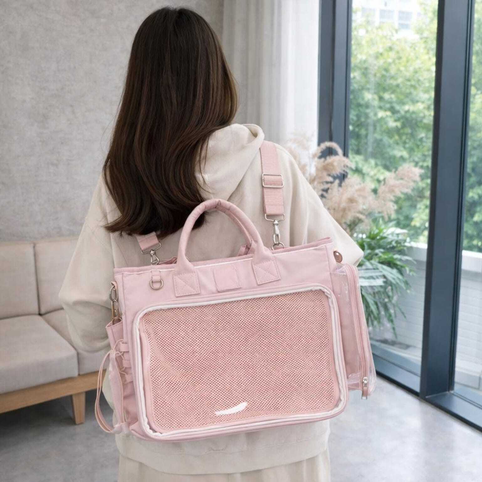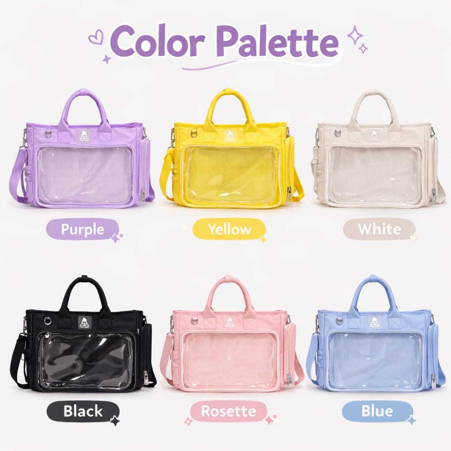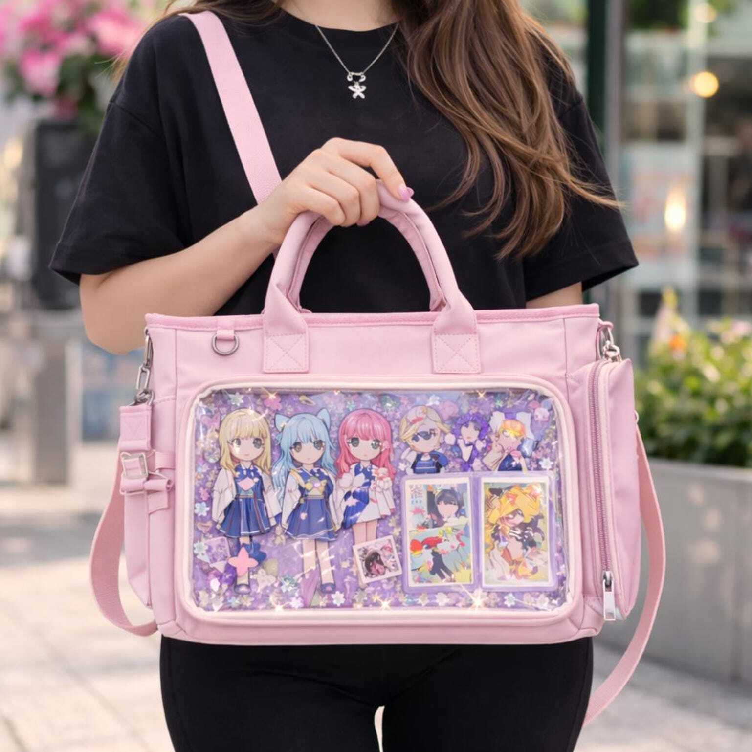 Large Black Kawaii Convertible Ita Bag with Clear Window for Photocards and Pins