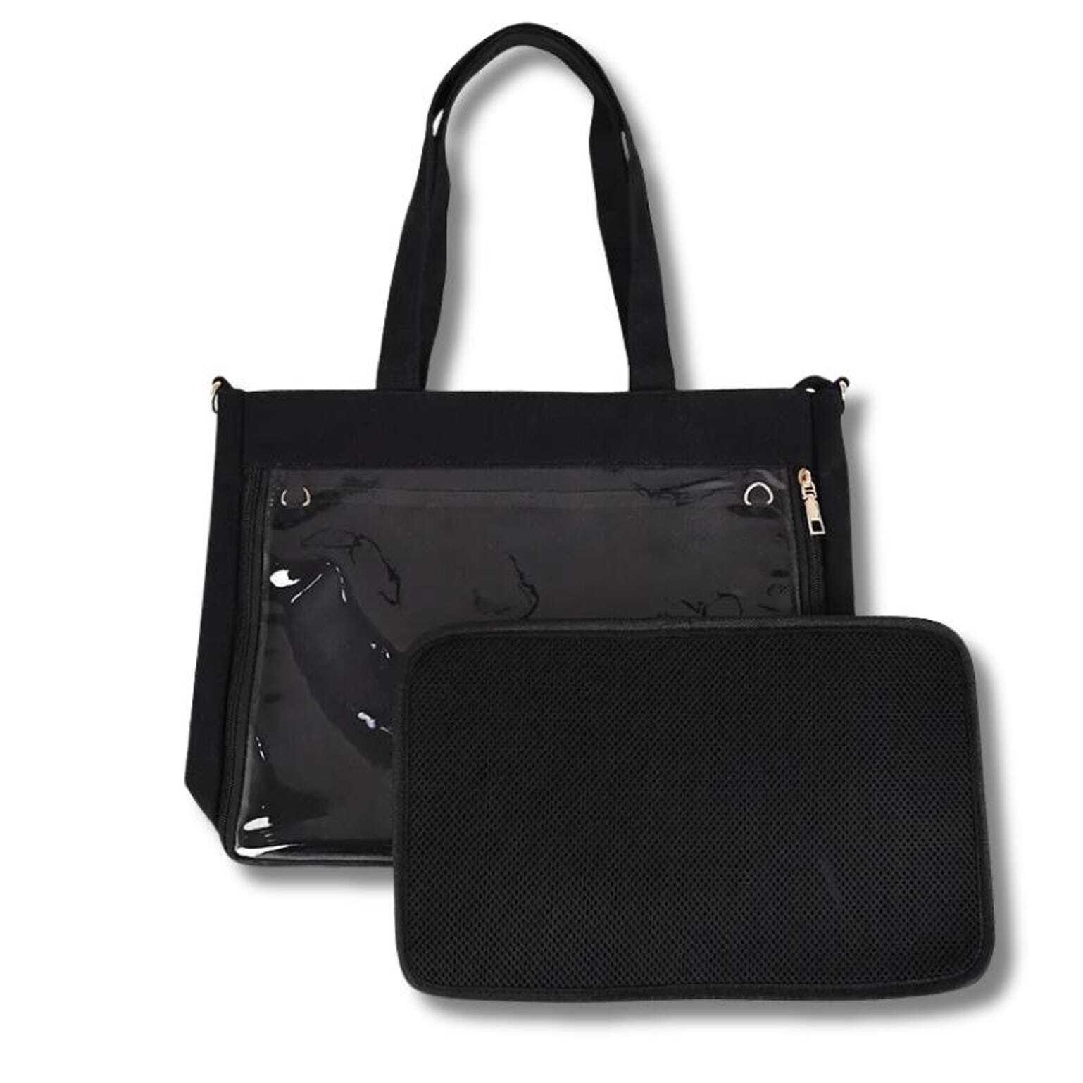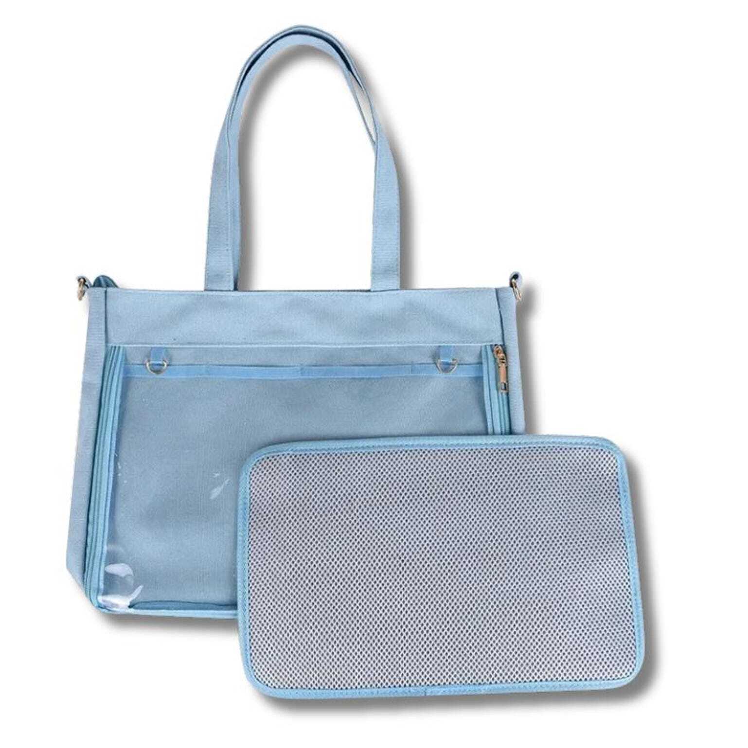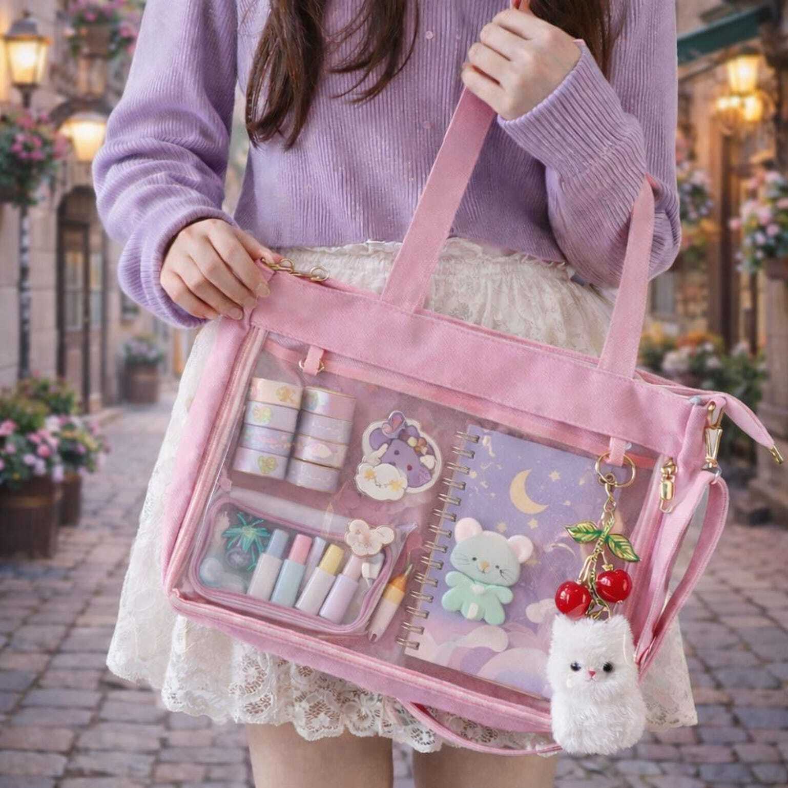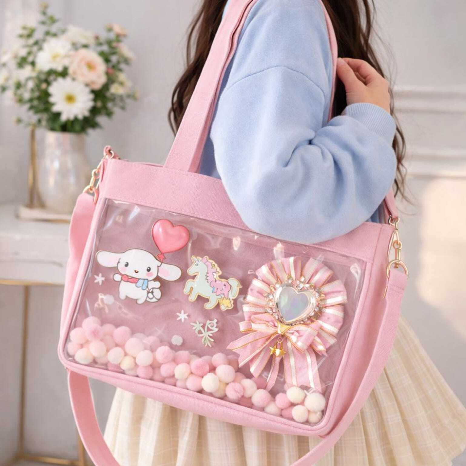 Large Convertible Ita Bag with Clear Window for Pin Display combines everyday carry with a clear display area for pins, badges, charms, or character merch.