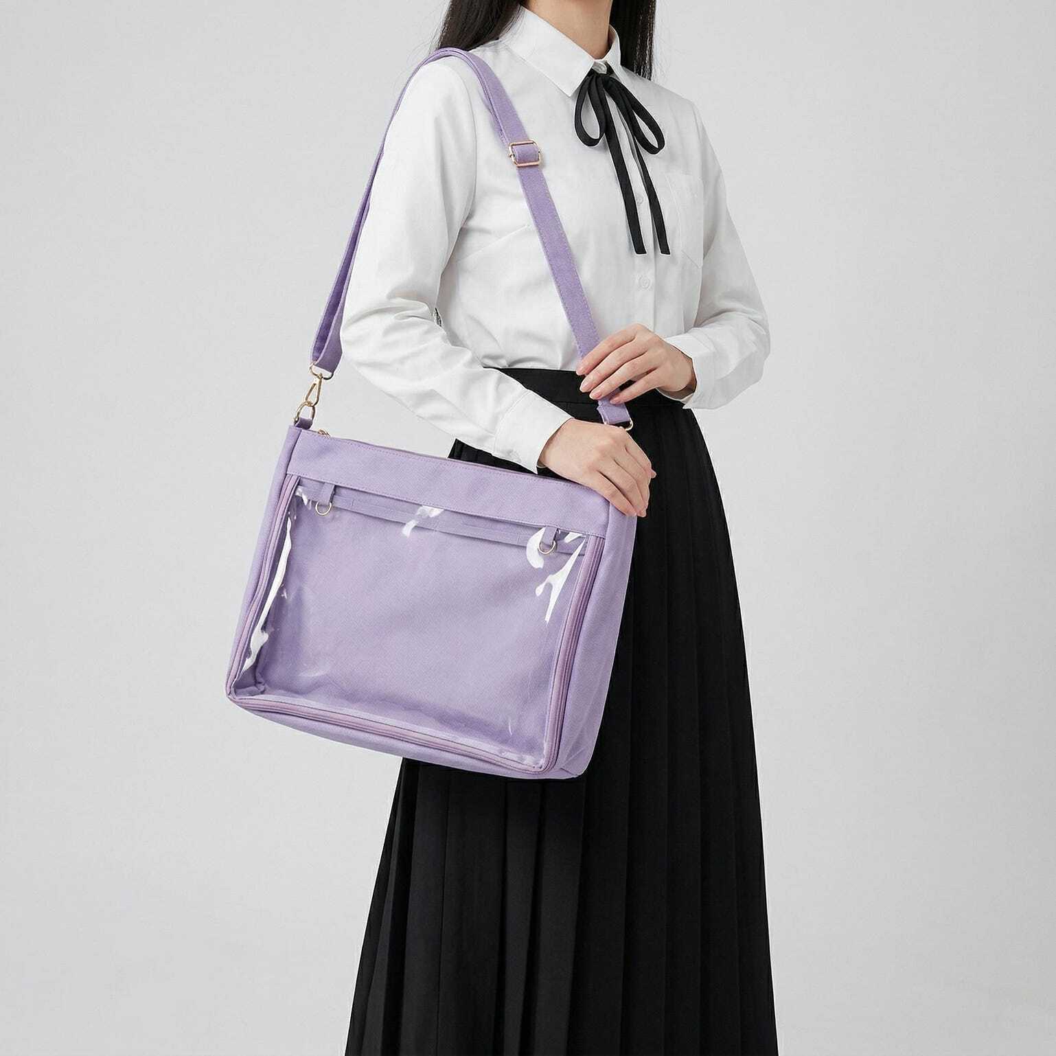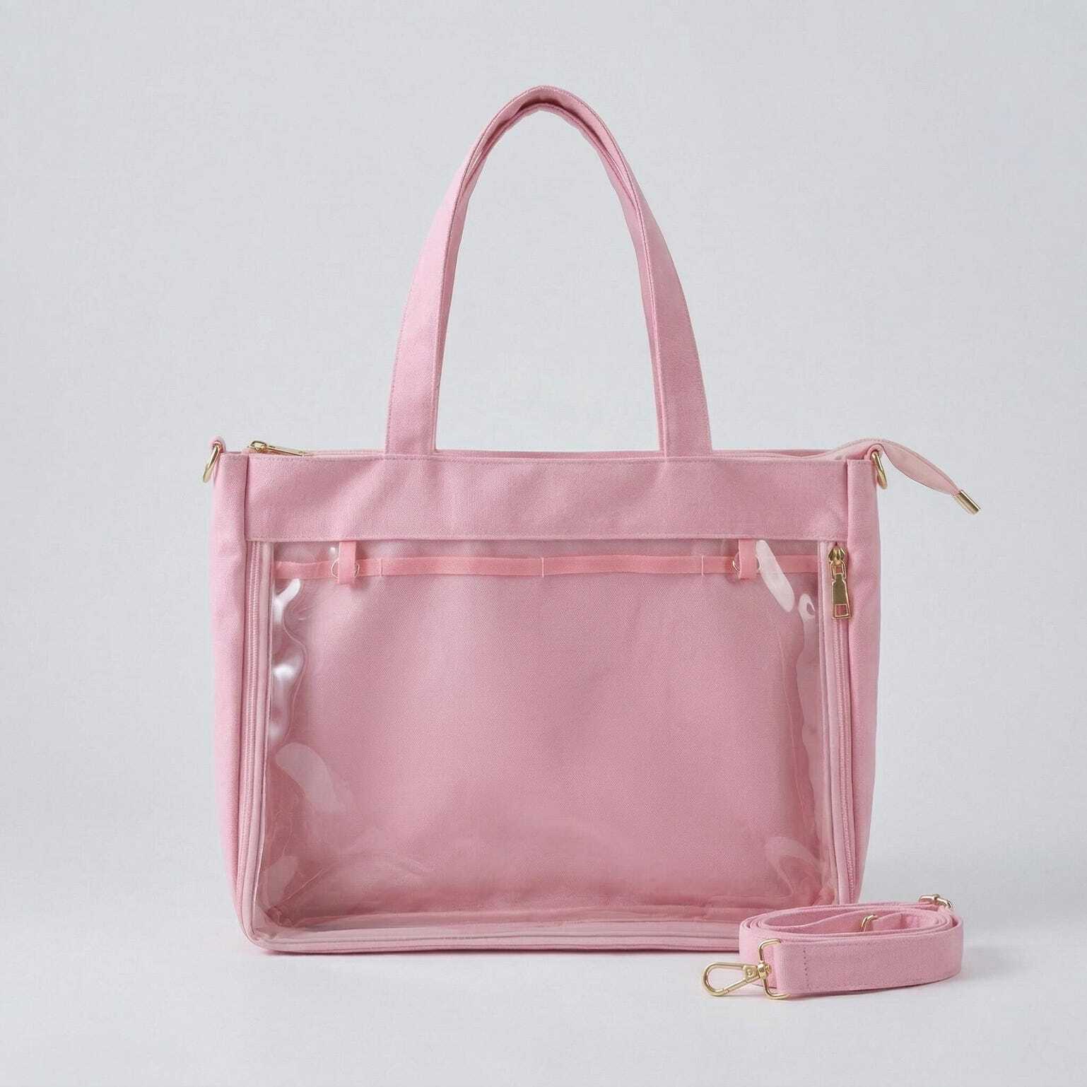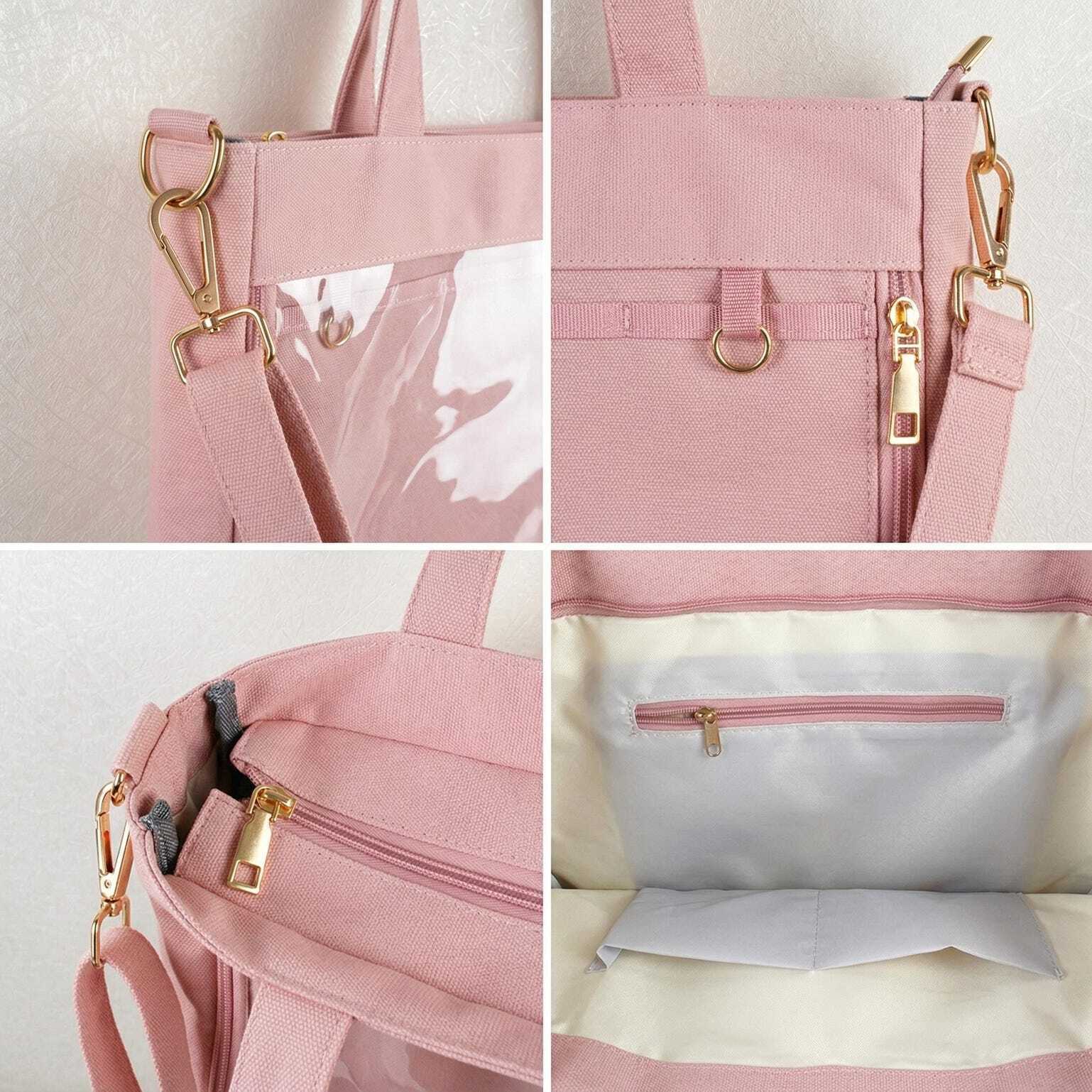 Large Kawaii Y2K Ita Tote Bag with Clear Window for Pin Display