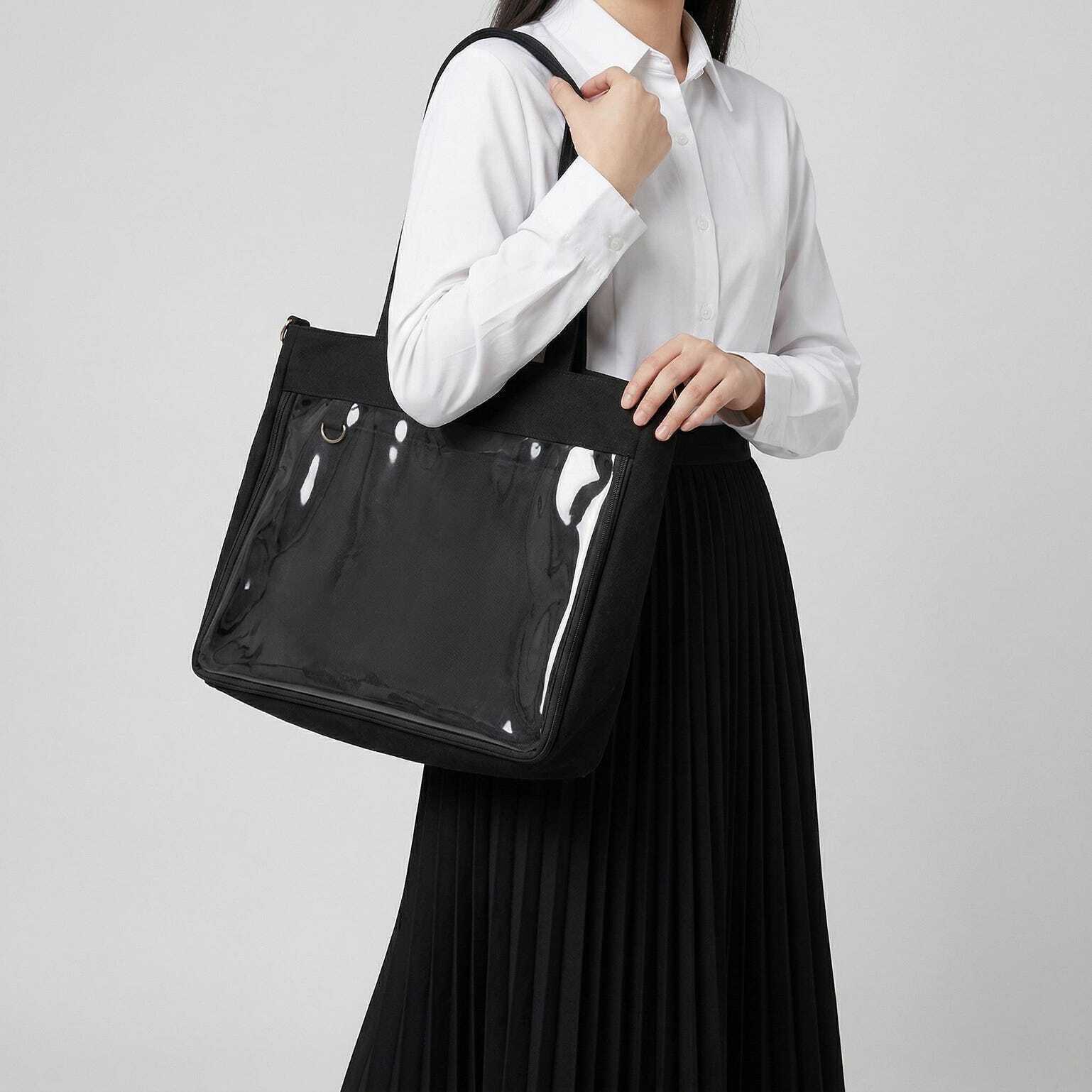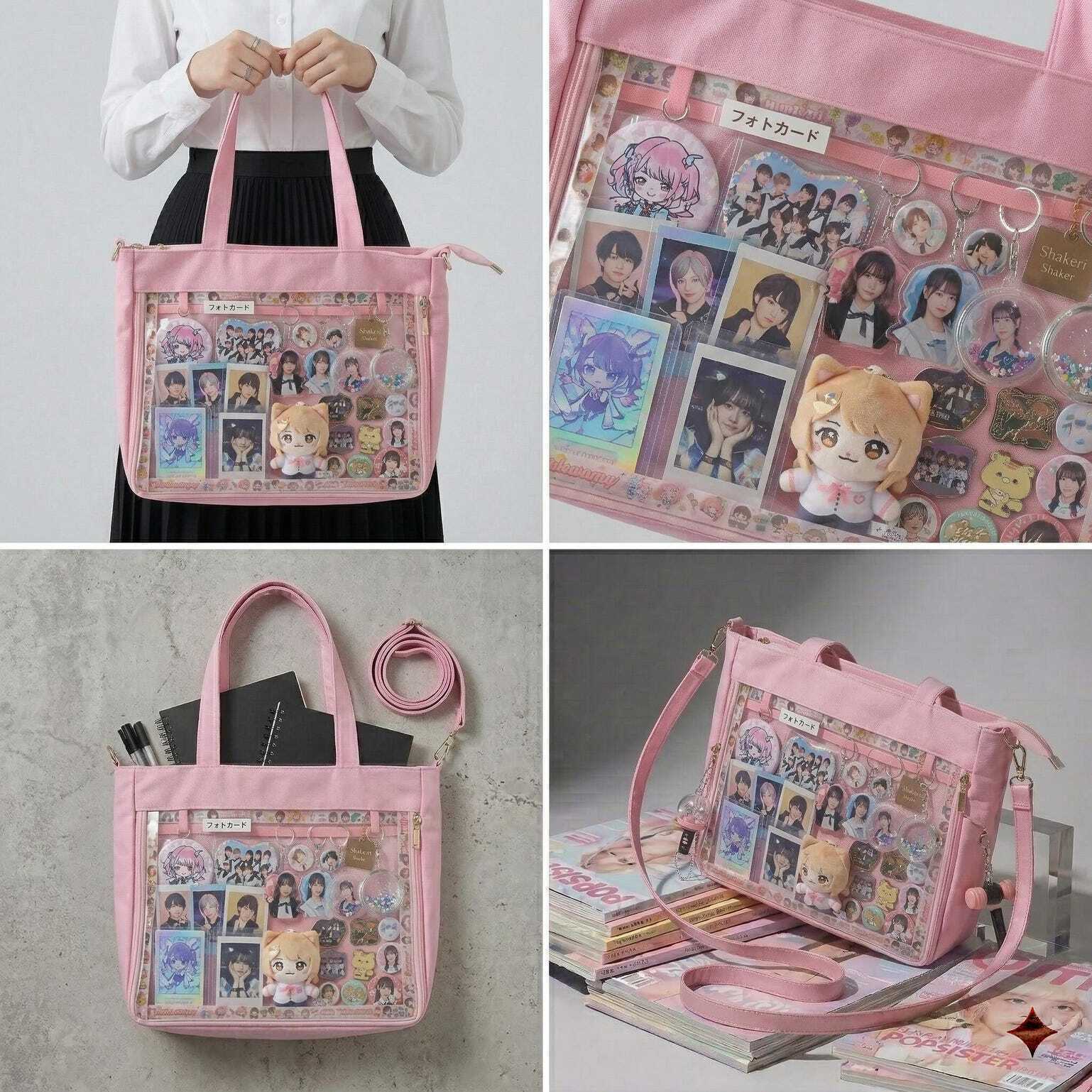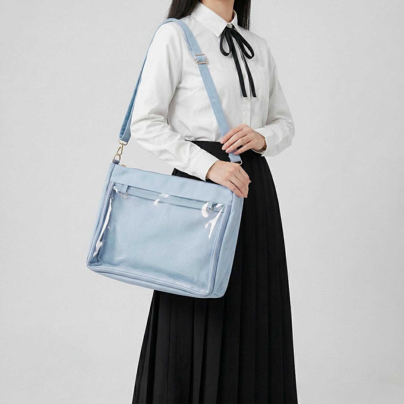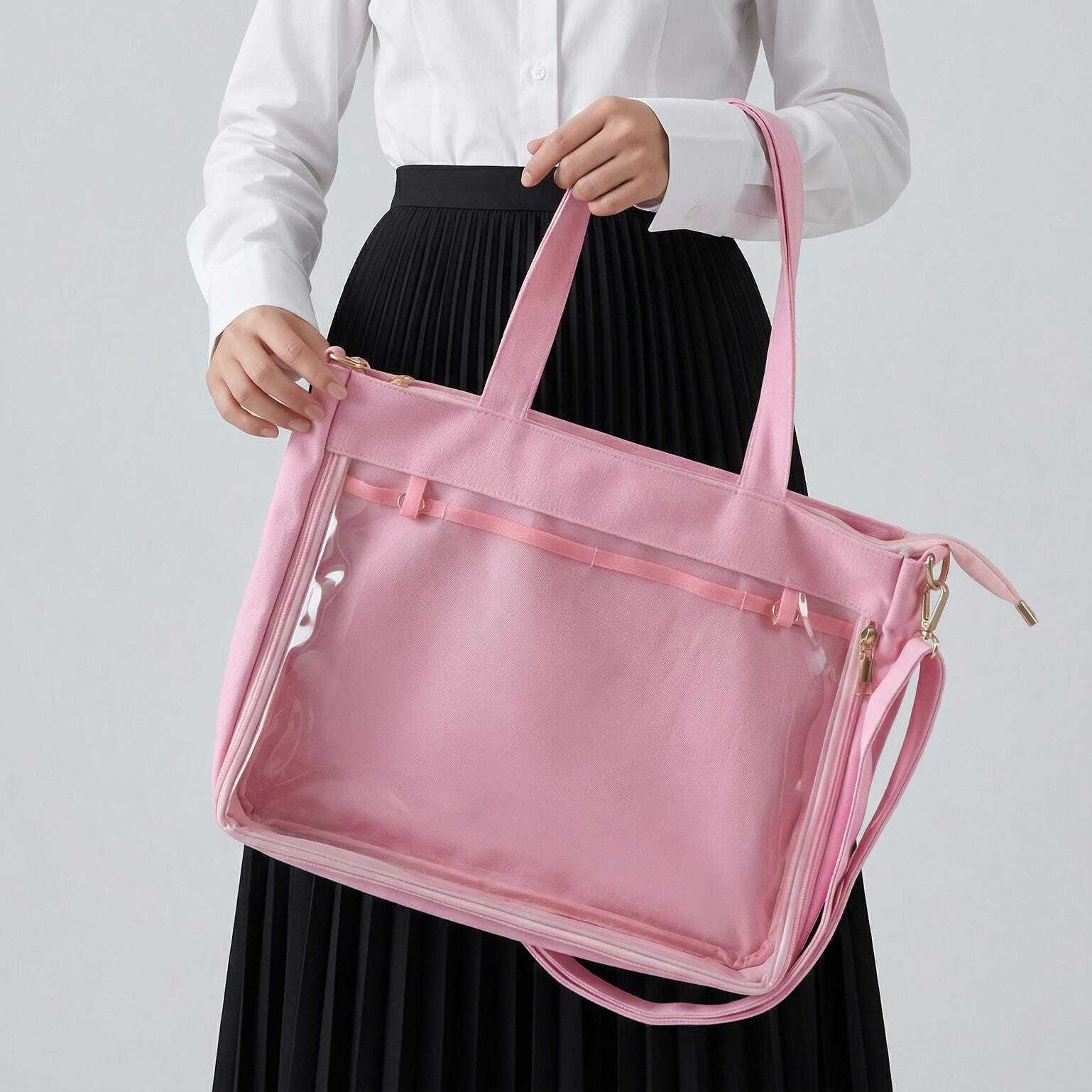 Large Kawaii Y2K Ita Tote Bag with Clear Window for Pin Display