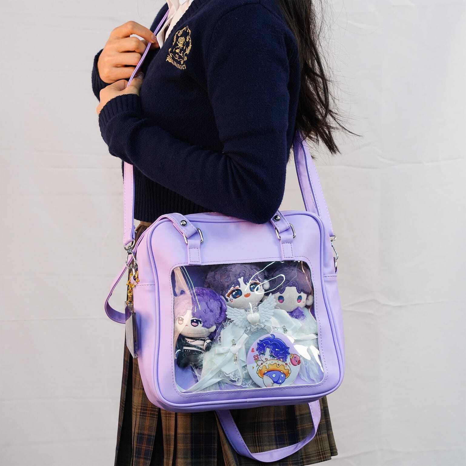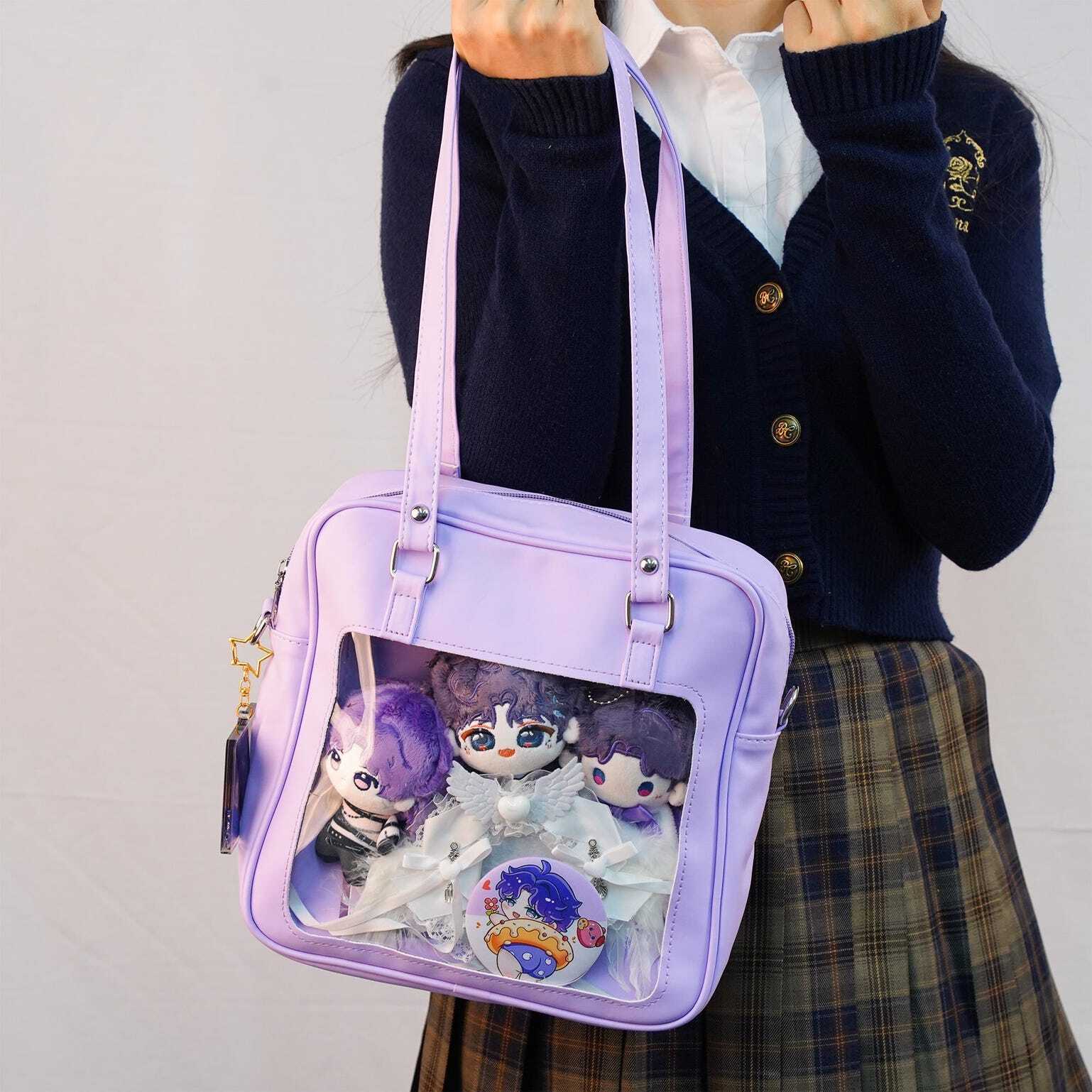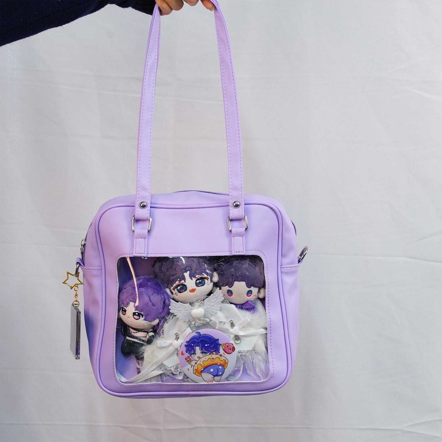 Embrace the cute kawaii vibe with this compact, glossy ita bag-available in Blue, Lilac, and Pink! Perfect for showing off your favorite pins, charms, or small merch while staying stylish.
