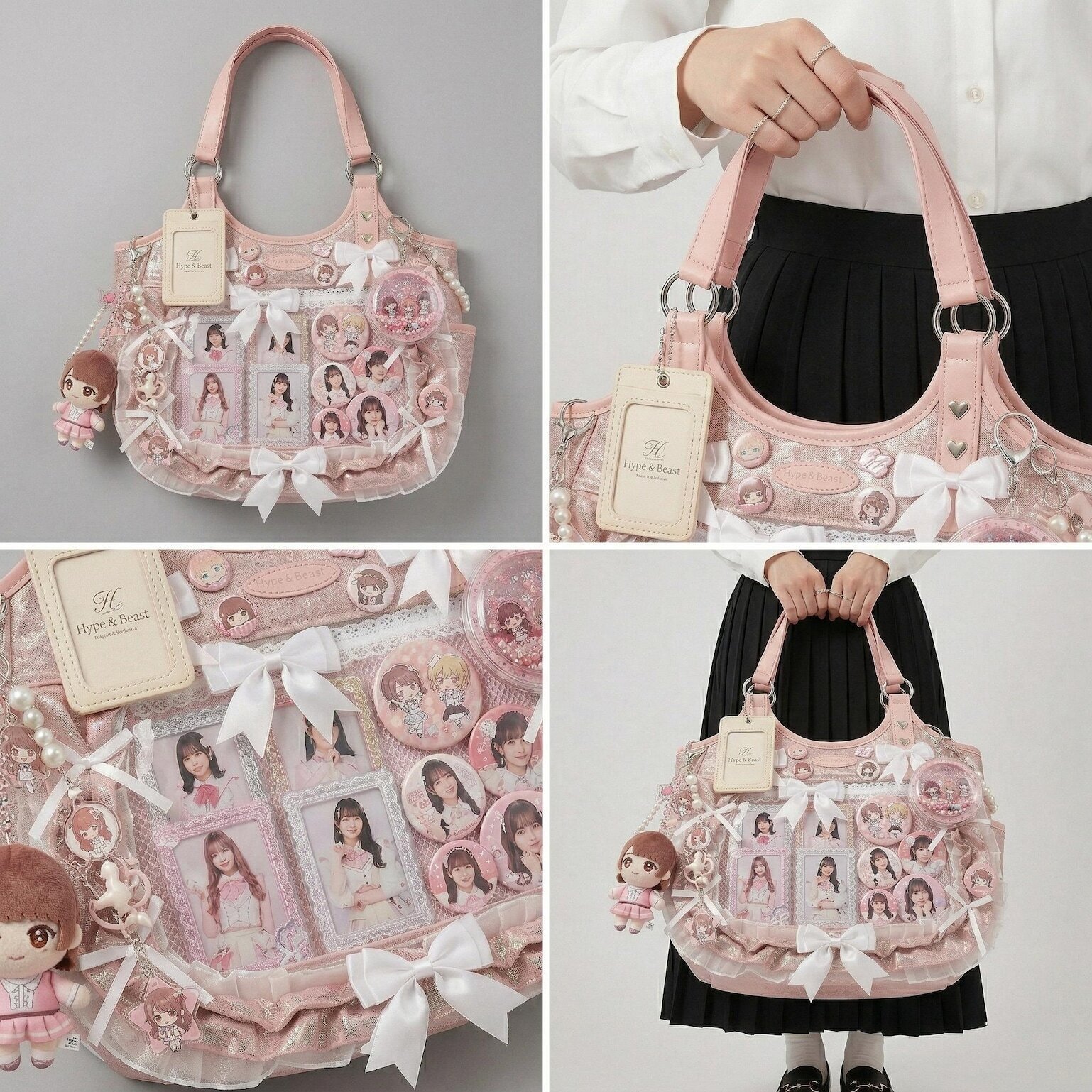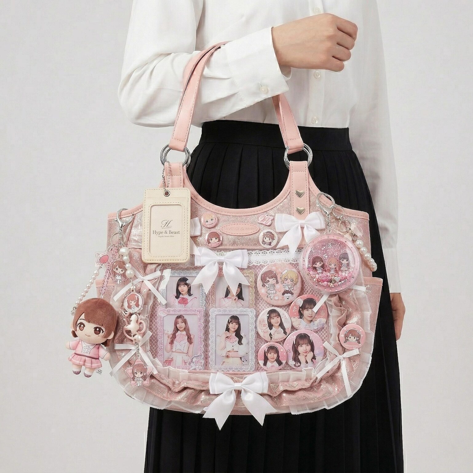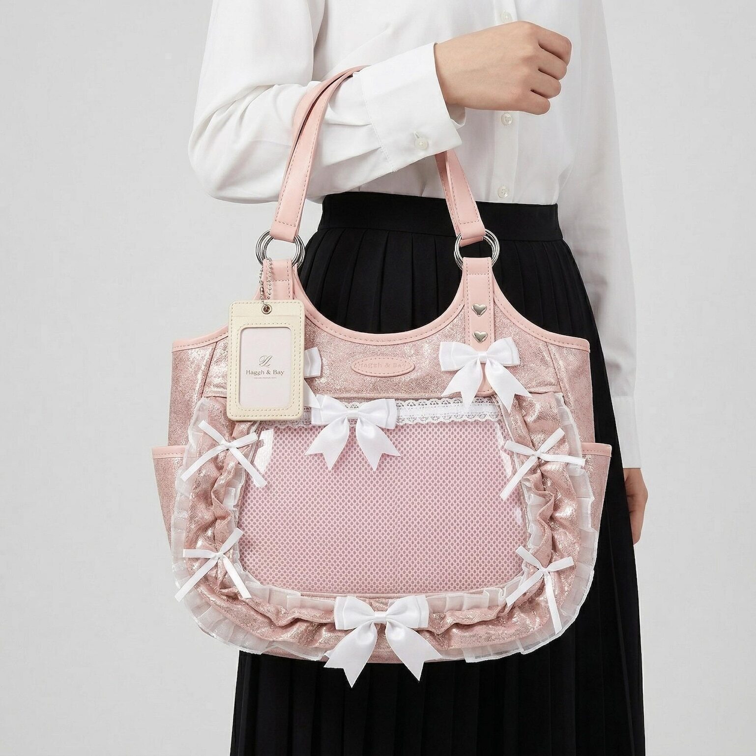 Large Pink Kawaii Y2K Ita Backpack with Clear Window for Plushies and Pins