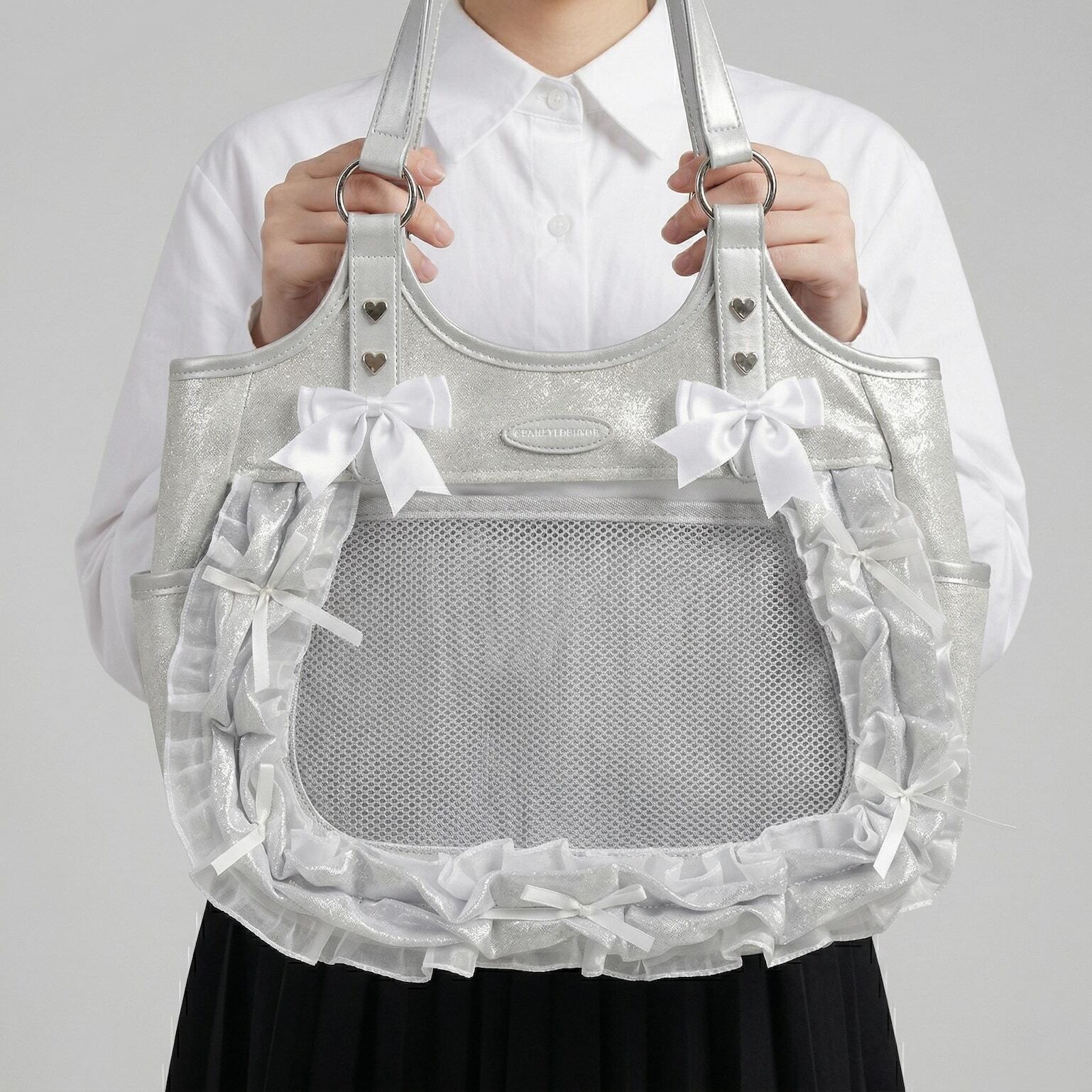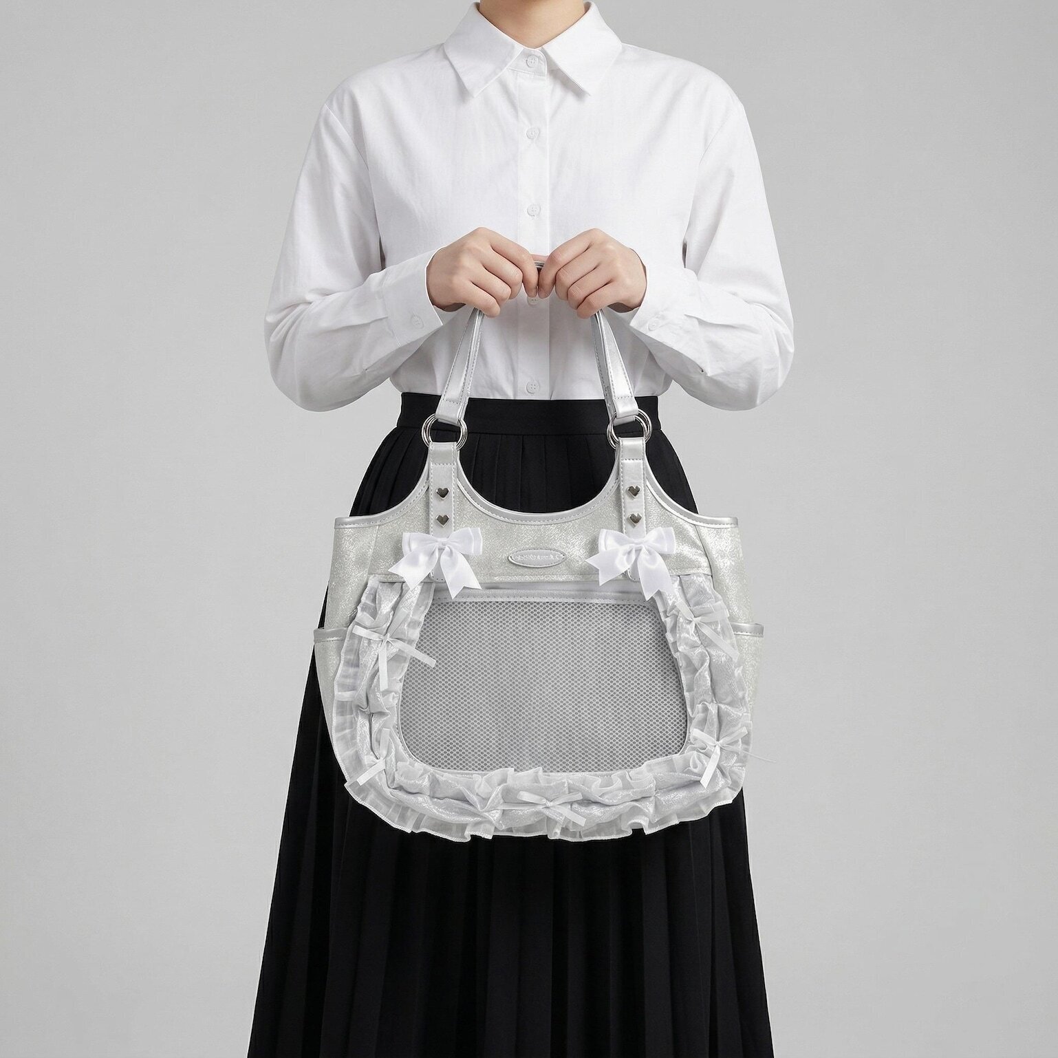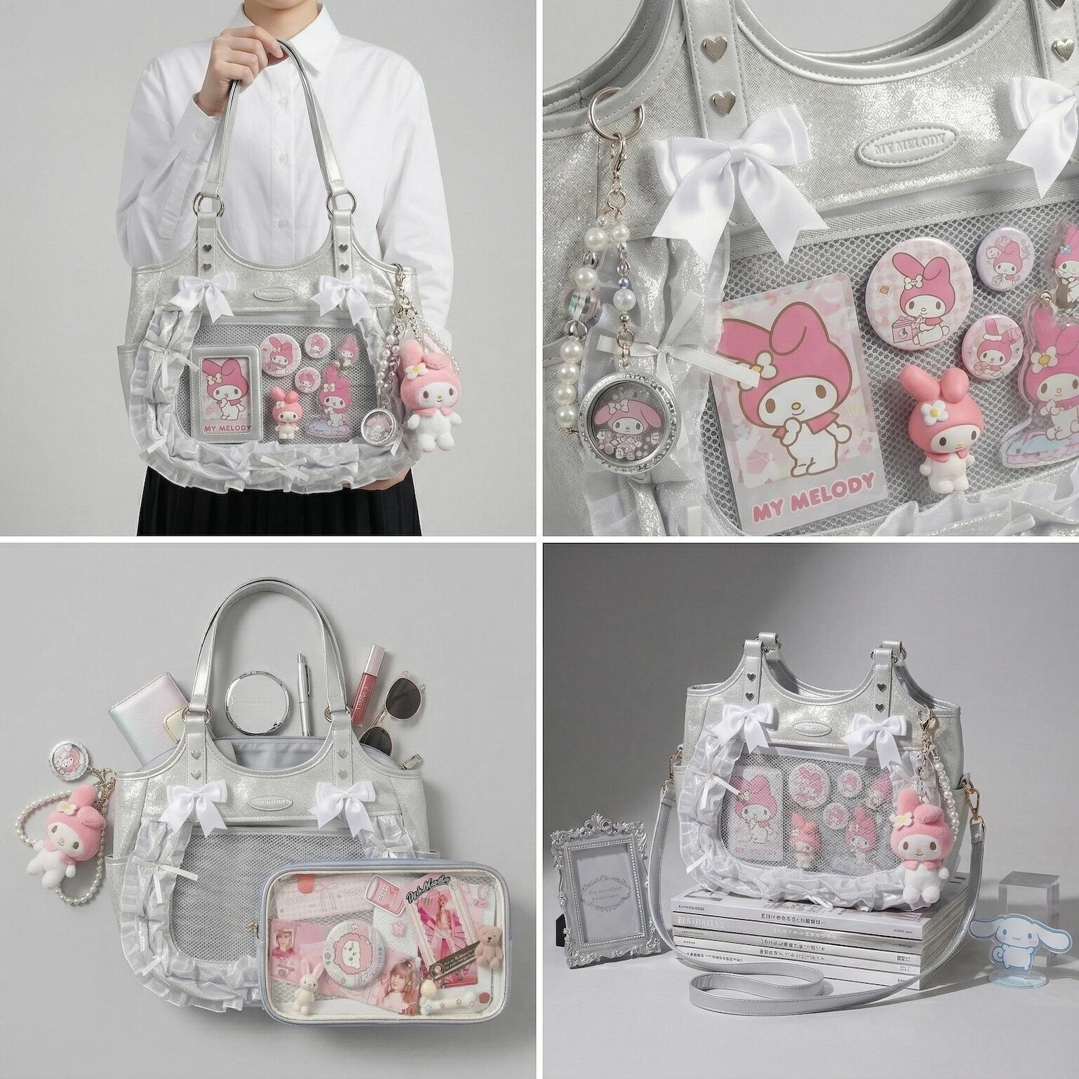Large Pink Kawaii Y2K Ita Backpack with Clear Window for Plushies and Pins
