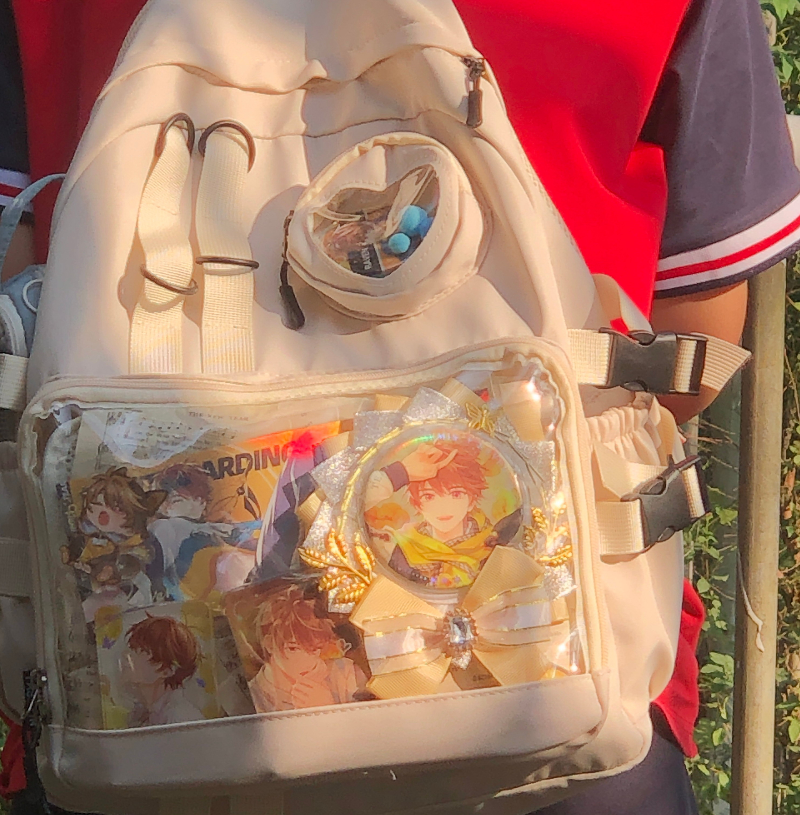 - Decorate the clear window of the ITA backpack with your own personal style by displaying pins, badges, or even photos. Create a unique and one-of-a-kind ita bag that will stand out from the rest. The cute design and lovely color will add an adorable touch to your bag, making it truly yours.