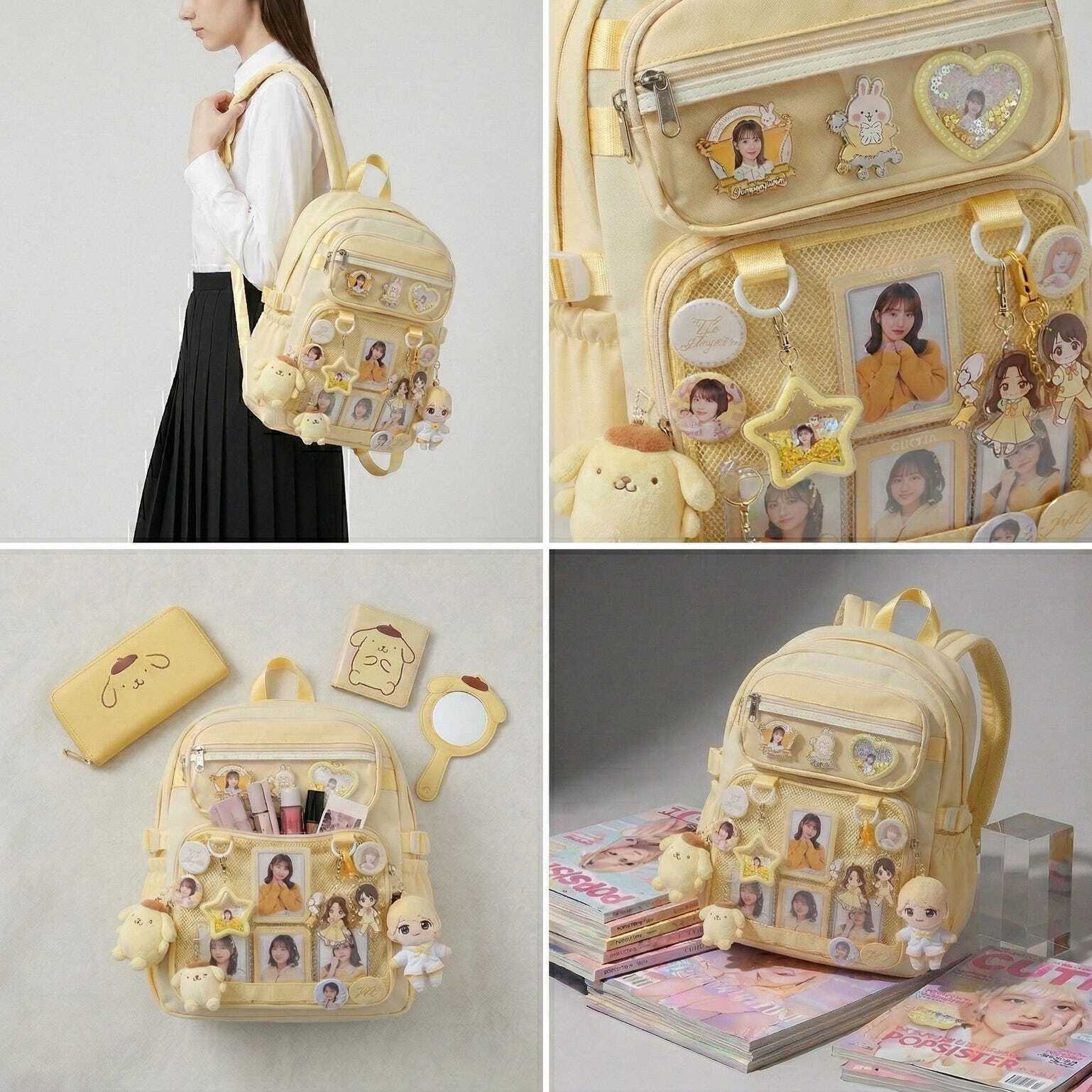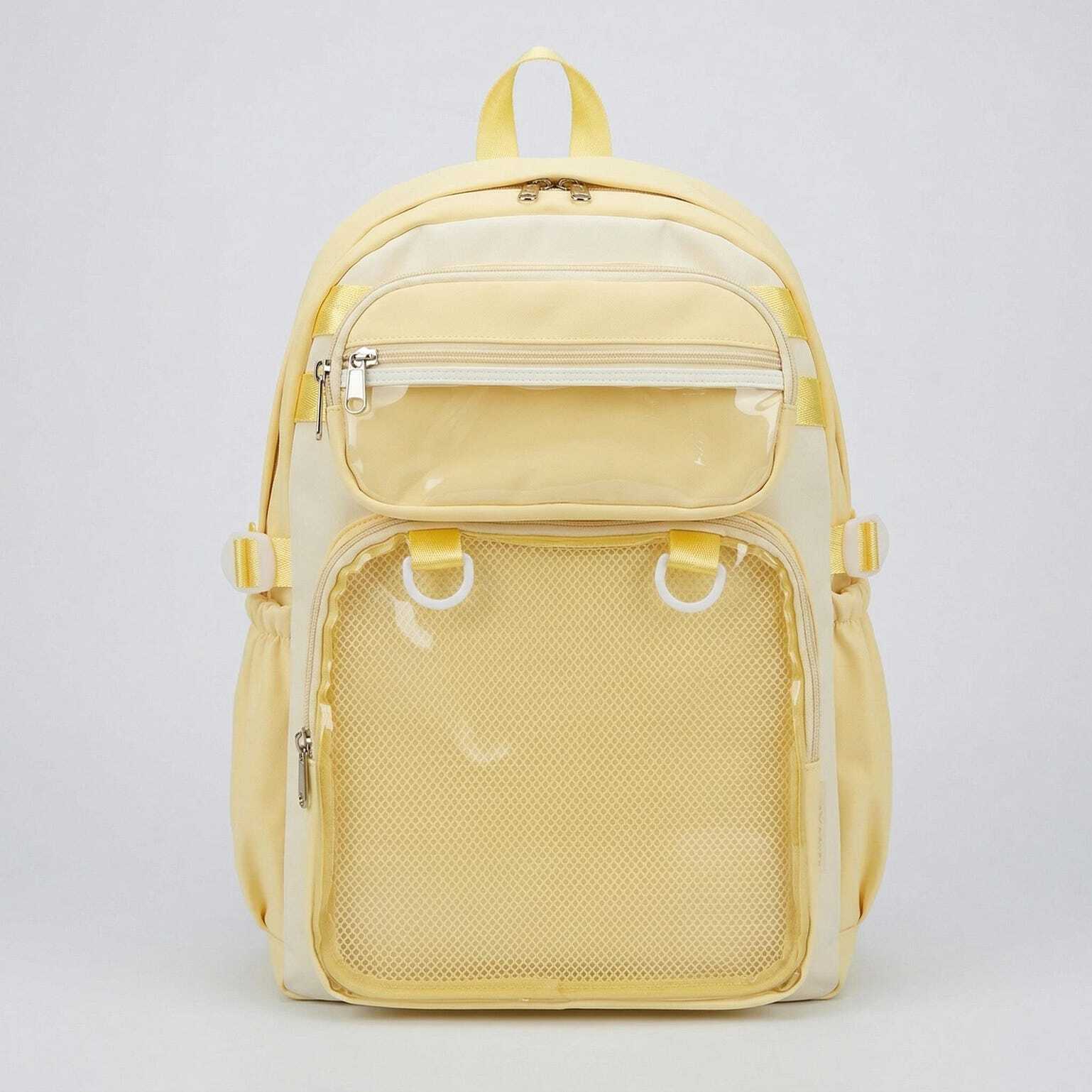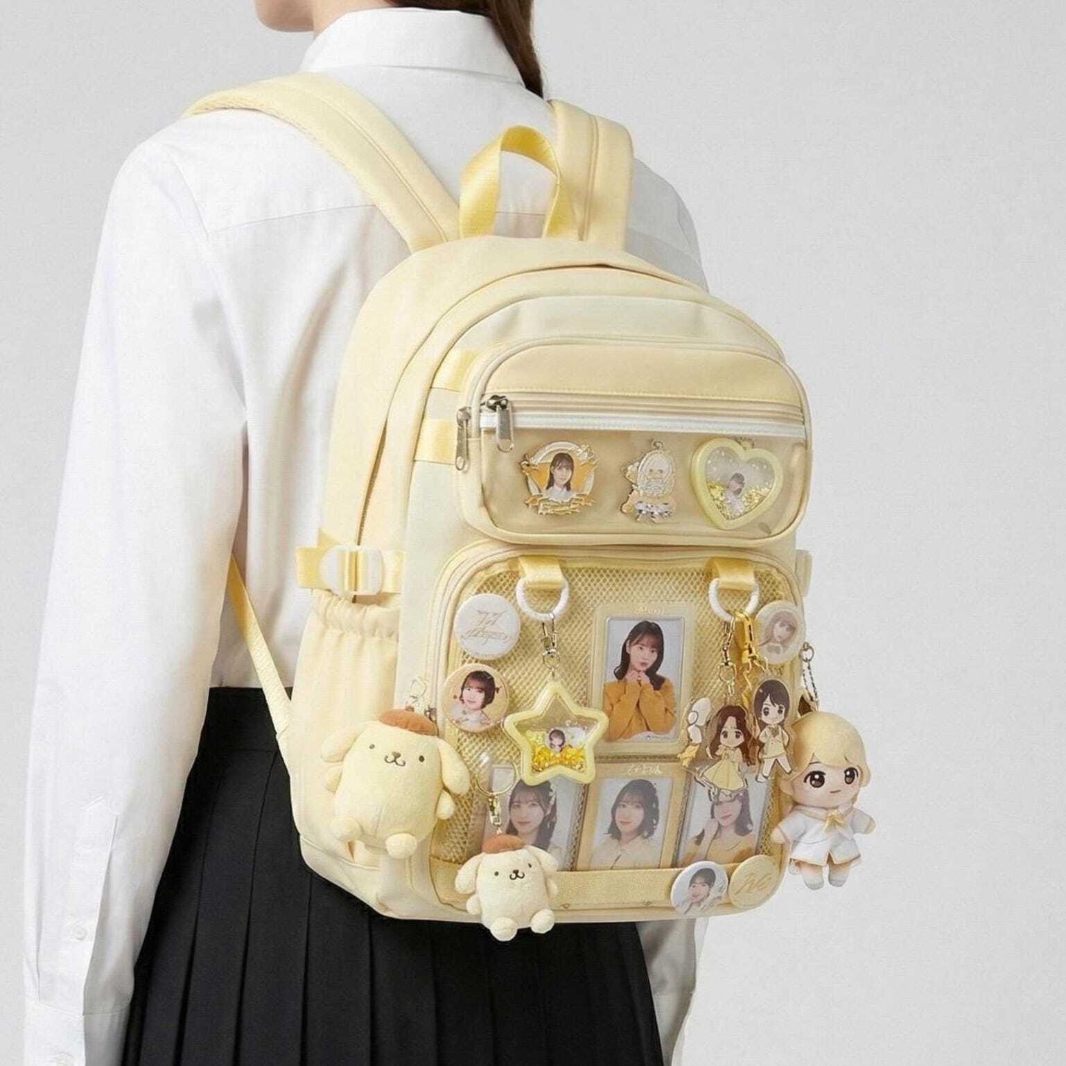 Large Yellow Kawaii Y2K Ita Backpack with Clear Window for Photocards and Pins