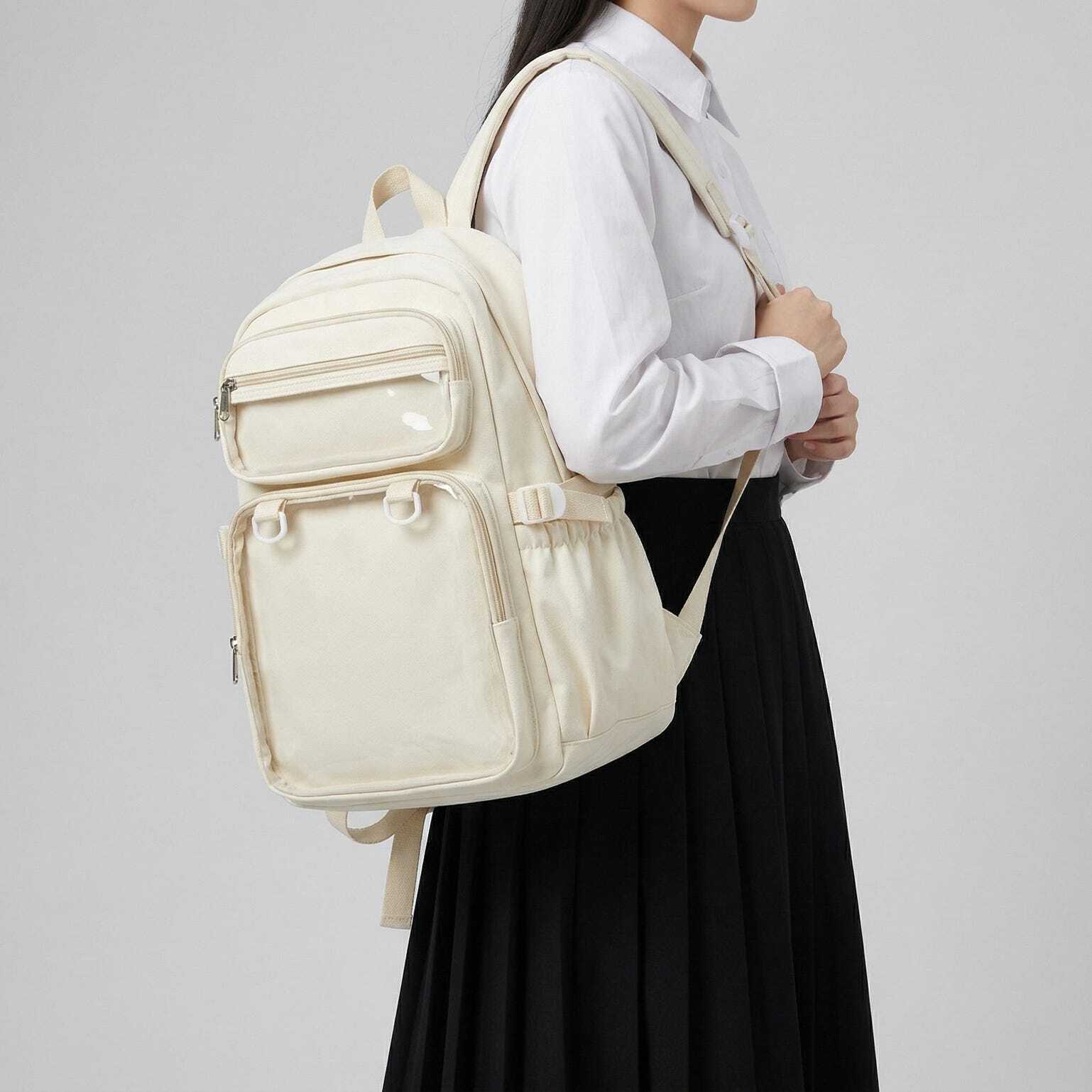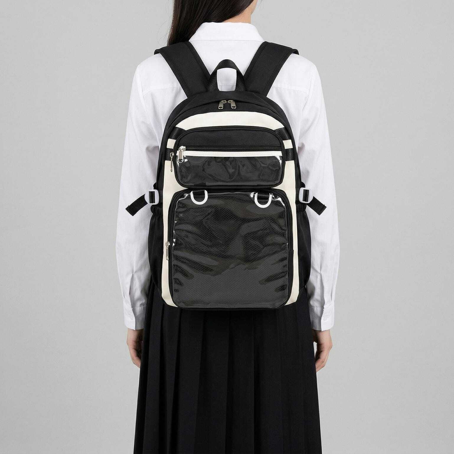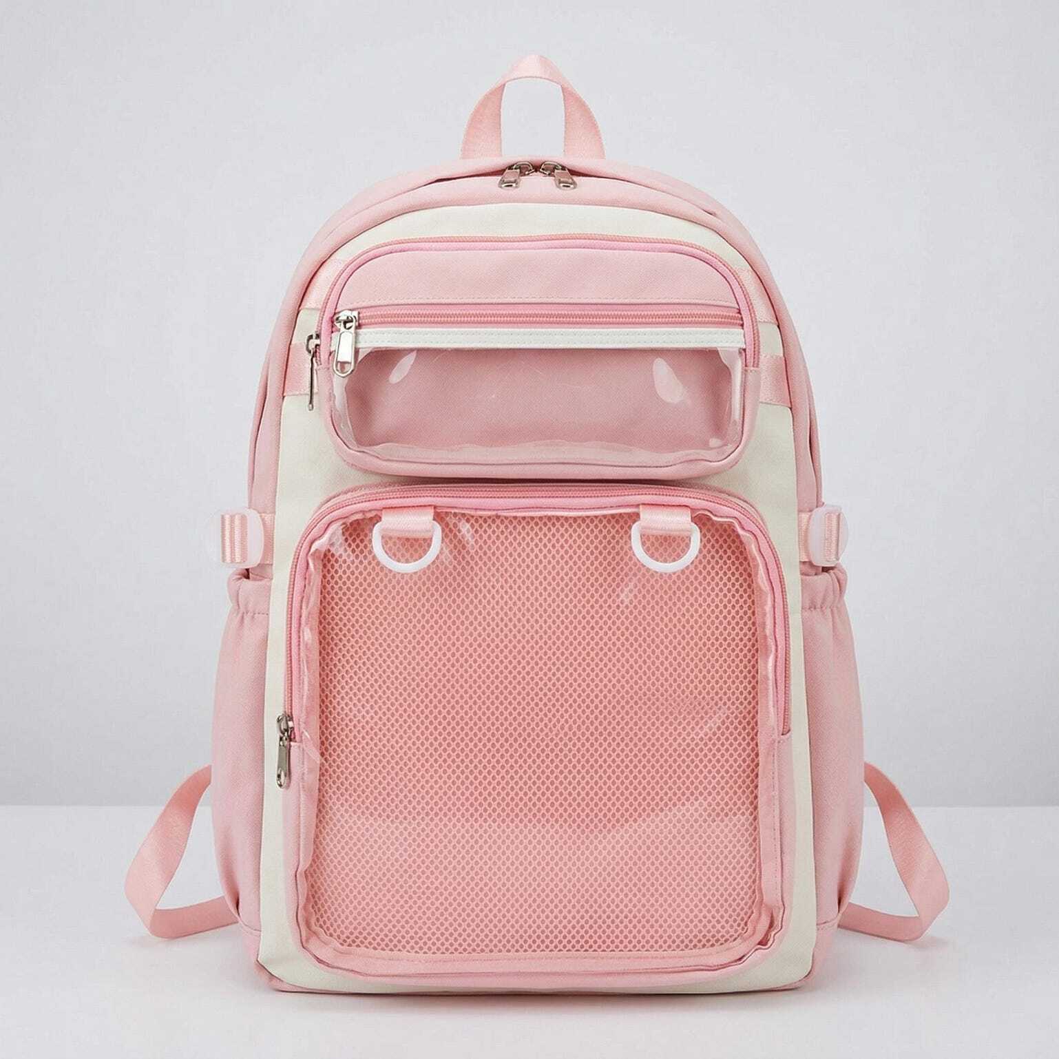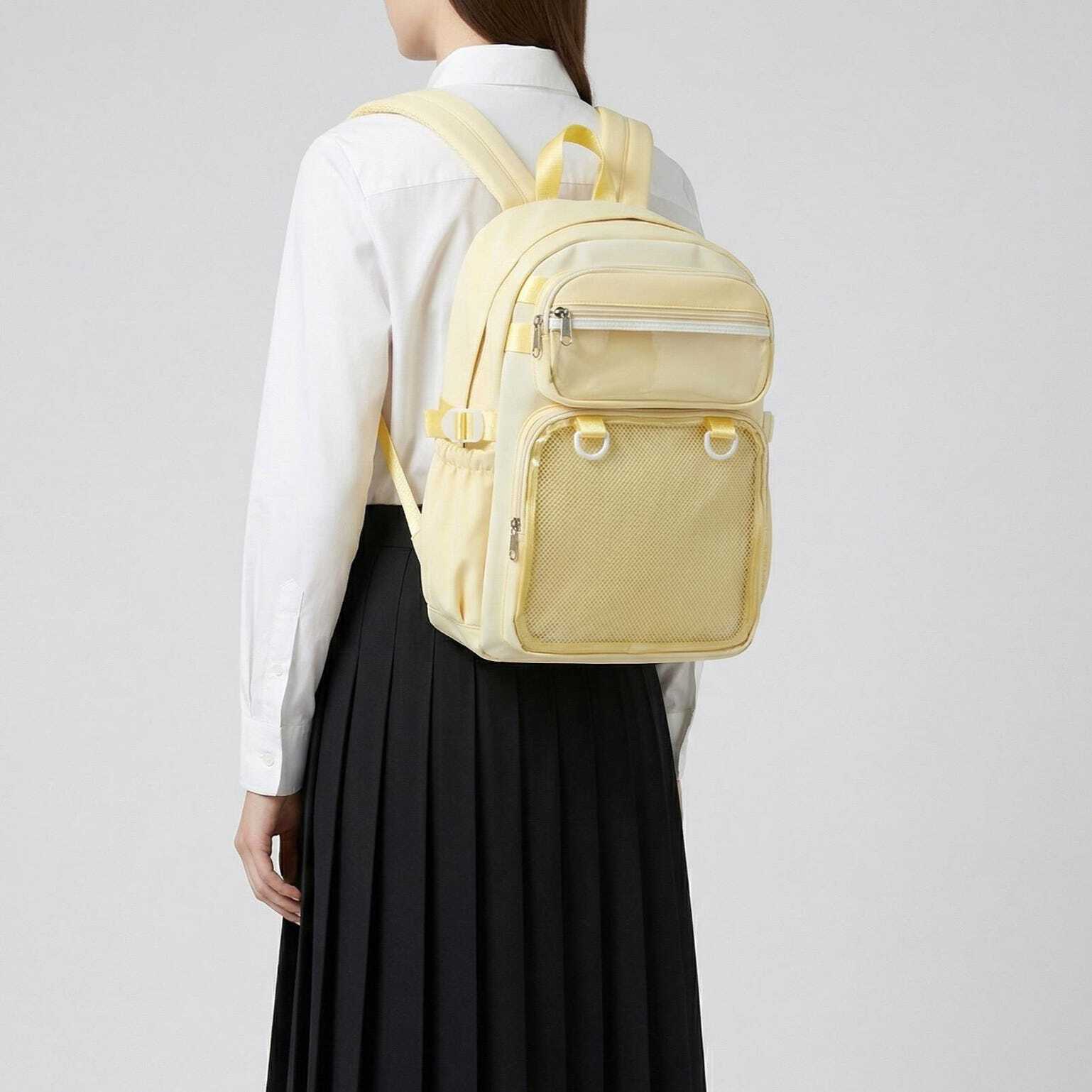 Large Yellow Kawaii Y2K Ita Backpack with Clear Window for Photocards and Pins