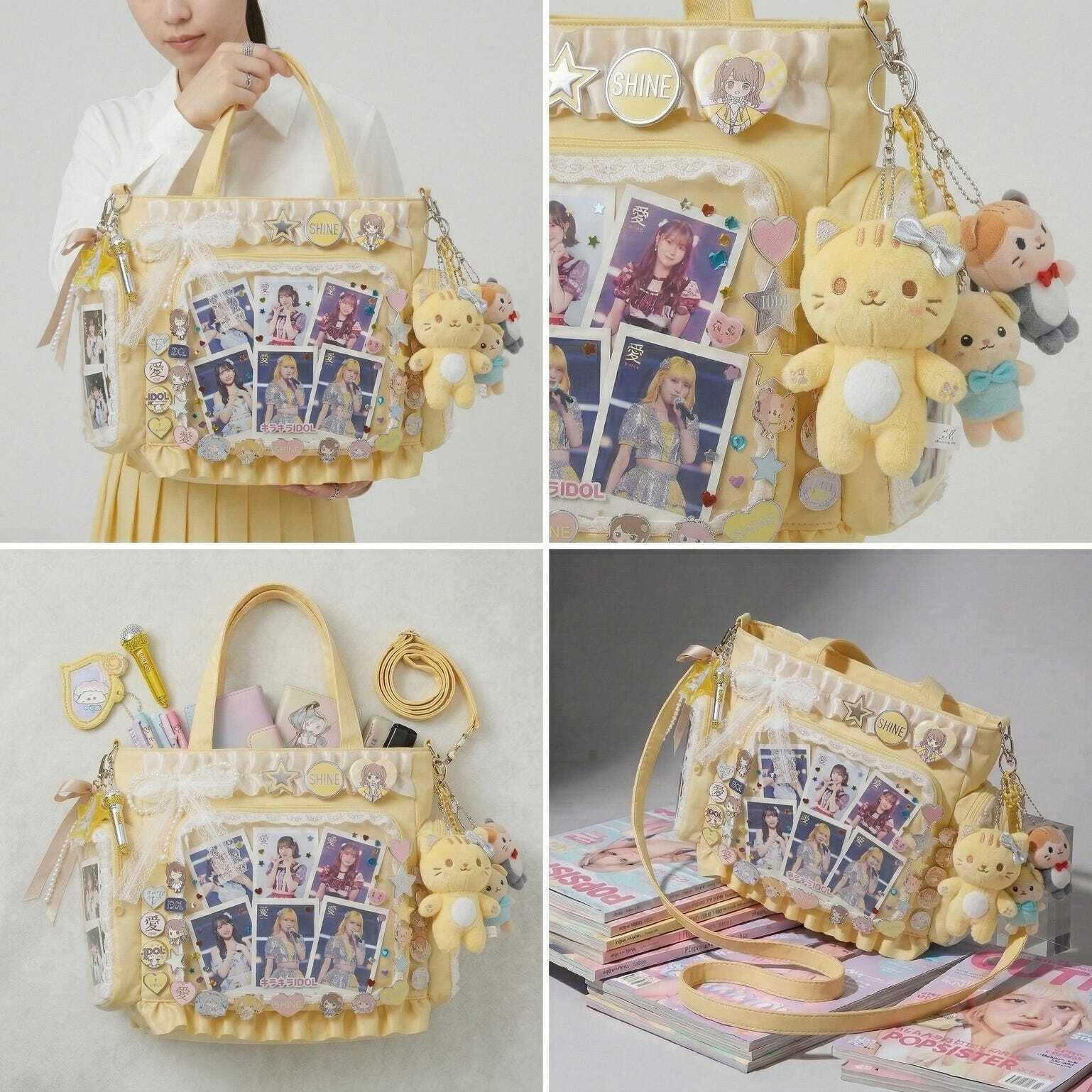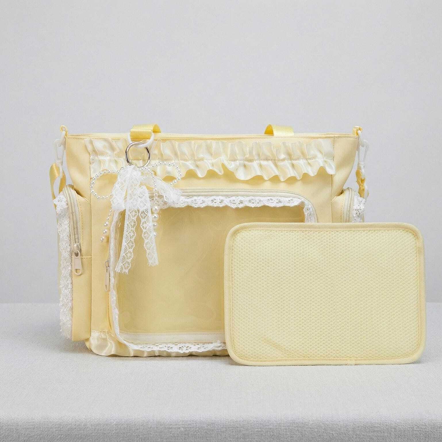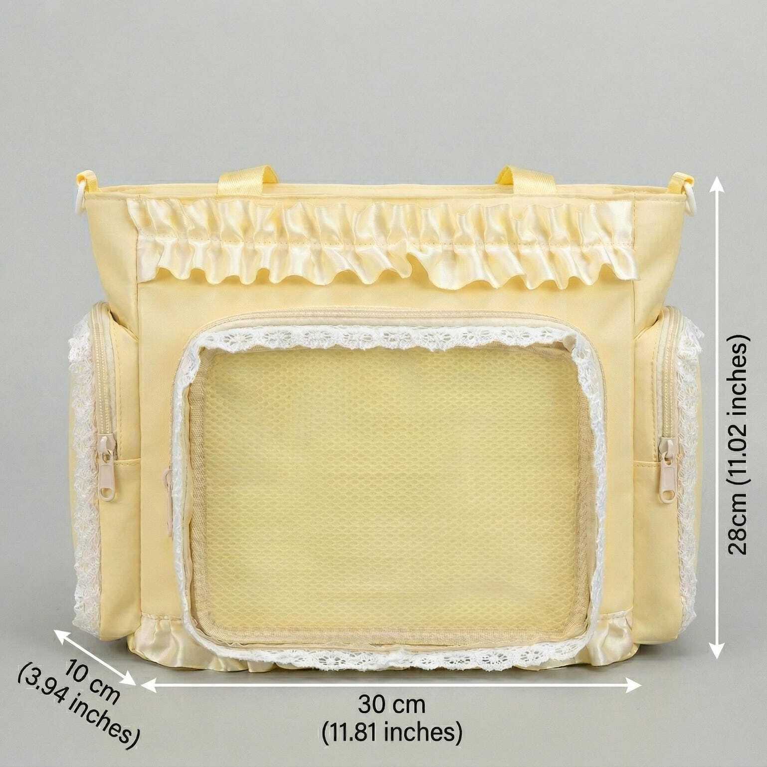 Large Yellow Kawaii Y2K Ita Backpack with Clear Window for Pin Display