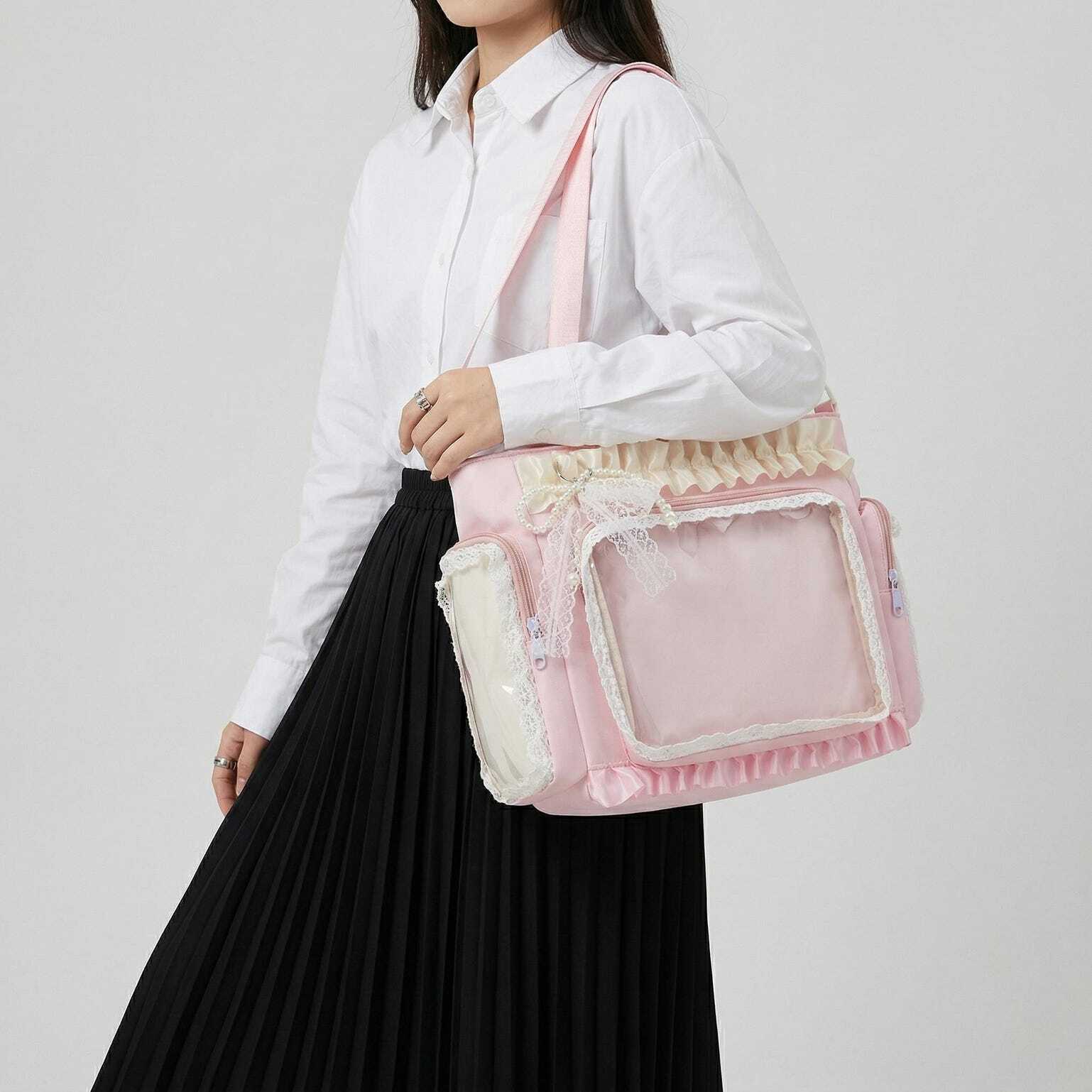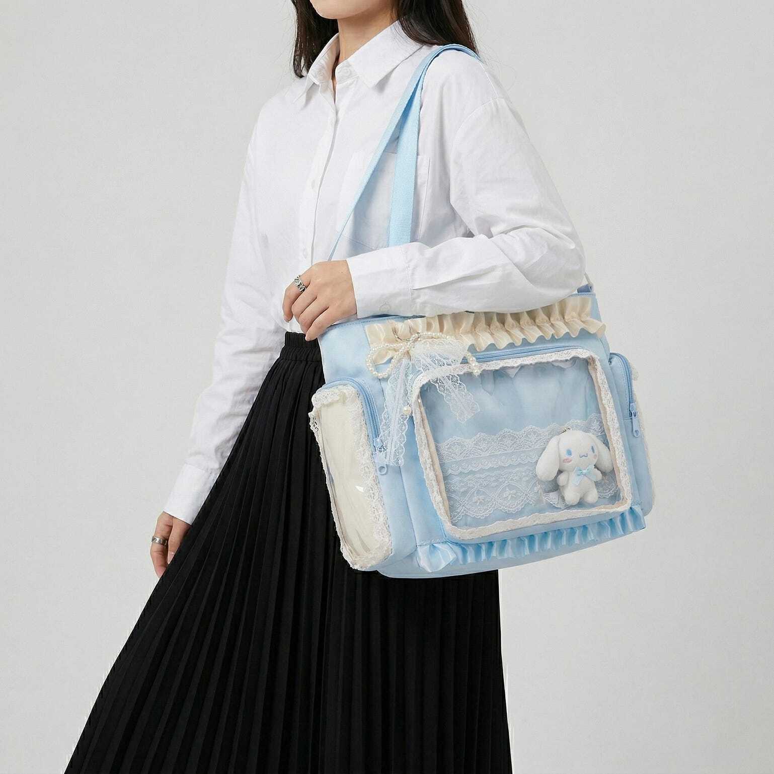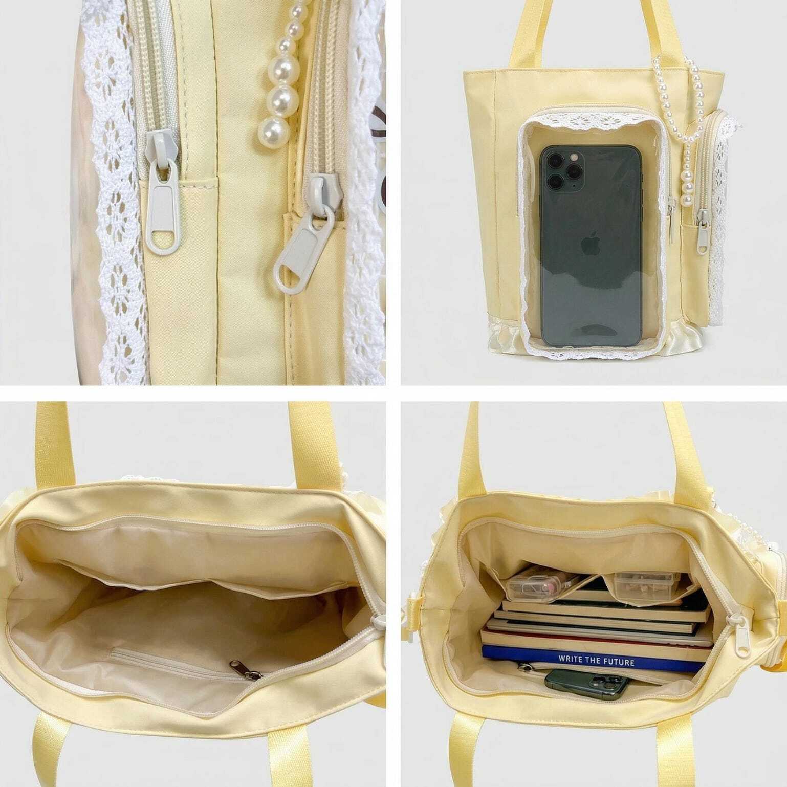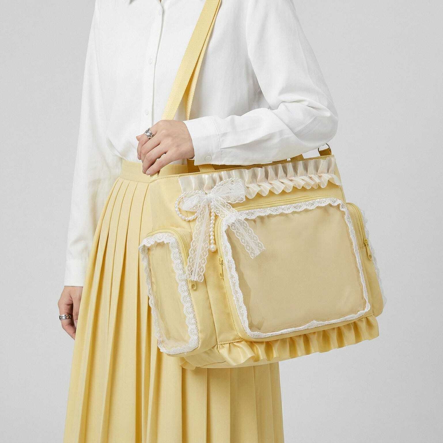 Large Yellow Kawaii Y2K Ita Backpack with Clear Window for Pin Display
