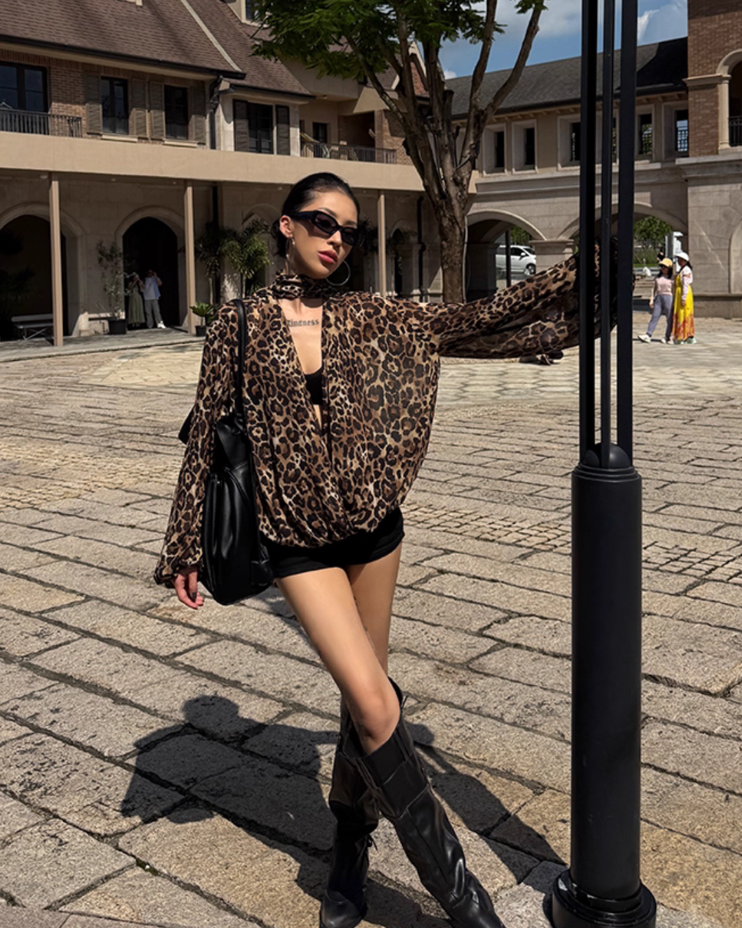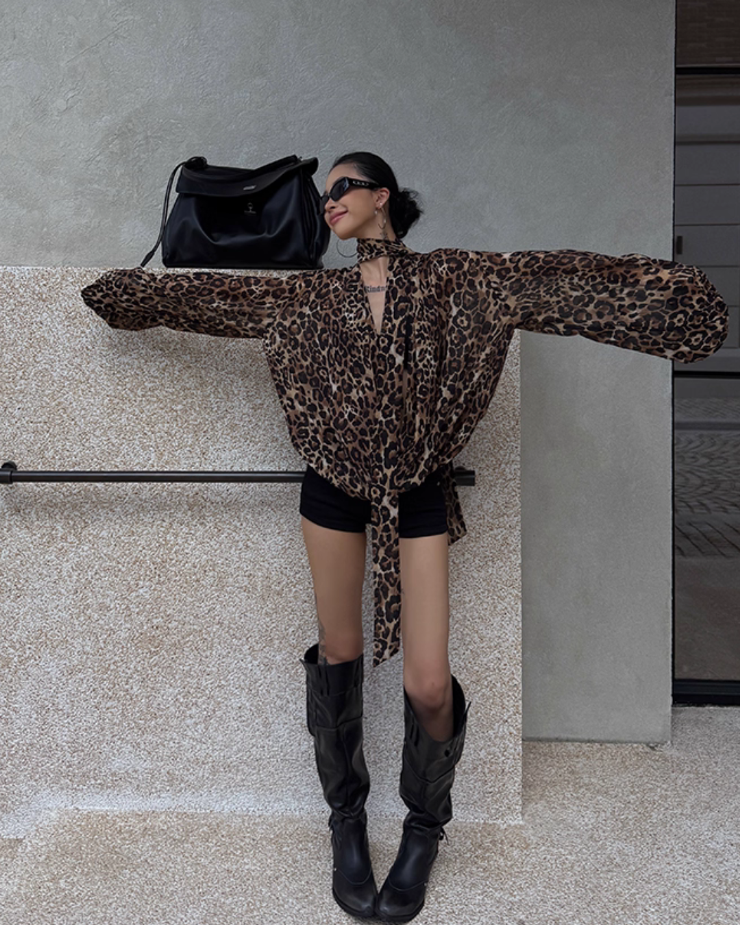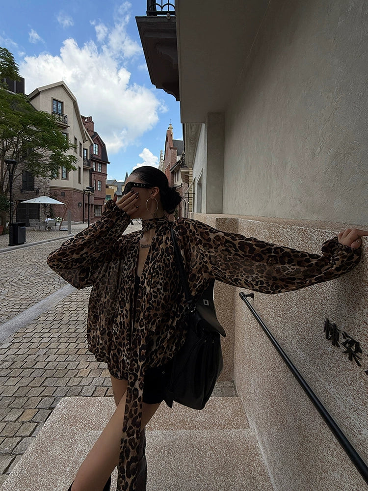 A top with a leopard print that gives a glamorous impression.