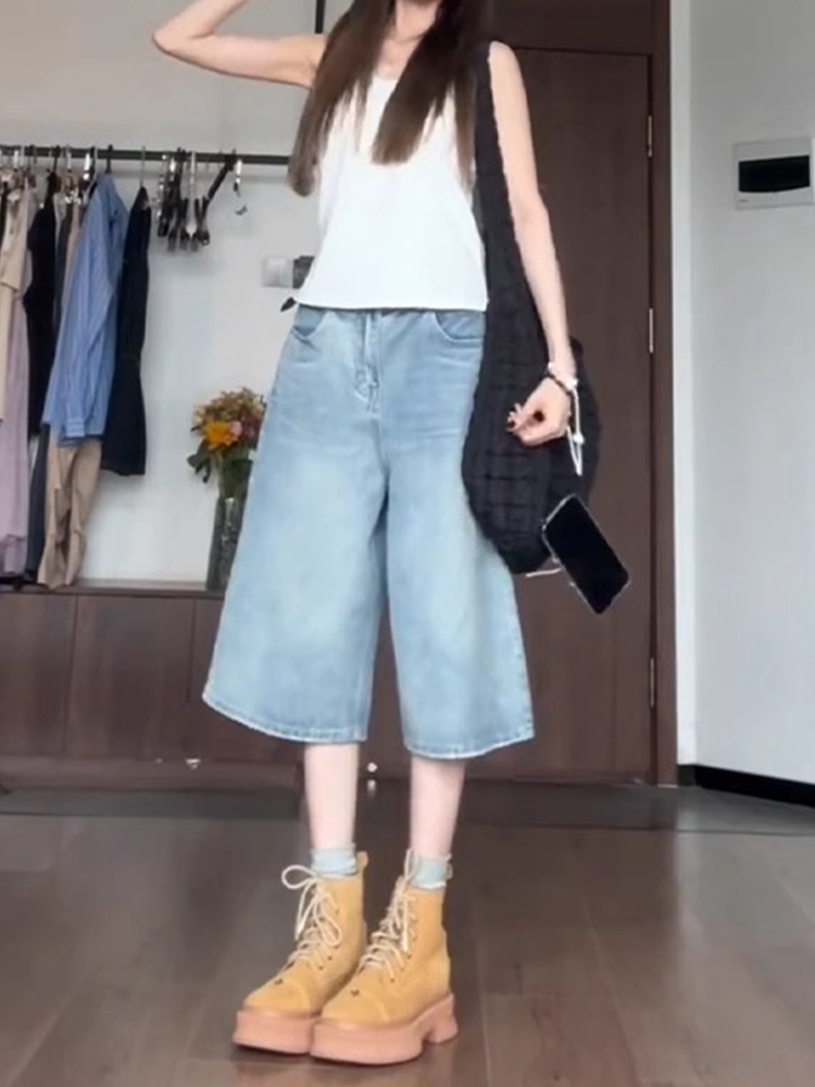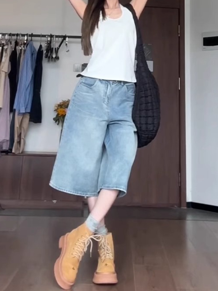Elevate your summer wardrobe with our Light Washed High Street Denim Shorts for Women, designed for ultimate comfort and style. Featuring a loose wide-leg seven-point cut, these shorts offer a relaxed fit that flatters all body types while keeping you cool on warm days. The light wash and trendy design make them a versatile fashion essential that pairs perfectly with your favorite tops. Don’t miss out on this chic addition to your collection add to your cart now and step out in style!