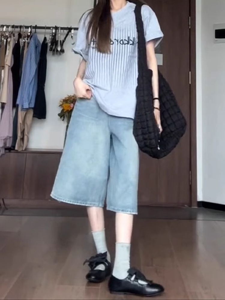 Be the first to review “Light Washed Denim Shorts Women Loose Wide Leg Seven Point Cut, Summer” Cancel reply