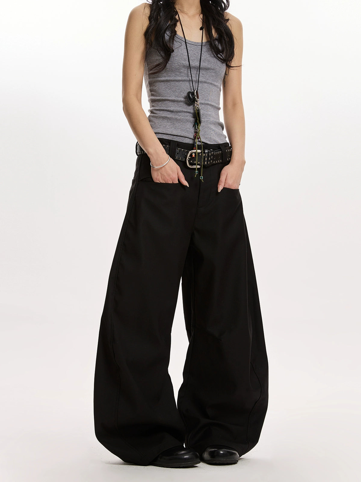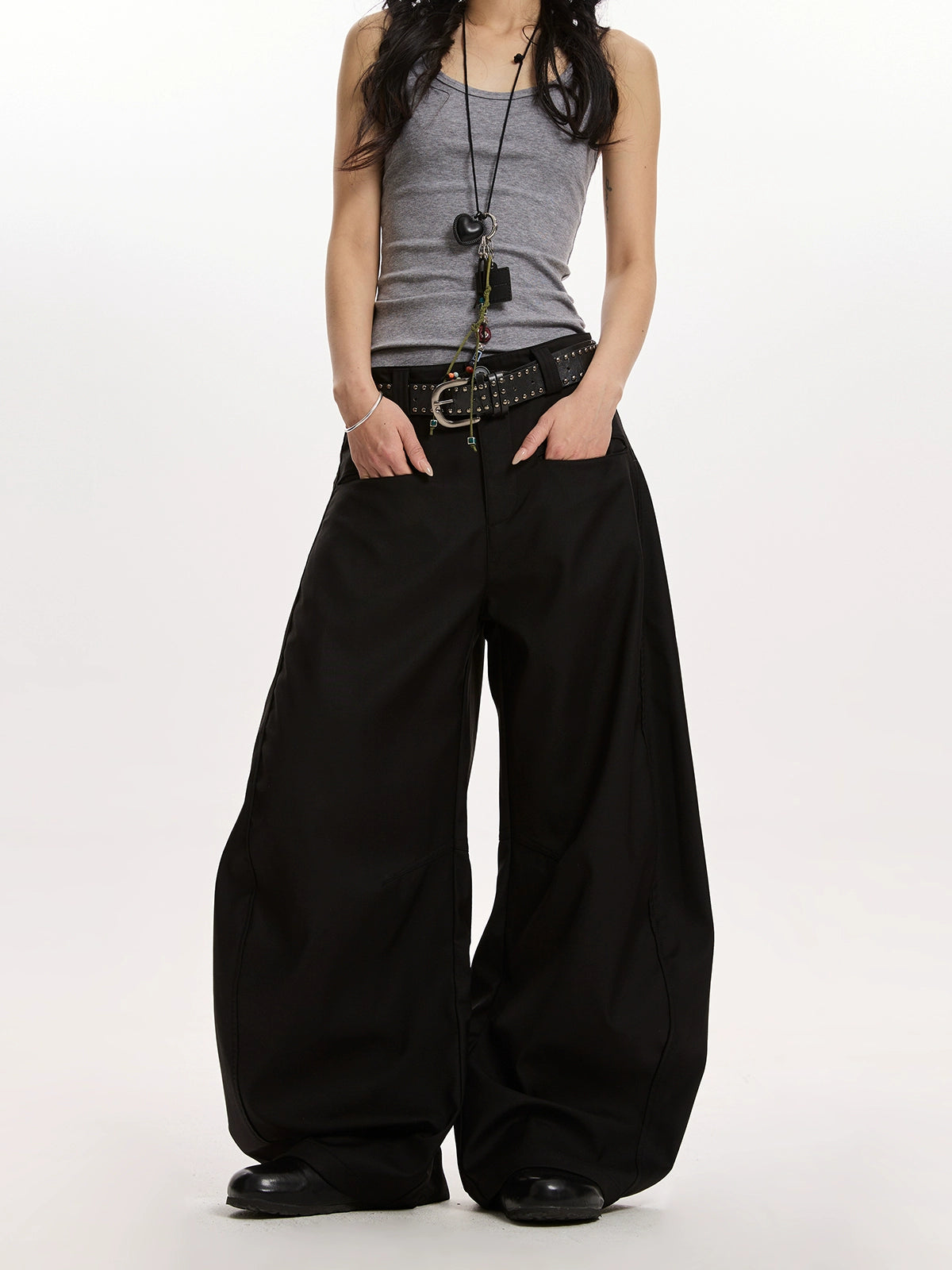 The curve pants are attractive with their relaxed fit and three-dimensional silhouette.