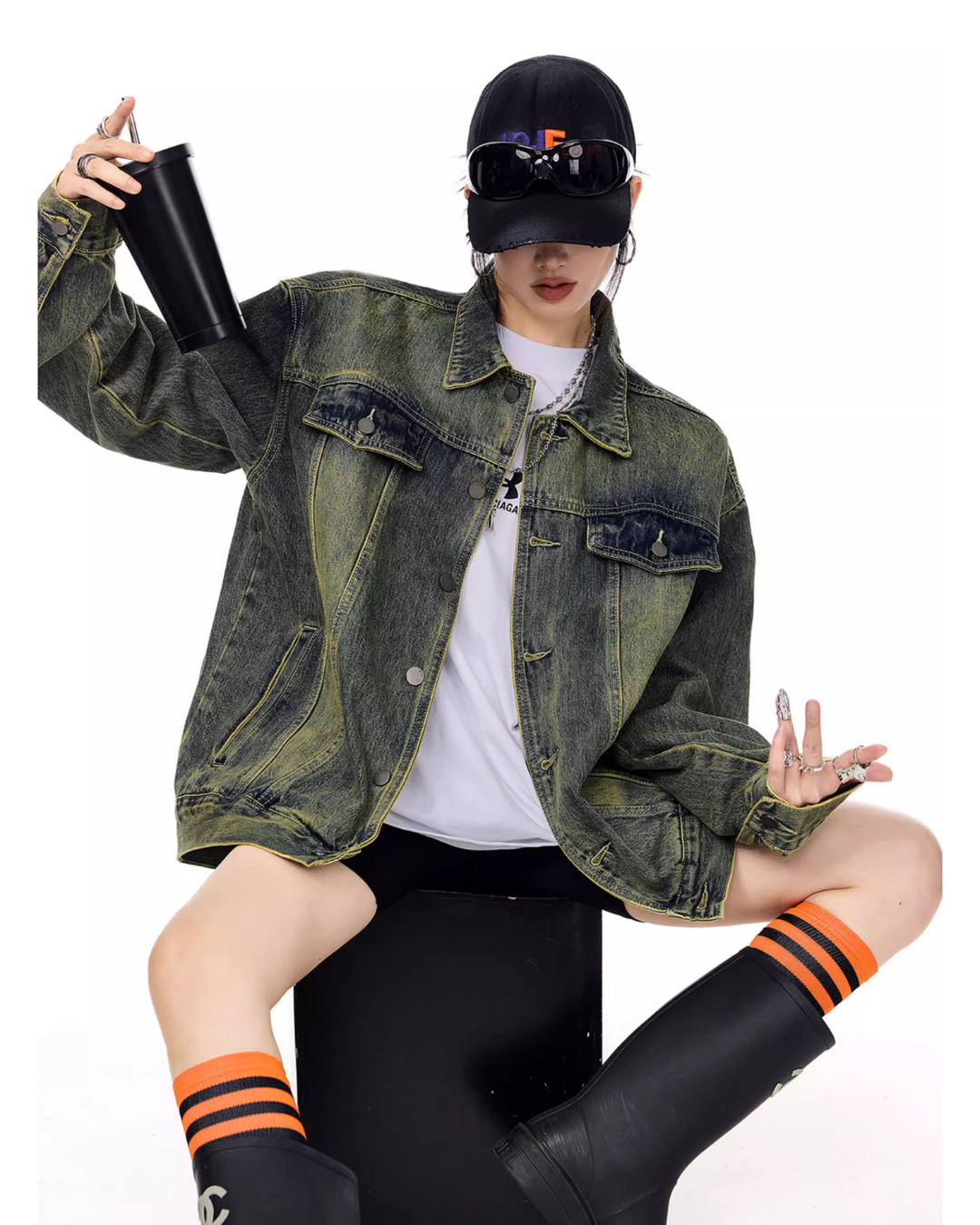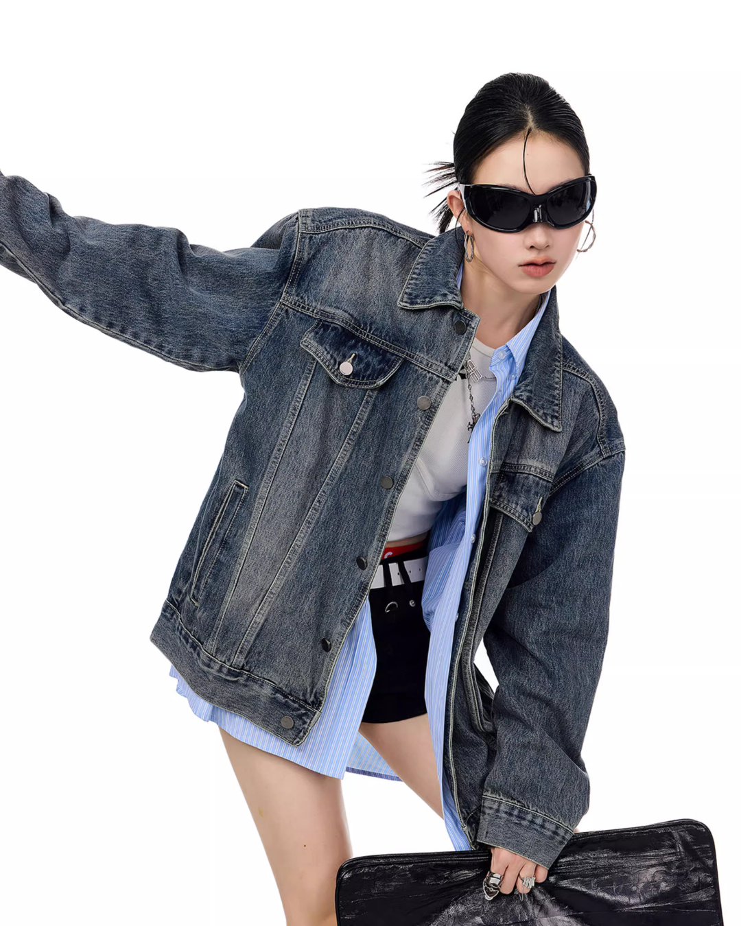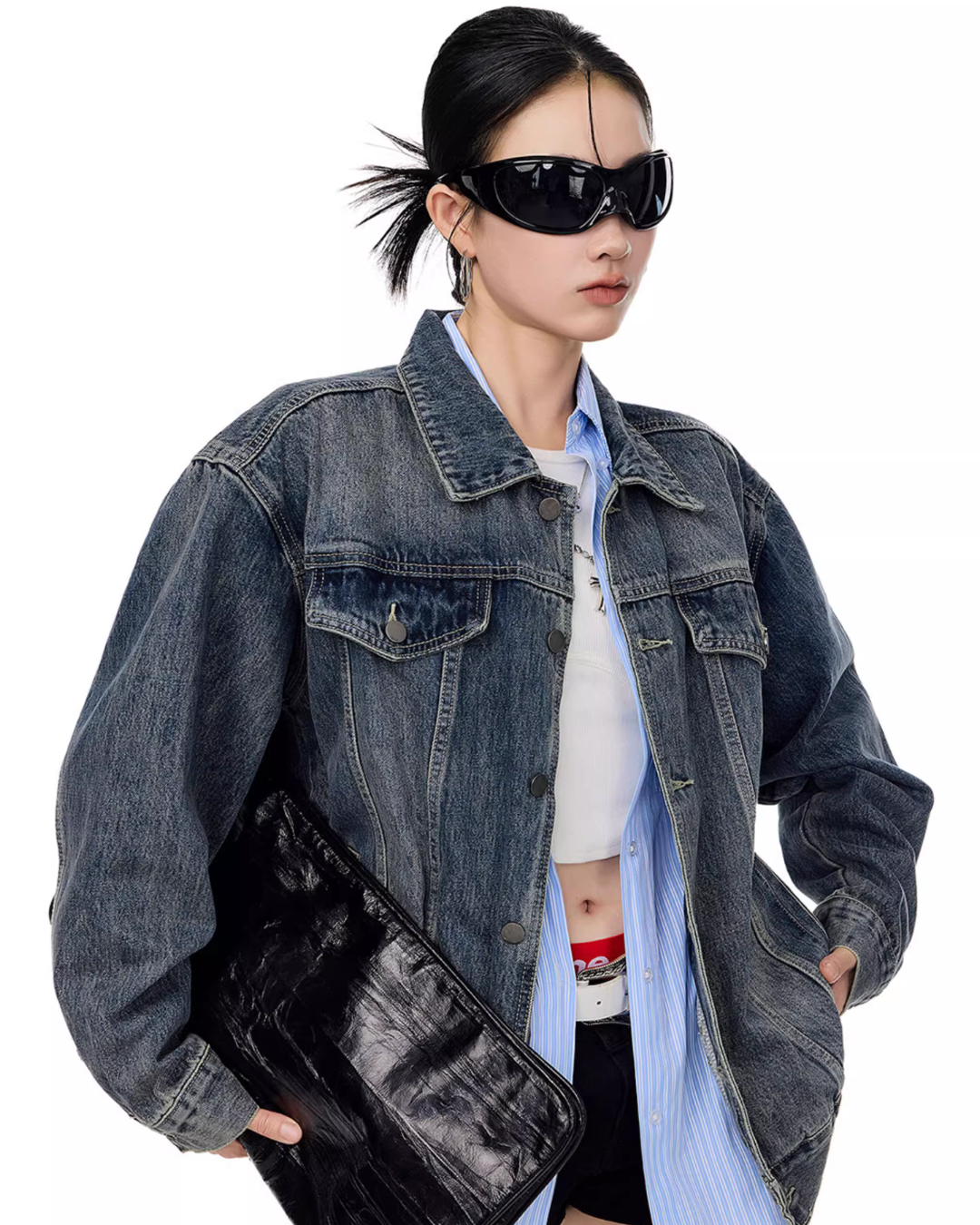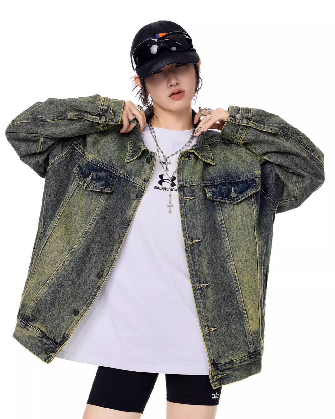 It’s recommended to wear it as an outer layer or to style it as a set with denim pants.