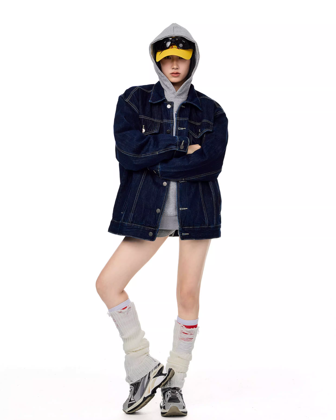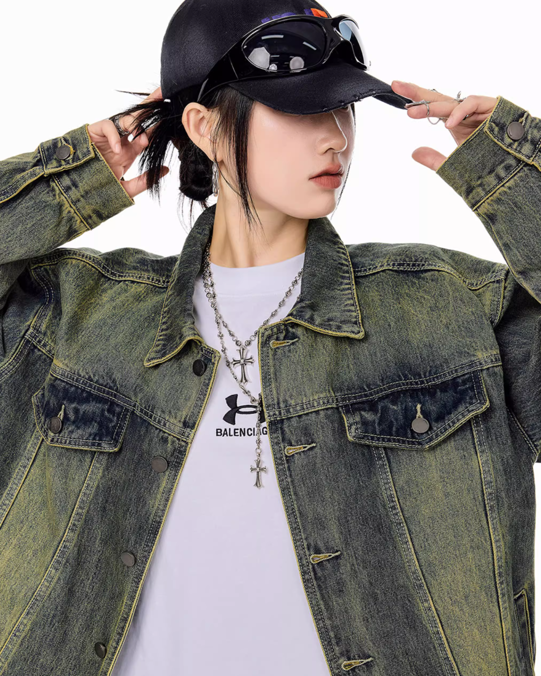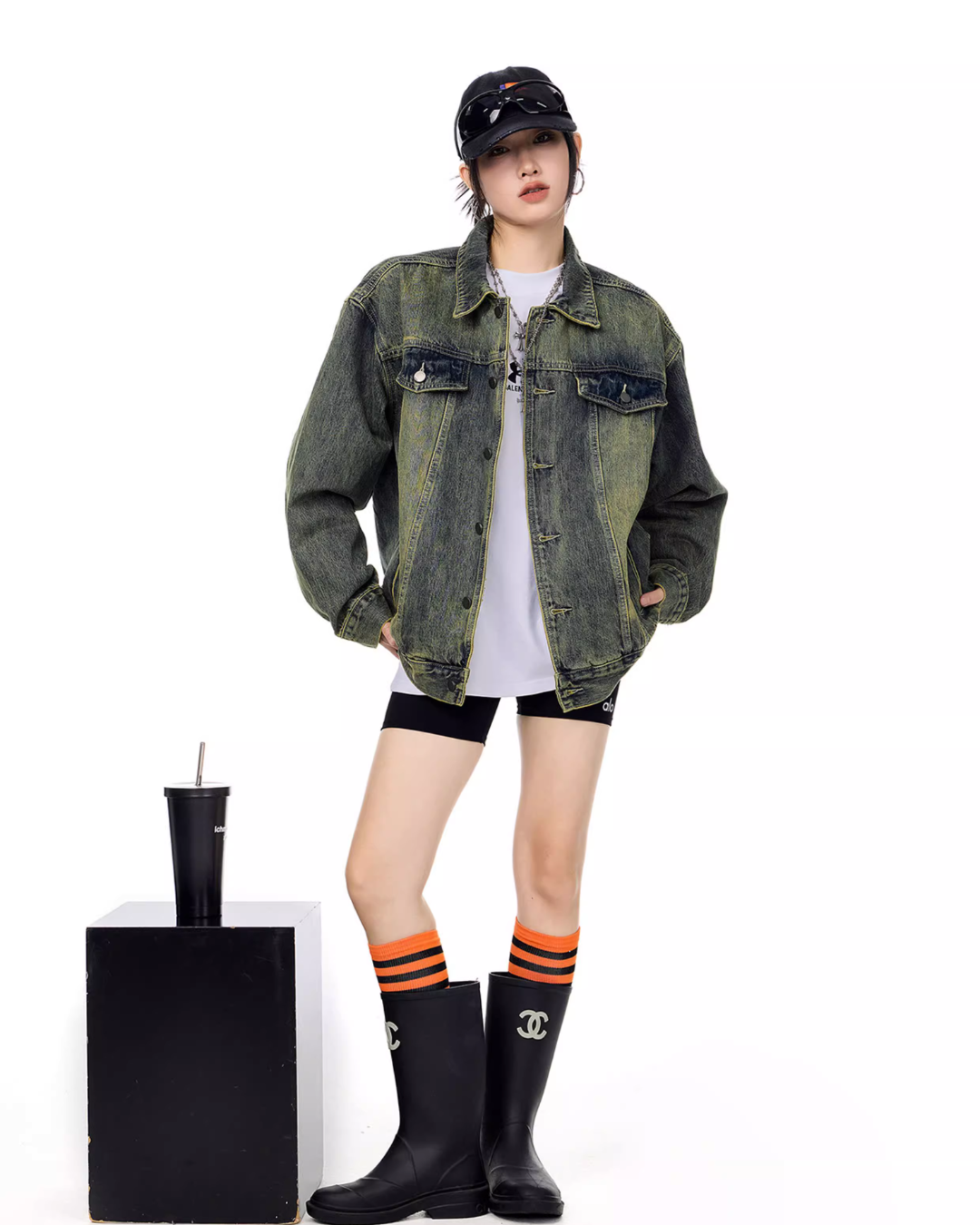 It’s recommended to wear it as an outer layer or to style it as a set with denim pants.