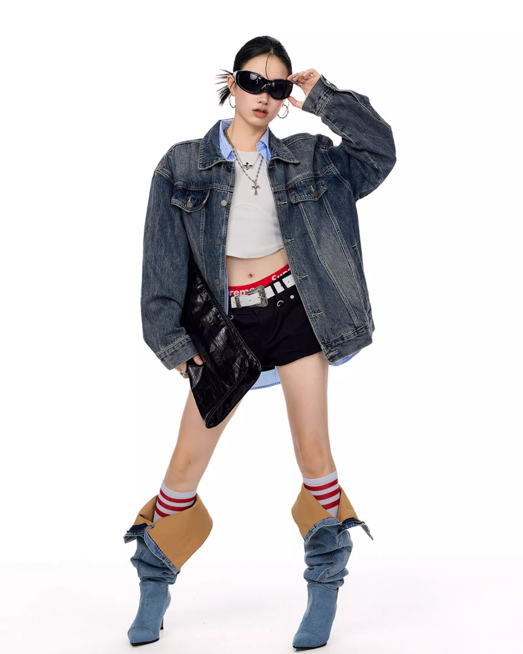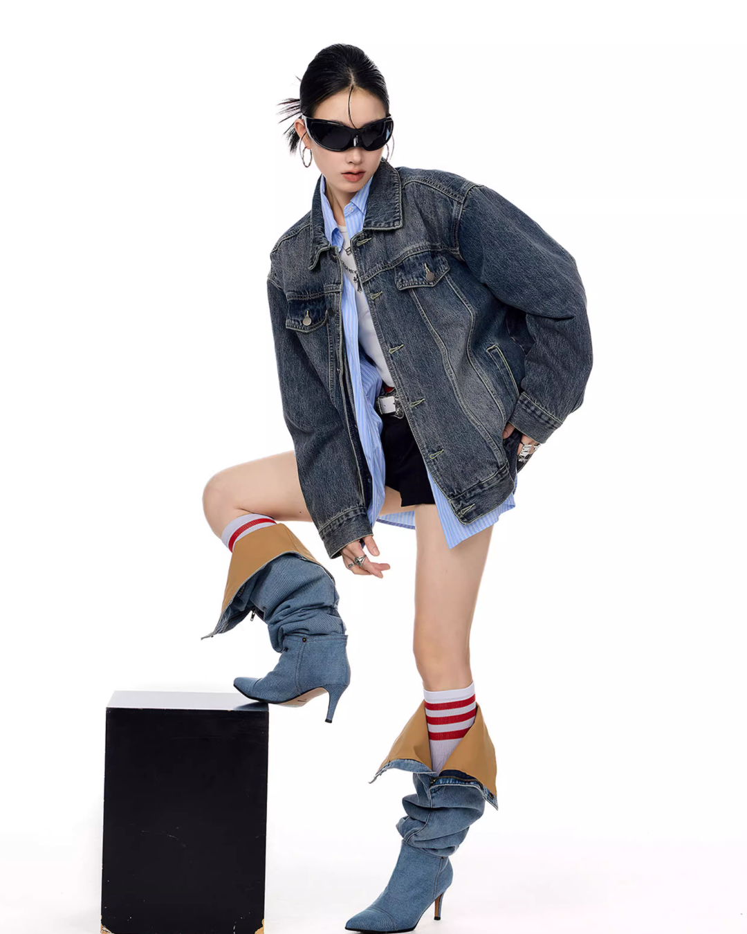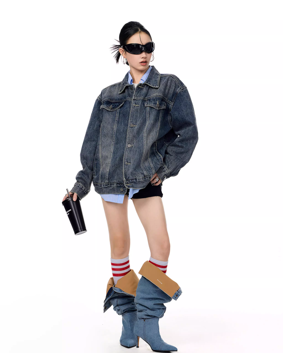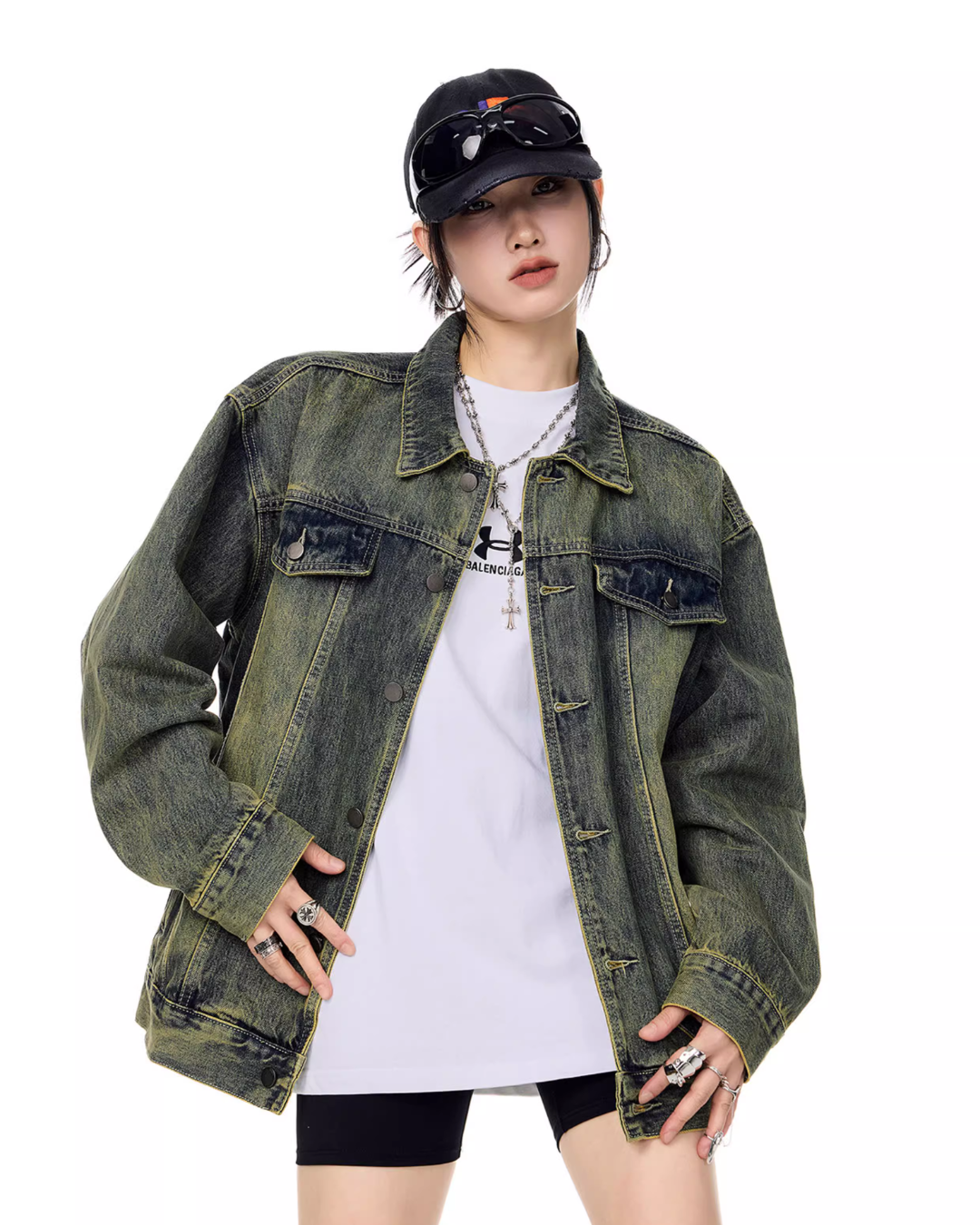 It’s recommended to wear it as an outer layer or to style it as a set with denim pants.