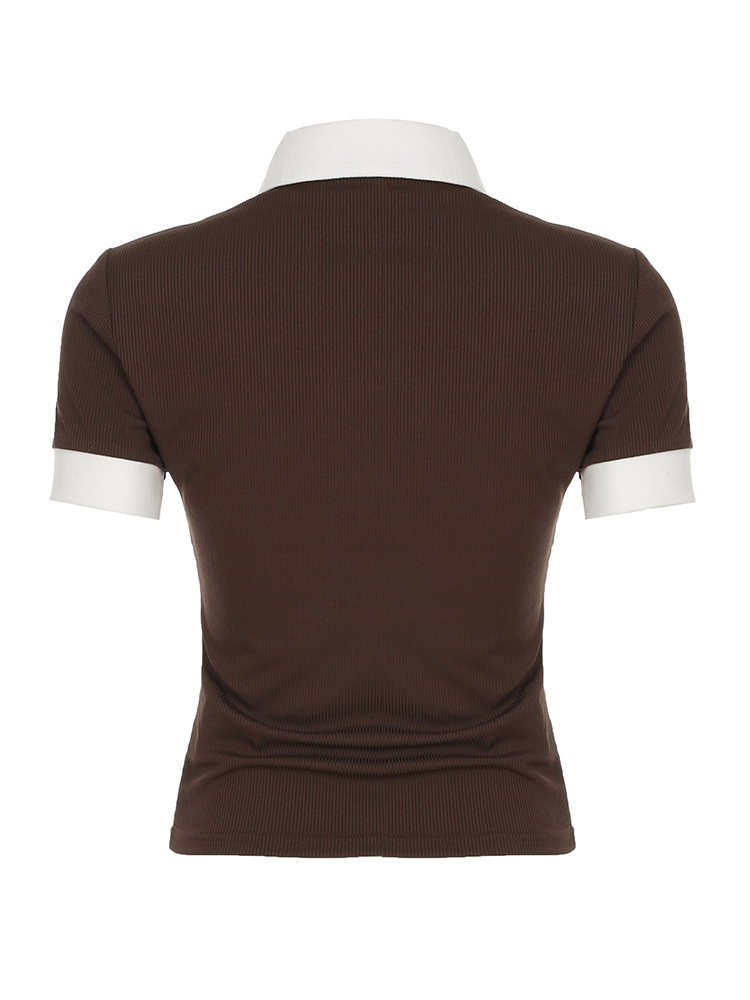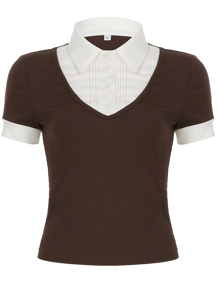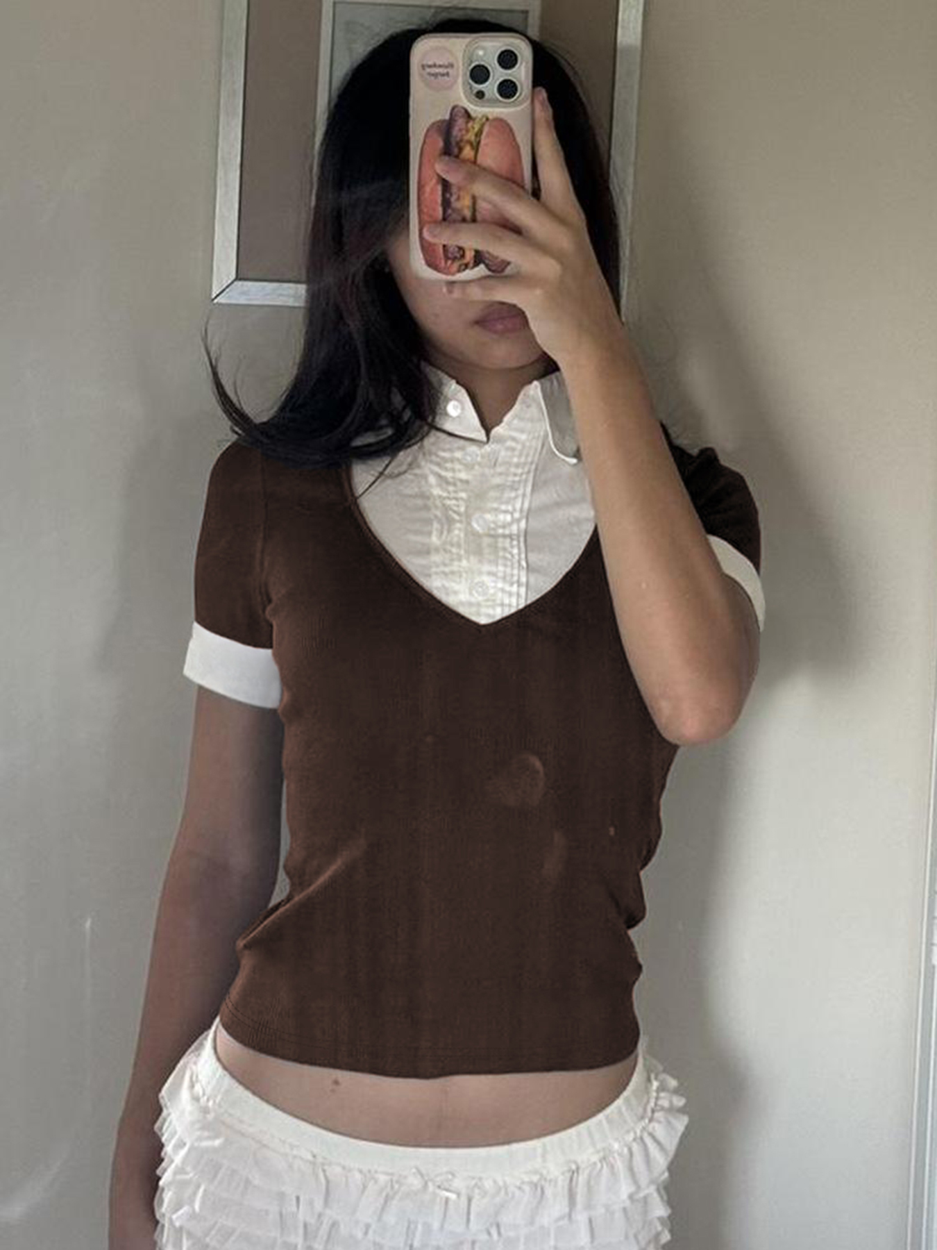 Elevate your wardrobe with our Minimalist Casual Color-Blocking Faux Two-Piece Polo Collar Top for Women. This ribbed knitted slim-fit short top embraces the Y2K style, offering a trendy and chic silhouette that flatters every body type. The unique color-blocking design adds a playful touch to your outfit, making it perfect for casual outings or stylish layering. Experience comfort and versatility while making a fashion statement add this essential piece to your collection today. Shop now!