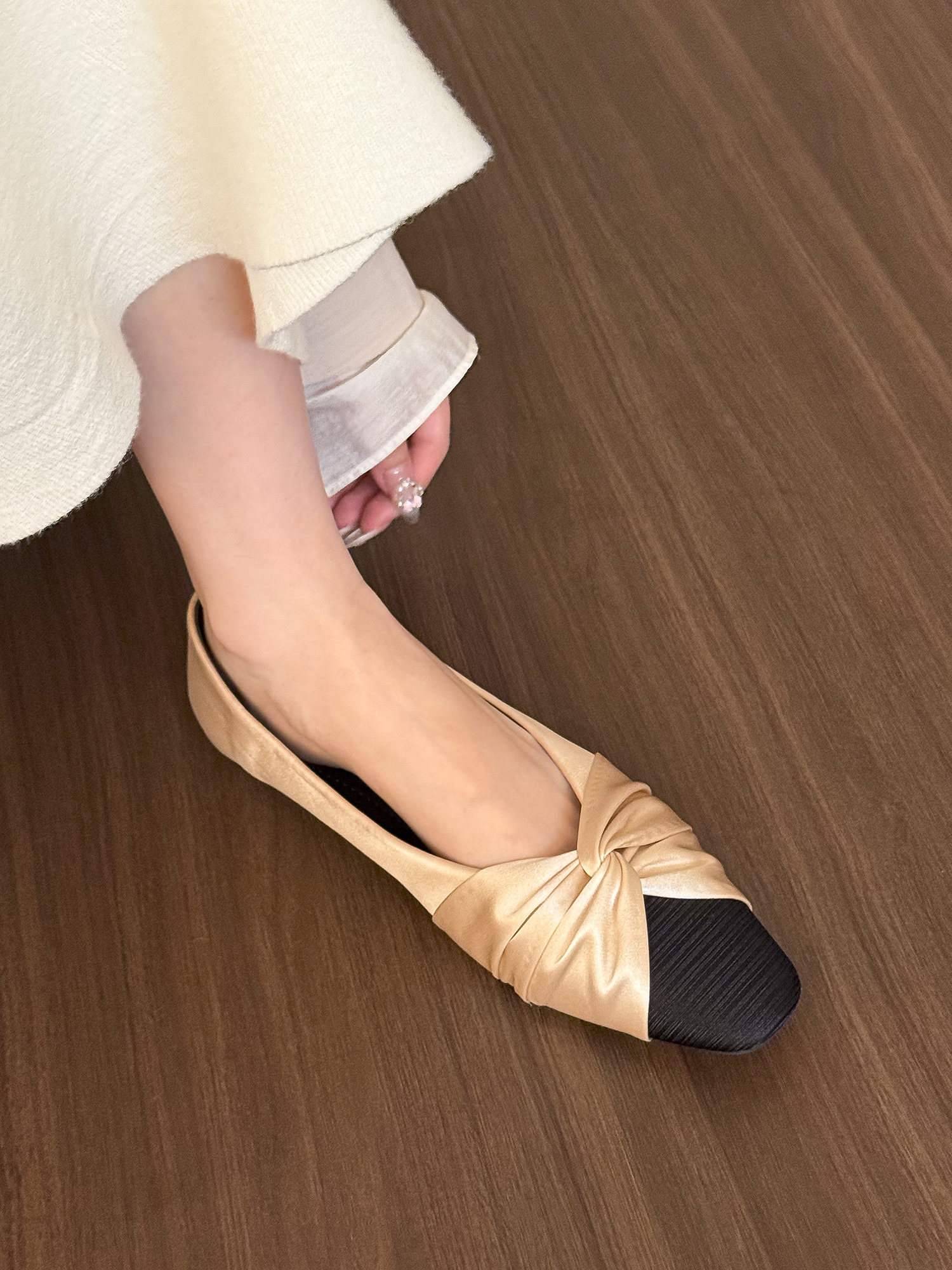 Moonlight White Satin Pleated Flat Shoes Women Spring Square Toe, Flats High-quality product featuring spring outfits, pretty outfits, winter fits and more. Modern design that fits the latest trends. Premium materials ensure durability and comfort. Order now for special offers! Product designed with attention to every detail. Suitable for all occasions and personal styles.