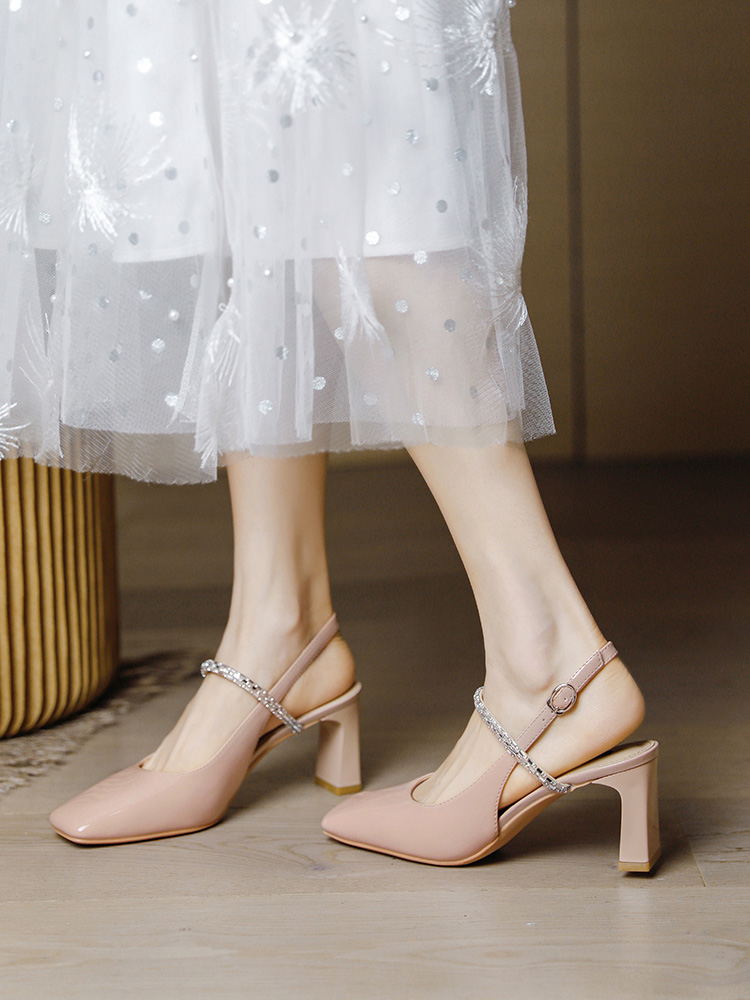 Step into summer with our Nude Pink Chunky Heeled Sandals, designed for the modern woman who embraces fairy-tale elegance. Featuring a stunning rhinestone one-strap and an open back, these sandals offer both style and comfort, perfect for any occasion. The chunky heel provides stability while adding a touch of glam to your outfit, making them a must-have for your 2025 summer wardrobe. Don’t miss out on these chic sandals add them to your cart today and elevate your fashion game!