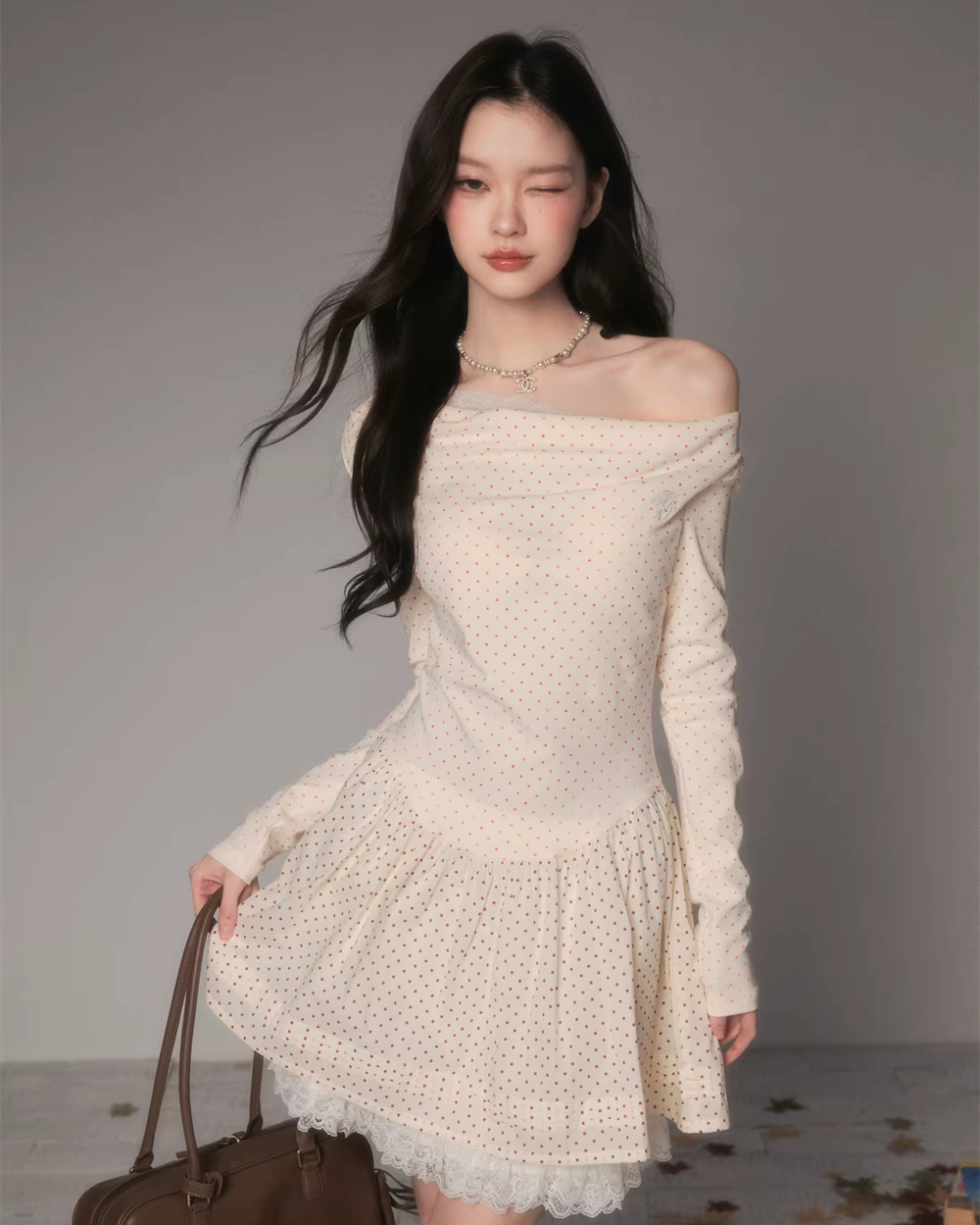 With a one-shoulder design, it allows for a moderate amount of skin exposure, creating a mature look that is not too sweet.
