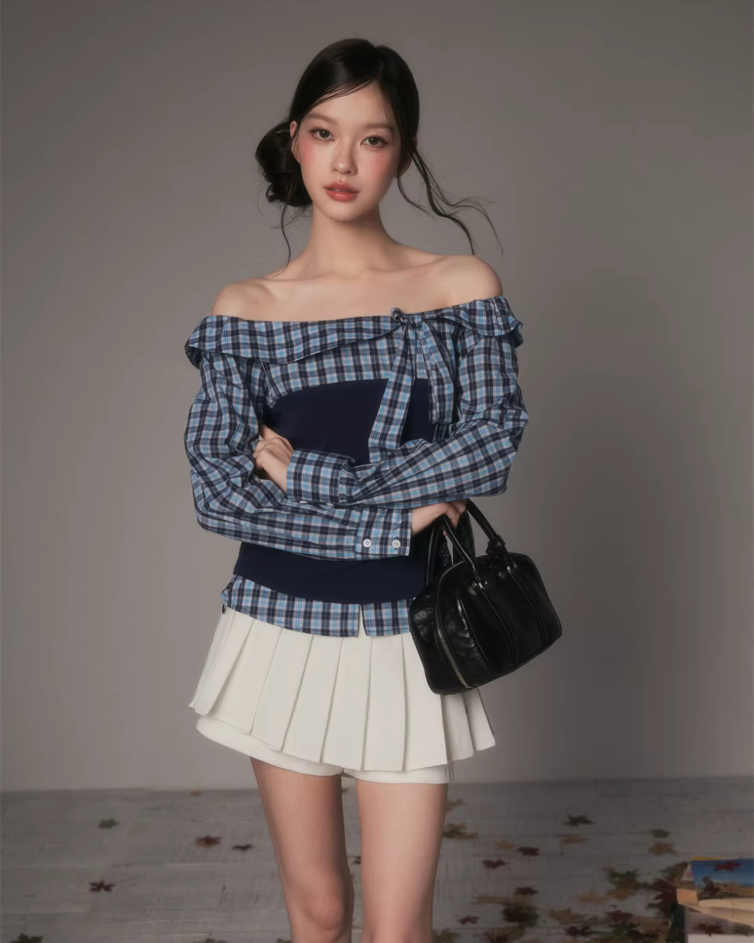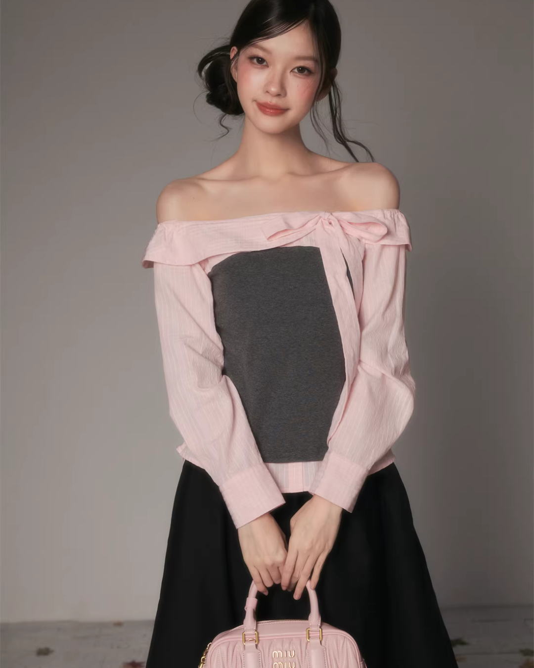 A piece with an attractive off-shoulder design that beautifully showcases the décolletage.