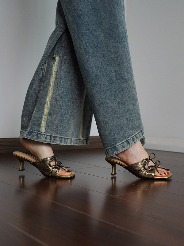 Step into elegance and comfort with our Open-Toe Slip-On Sandals for Women, featuring chic thin mid heels and a playful bow detail. Perfect for sunny vacations or casual outings, these stylish golden half-slippers offer a versatile fit that complements any outfit while ensuring all-day wearability. Elevate your summer wardrobe and enjoy effortless style add these must-have sandals to your cart today!