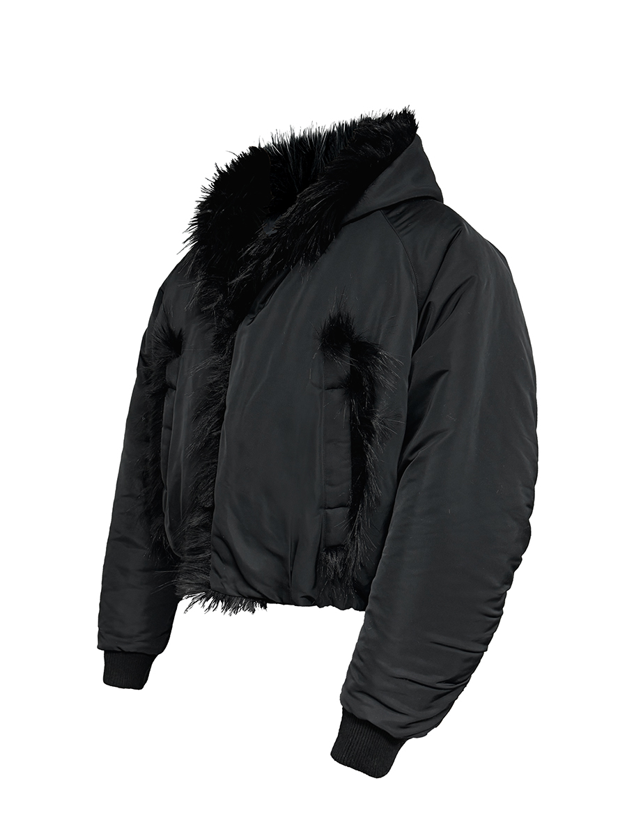 Elevate your winter wardrobe with our Oversized Nylon Fur Collar Bomber Jacket, a nod to 90s fashion with its chic cotton velvet fabric. Designed for a relaxed fit, this stylish jacket features a plush fur collar, placket closure, and raglan sleeves, ensuring both warmth and a flattering silhouette. Embrace the season in comfort and style add this must-have piece to your cart today!