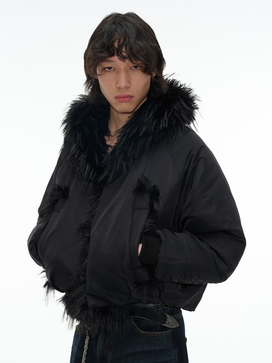 Be the first to review “Oversized Nylon Fur Collar Bomber Jacket pired Cotton Velvet Placket, Raglan Sleeves Winter Warmth” Cancel reply