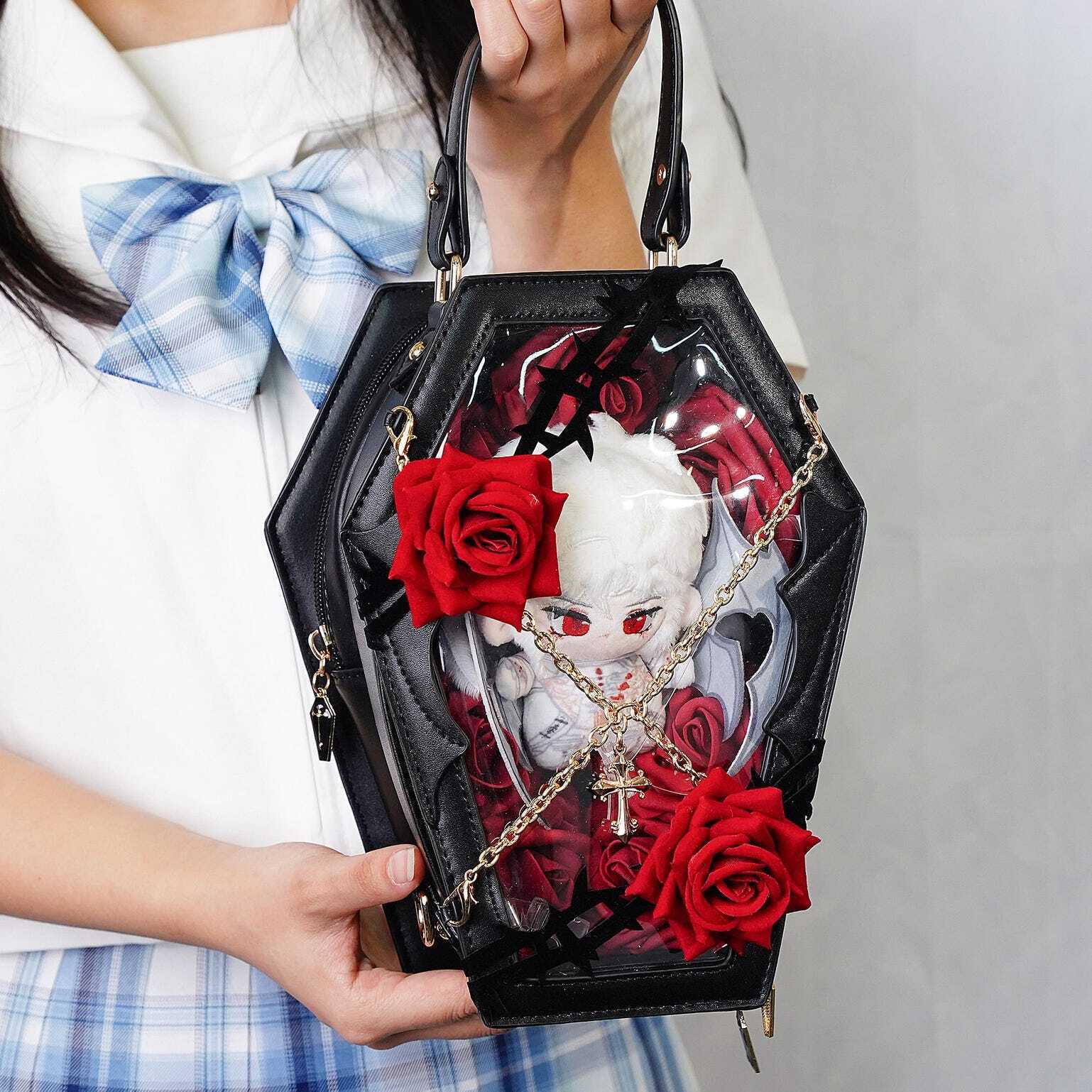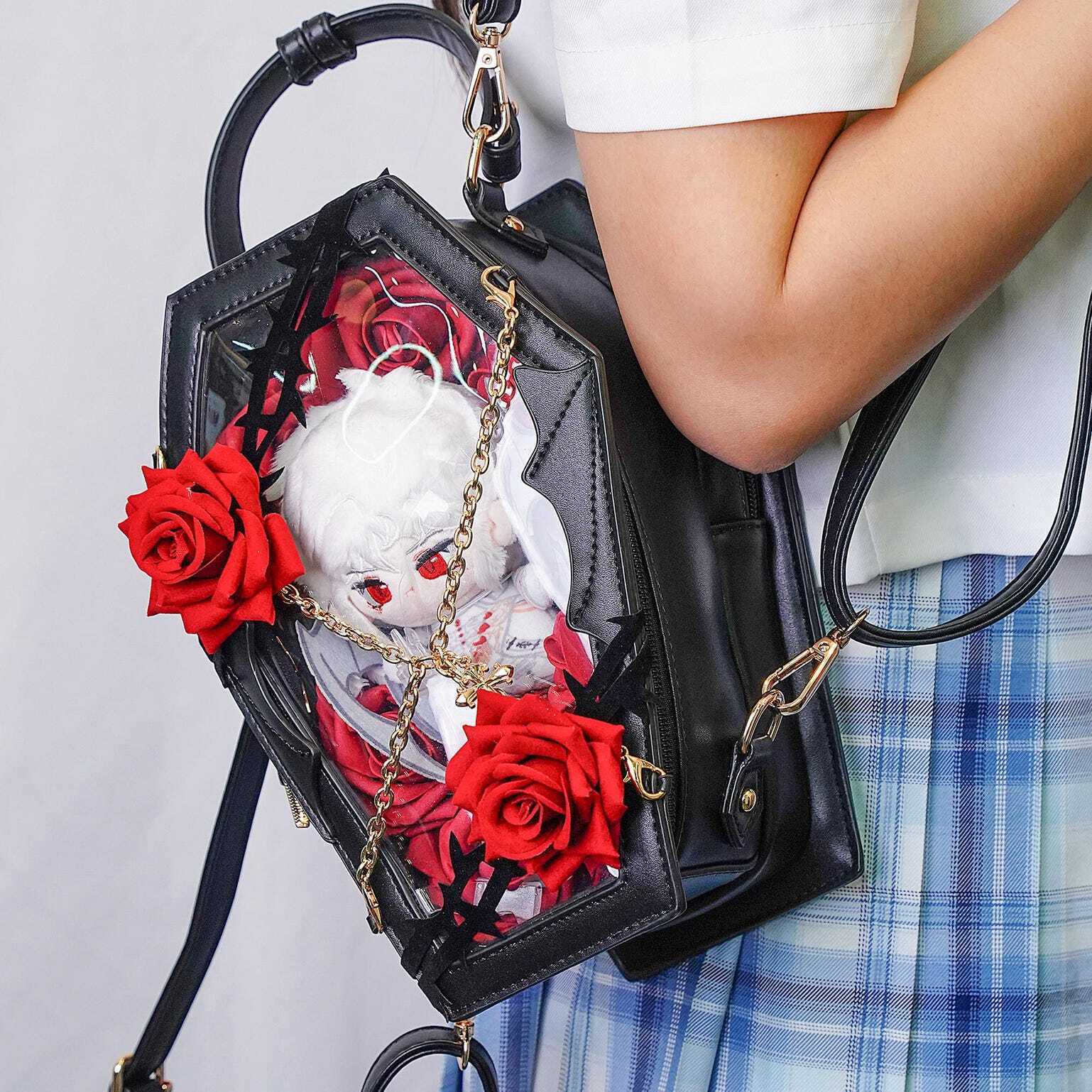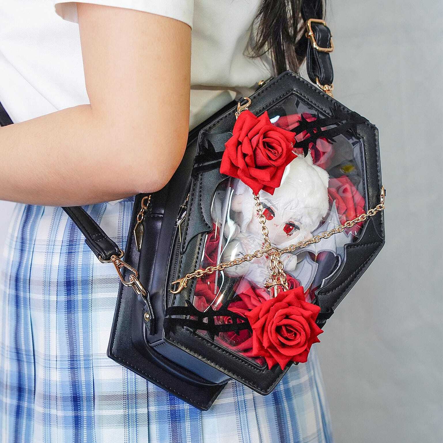 Pastel Gothic Ita Crossbody Bag with Clear Window for Pin Display